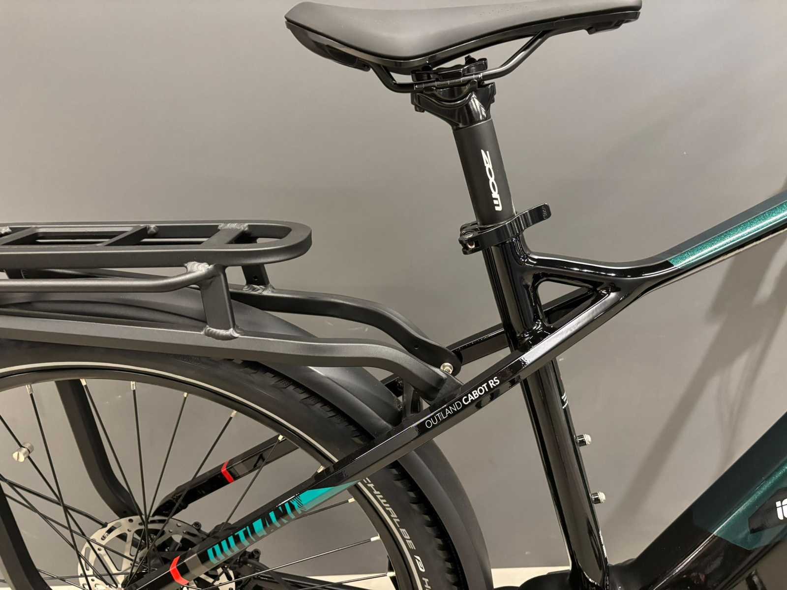 Accu: 48v 720wh uitneembare accu (48 V × 15 Ah); Wielmaat: 27,5 inch; Voorvork: SR Suntour XCM32 Boost 80mm; Verlichting: Spanninga Led; Motor: Middenmotor (iGO Drive RS) met tot 130 Nm; Frame: Aluminium hardtail-frame met interne kabelgeleiding; Voorvork: Verende voorvork met circa 80 mm veerweg; Banden: 27.5” × 2.4” Schwalbe Hurricane banden; Versnellingen: Shimano Deore 9-versnellingen; Accessoires: Verlichting, bagagedrager en spatborden. Ongebruikt in doos Merk: Igo Model: Outland Cabot RS Motorpositie: Midden Ananda 130nm Oplader getest: Nee Accu getest: Nee Remsysteem: Tektro Discbrakes hydraulische schijfremmen Voorvering: true Versnellingen: 9 Framemaat: 55