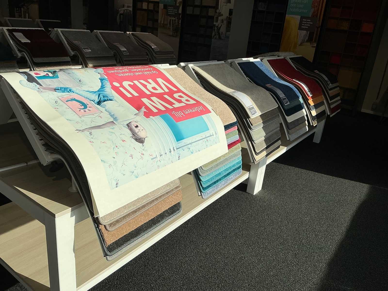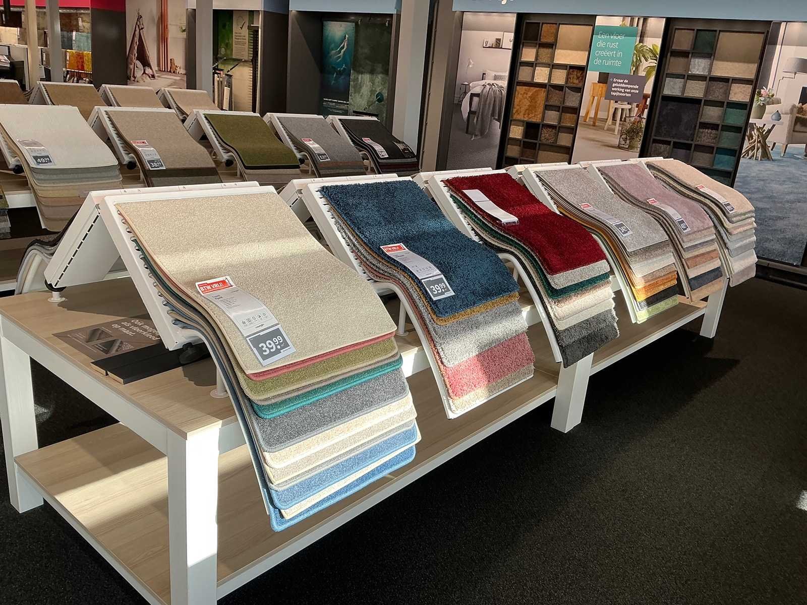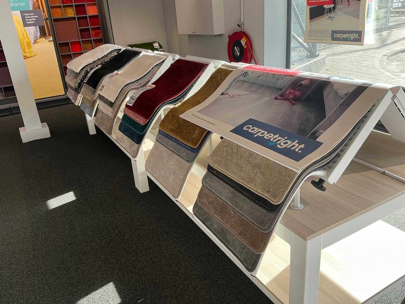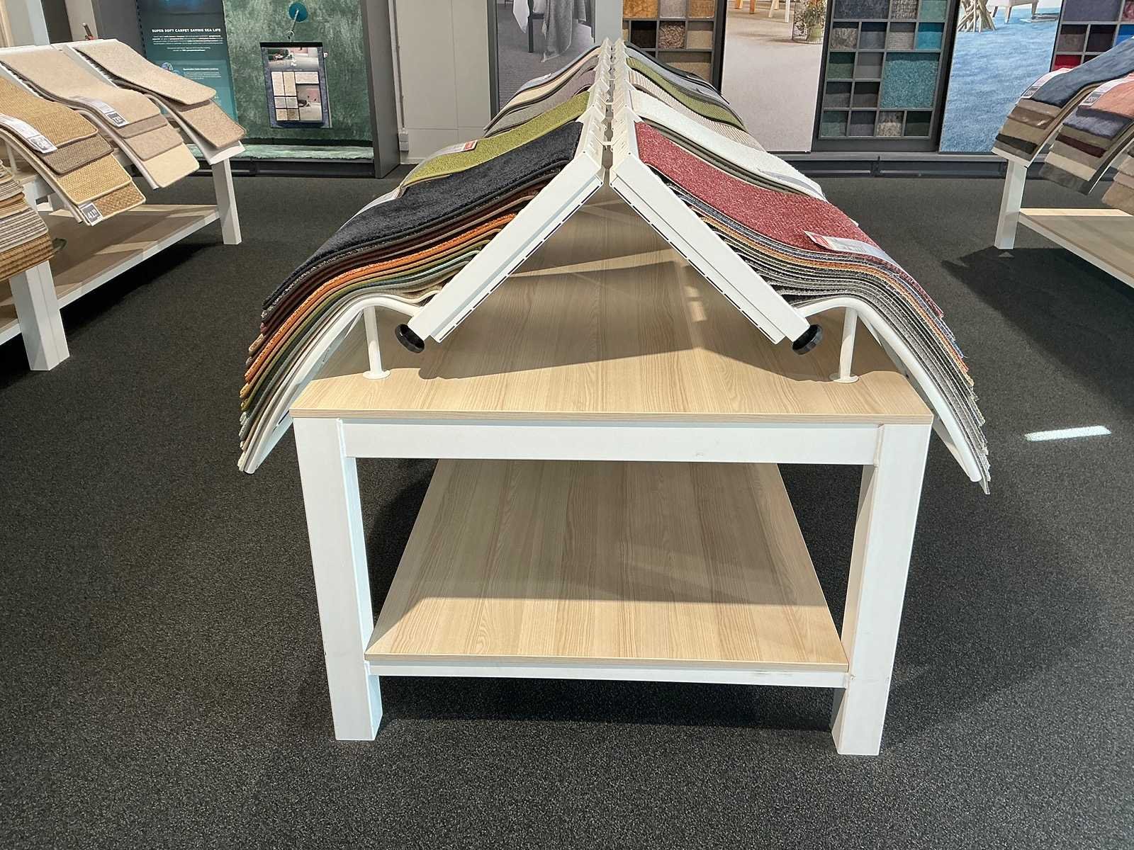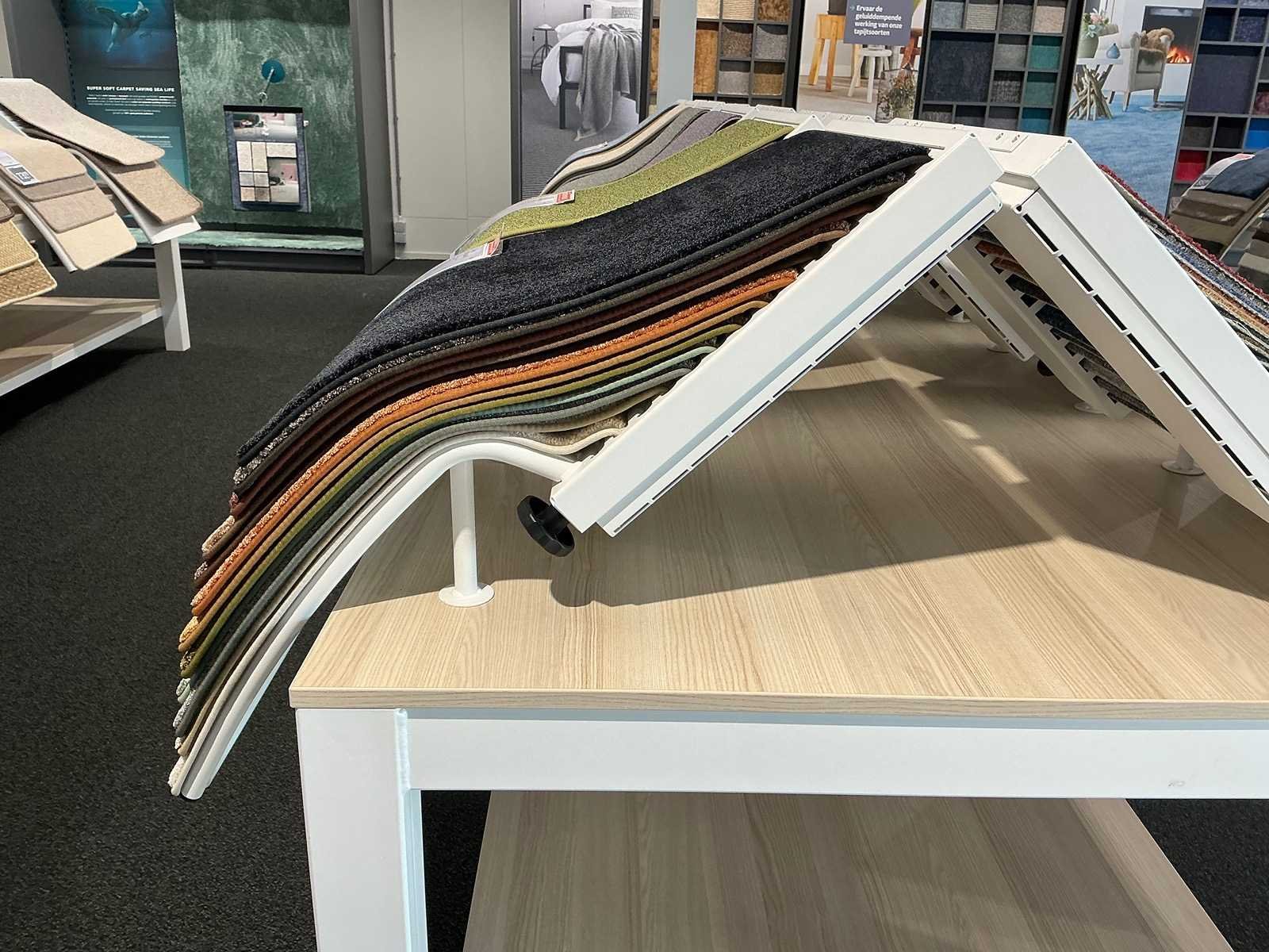 Presentatie tafel met tapijtsamples (8x)