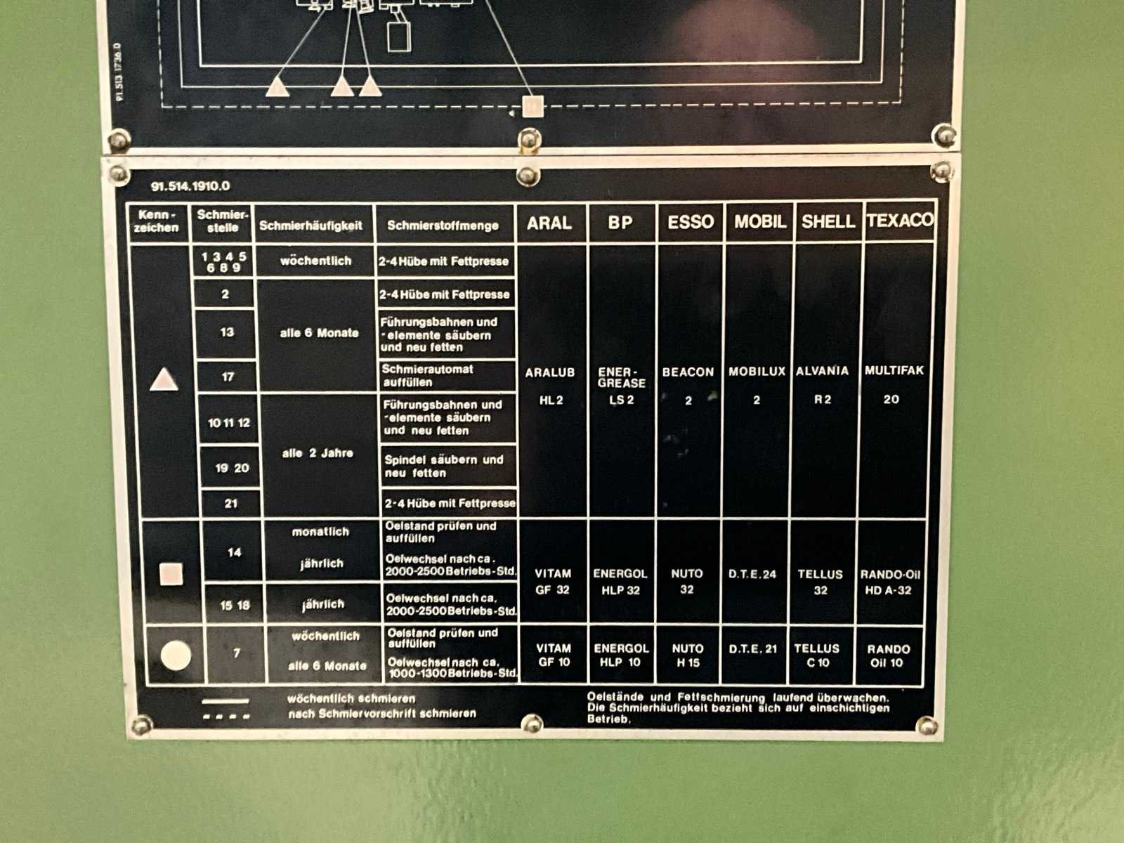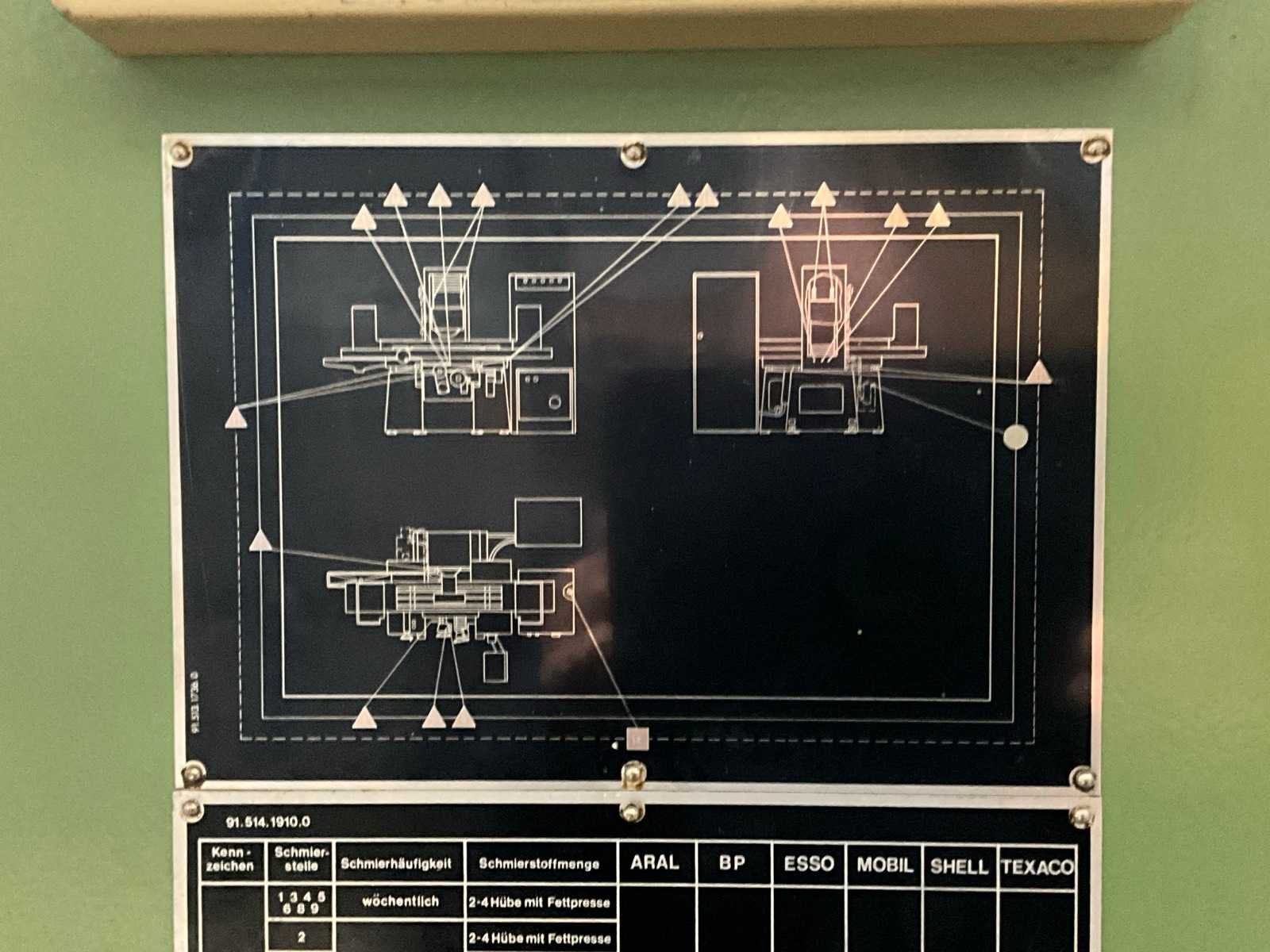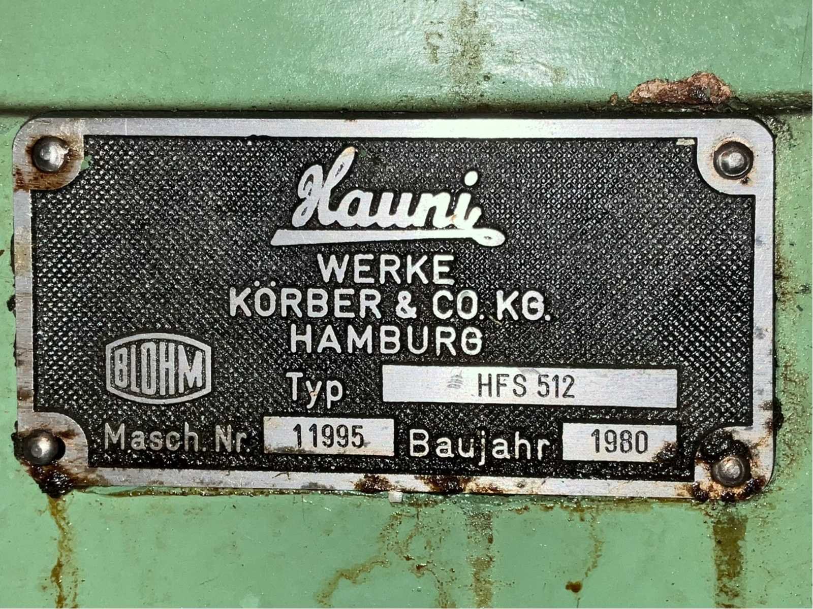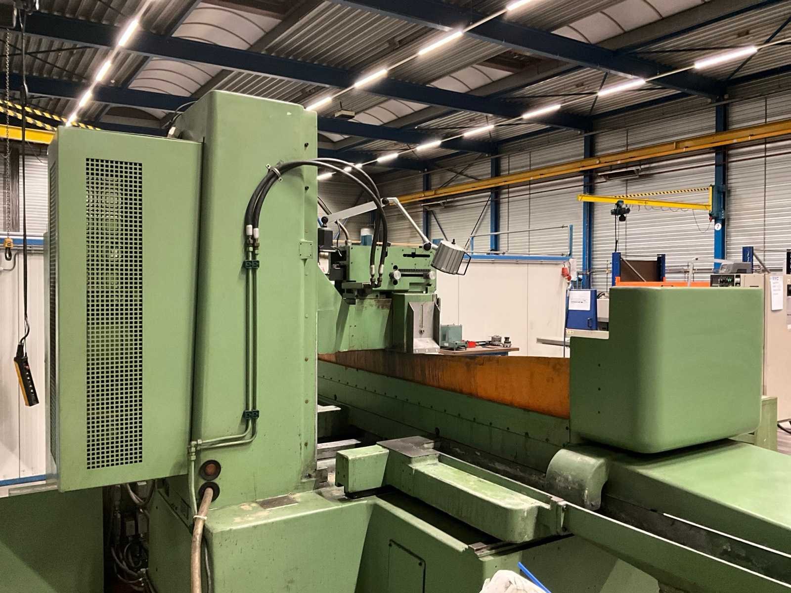 Voorzien van electro magneetplaat afmeting 1200x500 mm; voorzien van T-gleuf opspantafel afmeting 2000x500 mm; X-as 2000 mm / Y-as 600 mm / Z-as 400 mm; steen diameter circa 350 mm; voorzien van controle unit op arm; voorzien van elektronische uitlezing Delos DS-2V; werklamp; koelvloeistofpomp met filterunit; separate elektro schakelkast; Merk: Blohm / Hauni Type: HFS 512 Bouwjaar: 1980 Serienummer: 11995 Machinegewicht: 7000kg Afmeting l: 4200mm Afmeting b: 2400mm Afmeting h: 2400mm
