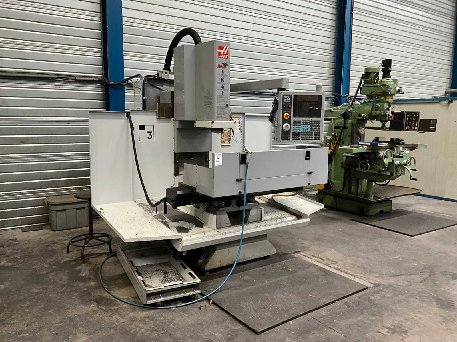 Voorzien van T-gleuf opspantafel; voorzien van machineklem breedte 150 mm; spanen opvang; koelvloeistof opvang; elektro,schakelkast; 16 Ampère; Merk: Haas Type: TM-3HE Bouwjaar: 2008 Serienummer: 1068939 T-gleuf opspantafelafmeting L: 1470mm T-gleuf opspantafelafmeting B: 370mm CNC-besturing, merk, type: Haas CNC besturing Aansluiting: 400V Afmeting l: 2600mm Afmeting b: 2100mm Afmeting h: 2400mm