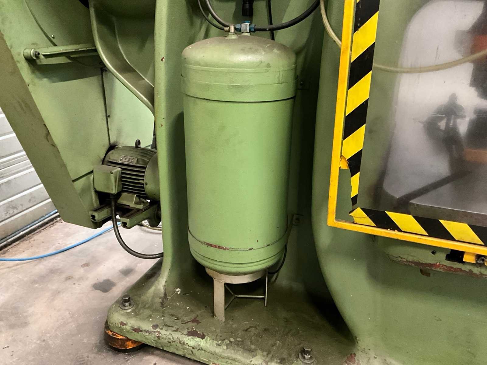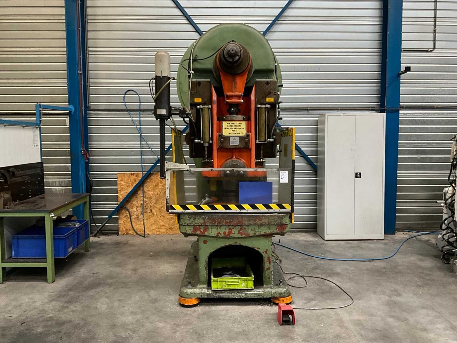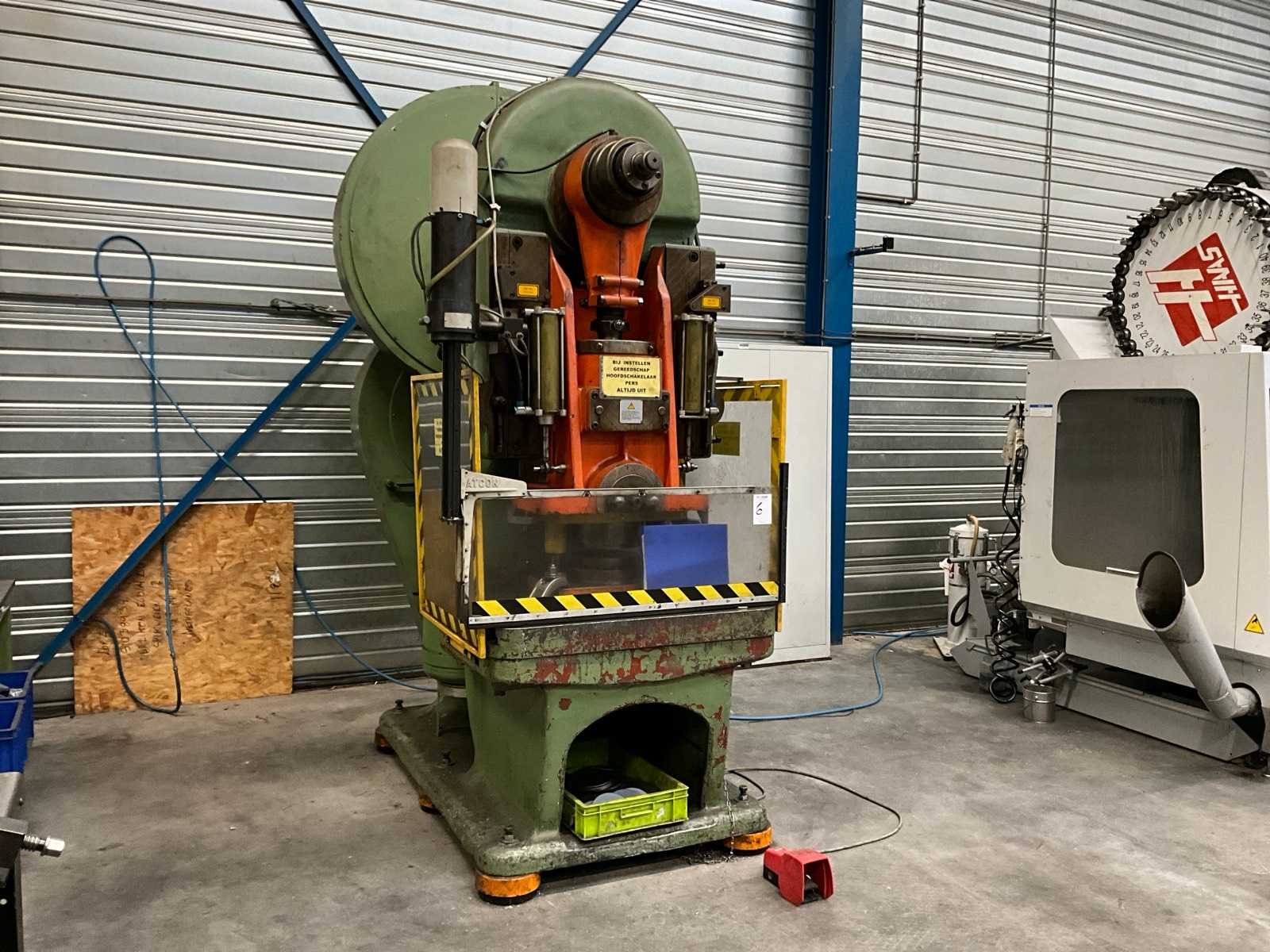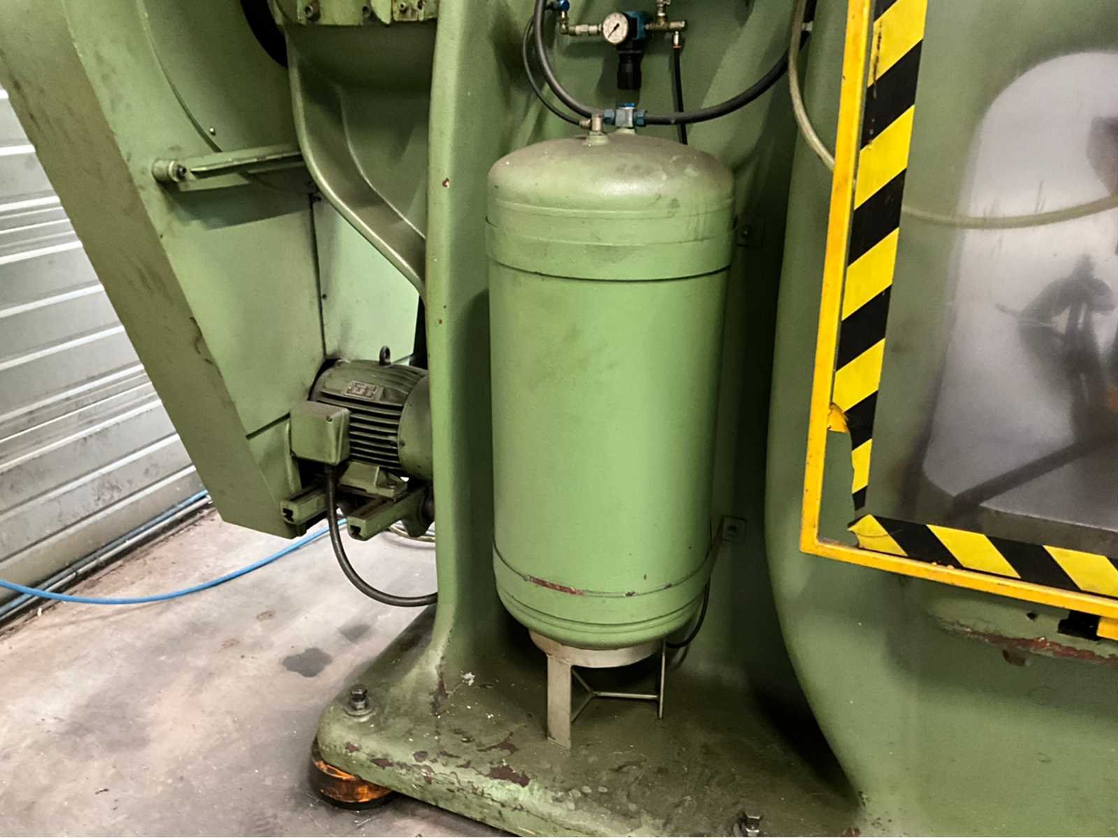 Drukcapaciteit; 1800 kN; aantal,slagen 50; slag verstelbaar 28 - 140 mm; stoter verstelbaar 80 mm; voorzien van T-gleuf opspantafel; veiligheidsscherm; voetbediening; 2x elektro schakelkast; Merk: Rijva Type: EP 180 type 511 Bouwjaar: 1970 Serienummer: 2050 Capaciteit.: 180t Uitlading: 0mm Slag: 140mm Tafel afmeting l: 1050mm Tafel afmeting b: 700mm Motorvermogen (kW): 8.8kW Aansluiting: 400V Machinegewicht: 12000kg Afmeting l: 1300mm Afmeting b: 2300mm Afmeting h: 3100mm