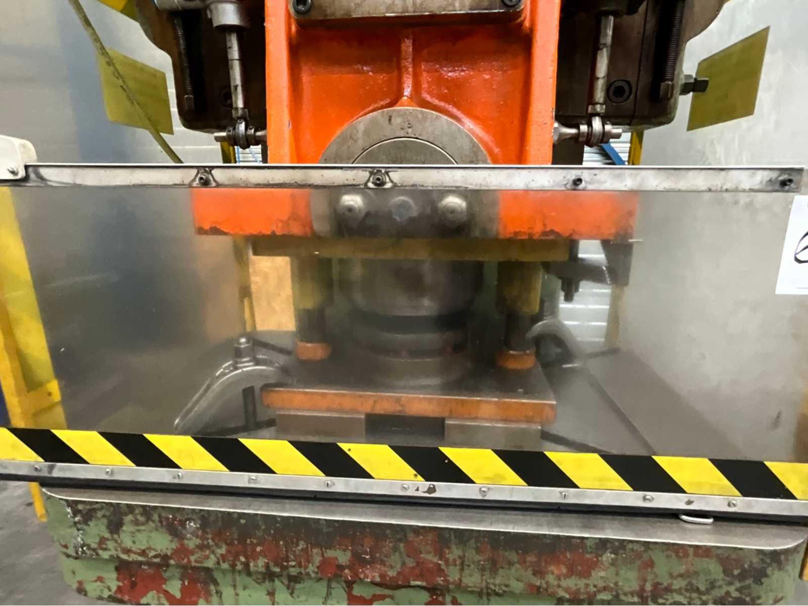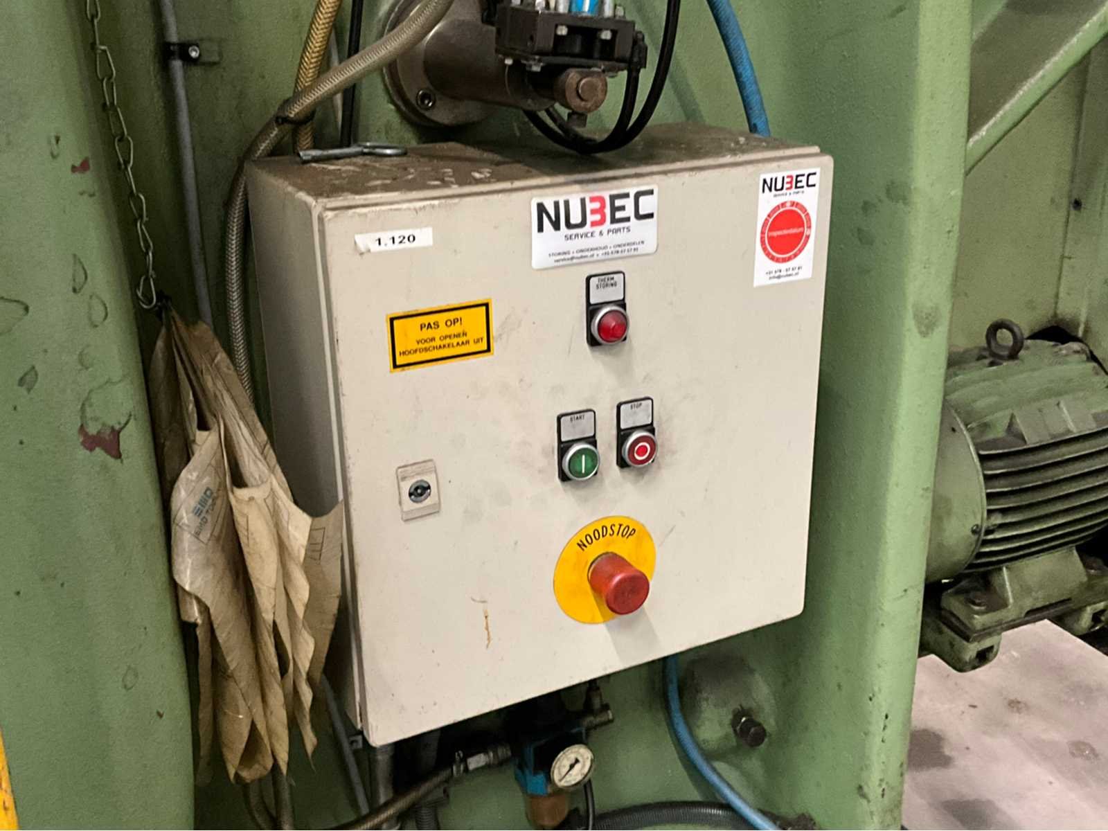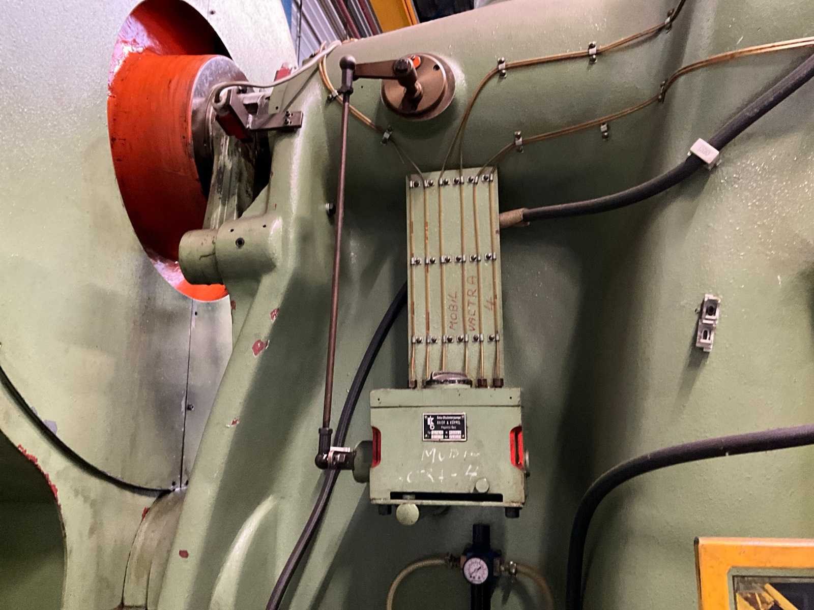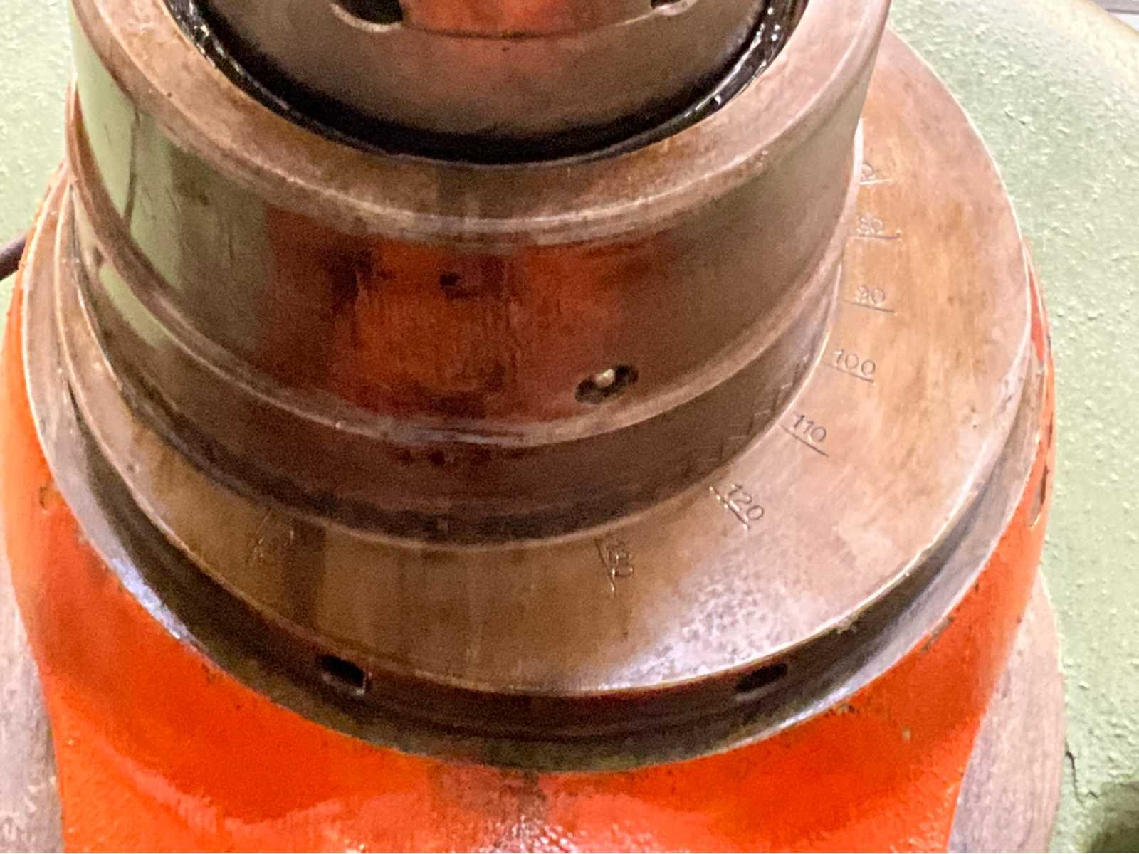 Drukcapaciteit; 1800 kN; aantal,slagen 50; slag verstelbaar 28 - 140 mm; stoter verstelbaar 80 mm; voorzien van T-gleuf opspantafel; veiligheidsscherm; voetbediening; 2x elektro schakelkast; Merk: Rijva Type: EP 180 type 511 Bouwjaar: 1970 Serienummer: 2050 Capaciteit.: 180t Uitlading: 0mm Slag: 140mm Tafel afmeting l: 1050mm Tafel afmeting b: 700mm Motorvermogen (kW): 8.8kW Aansluiting: 400V Machinegewicht: 12000kg Afmeting l: 1300mm Afmeting b: 2300mm Afmeting h: 3100mm