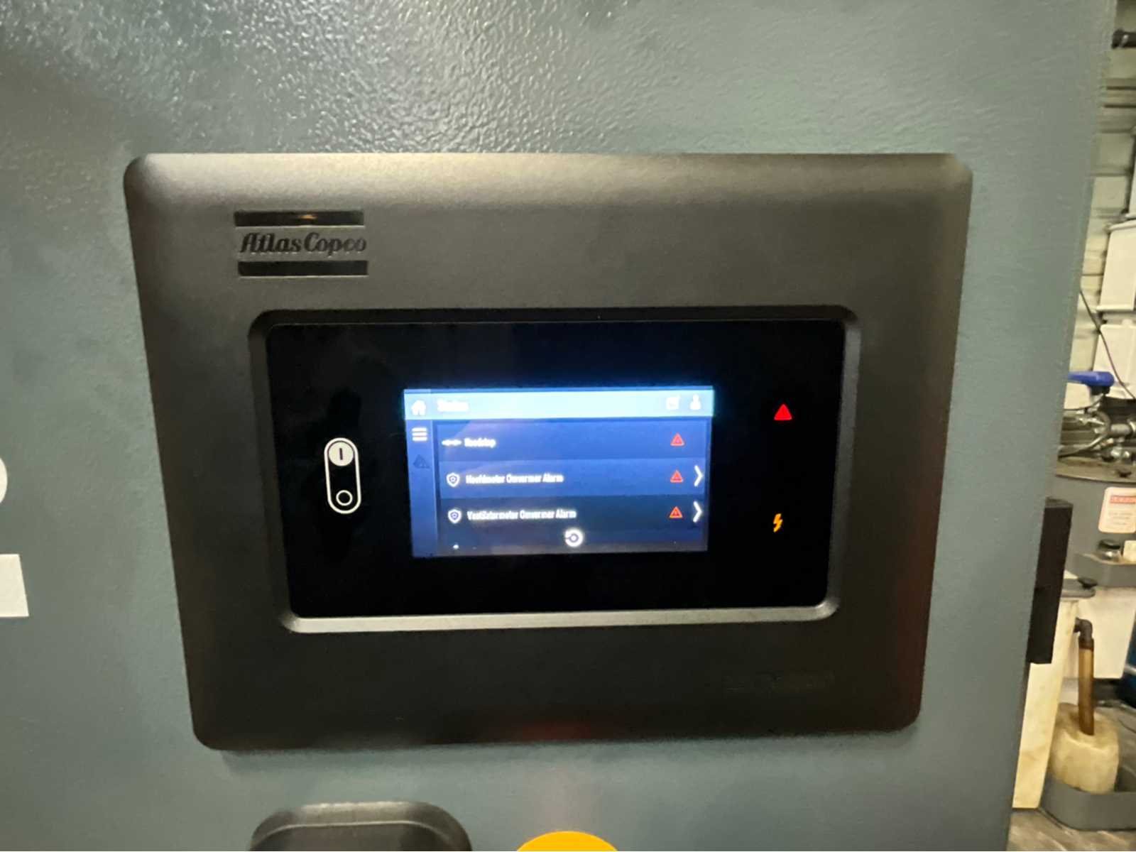 Touch screen display; inclusief coalescerende filter; zonder lucht leidingen; Merk: Atlas Copco Type: GA11VSDS FF Bouwjaar: 2024 Serienummer: ITJ855508 Capaciteit.: 10.75bar Vermogen: 3kW Afgelezen urenstand: 3145 Aansluiting: 400V Eigen gewicht: 383kg Totale afmeting L: 1100mm Totale afmeting Breedte: 700mm Totale afmeting Hoogte: 1500mm
