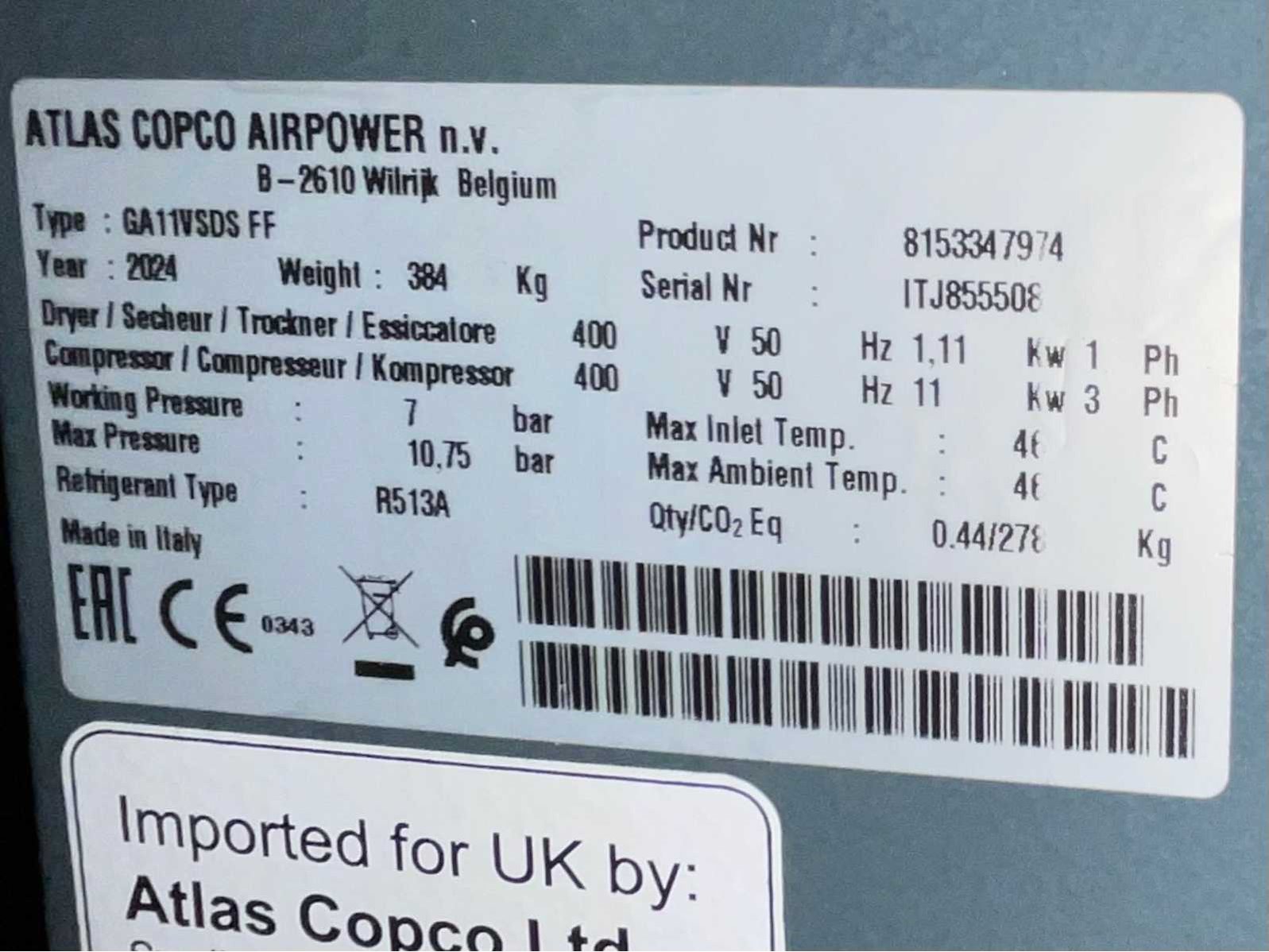 2024 atlas copco ga11vsds ff schroefcompressor met ingebouwde luchtdroger