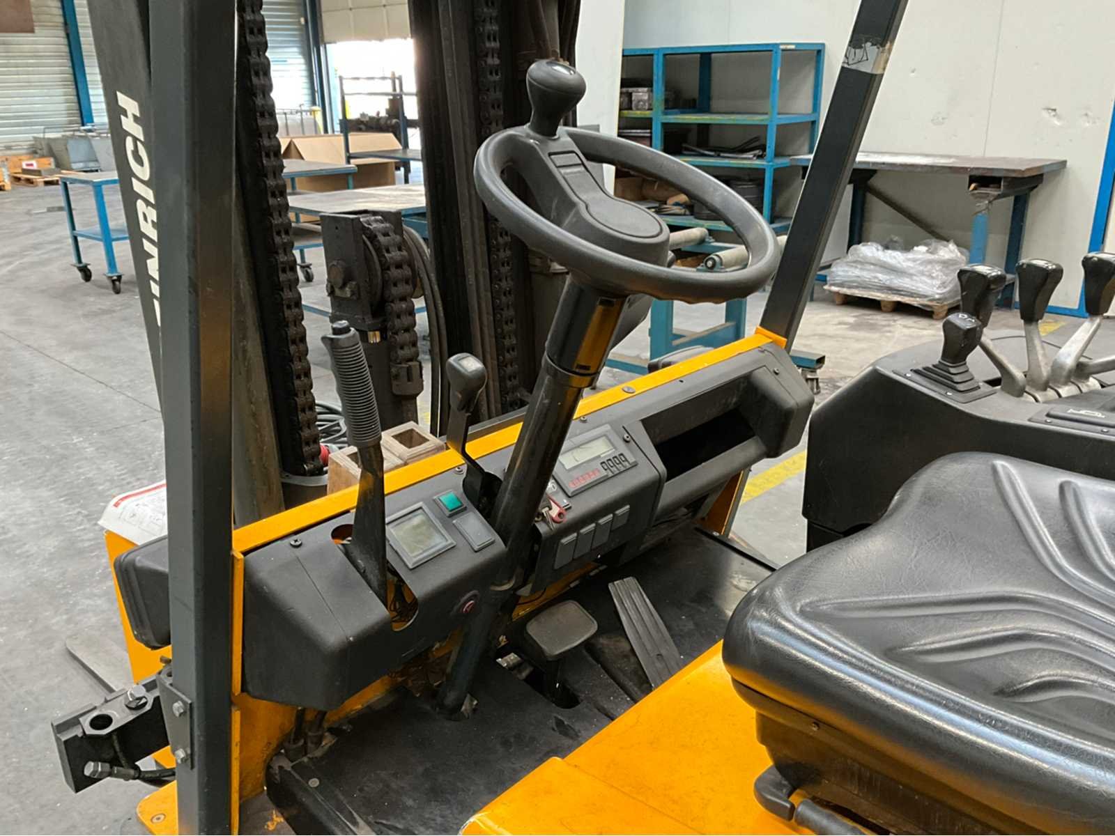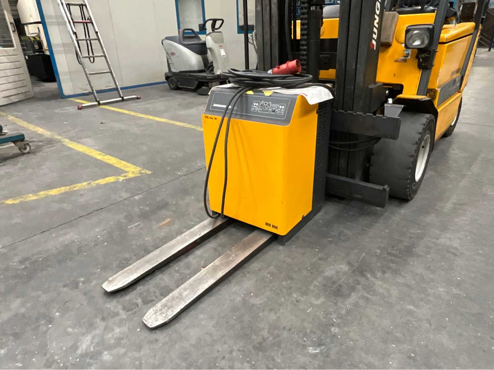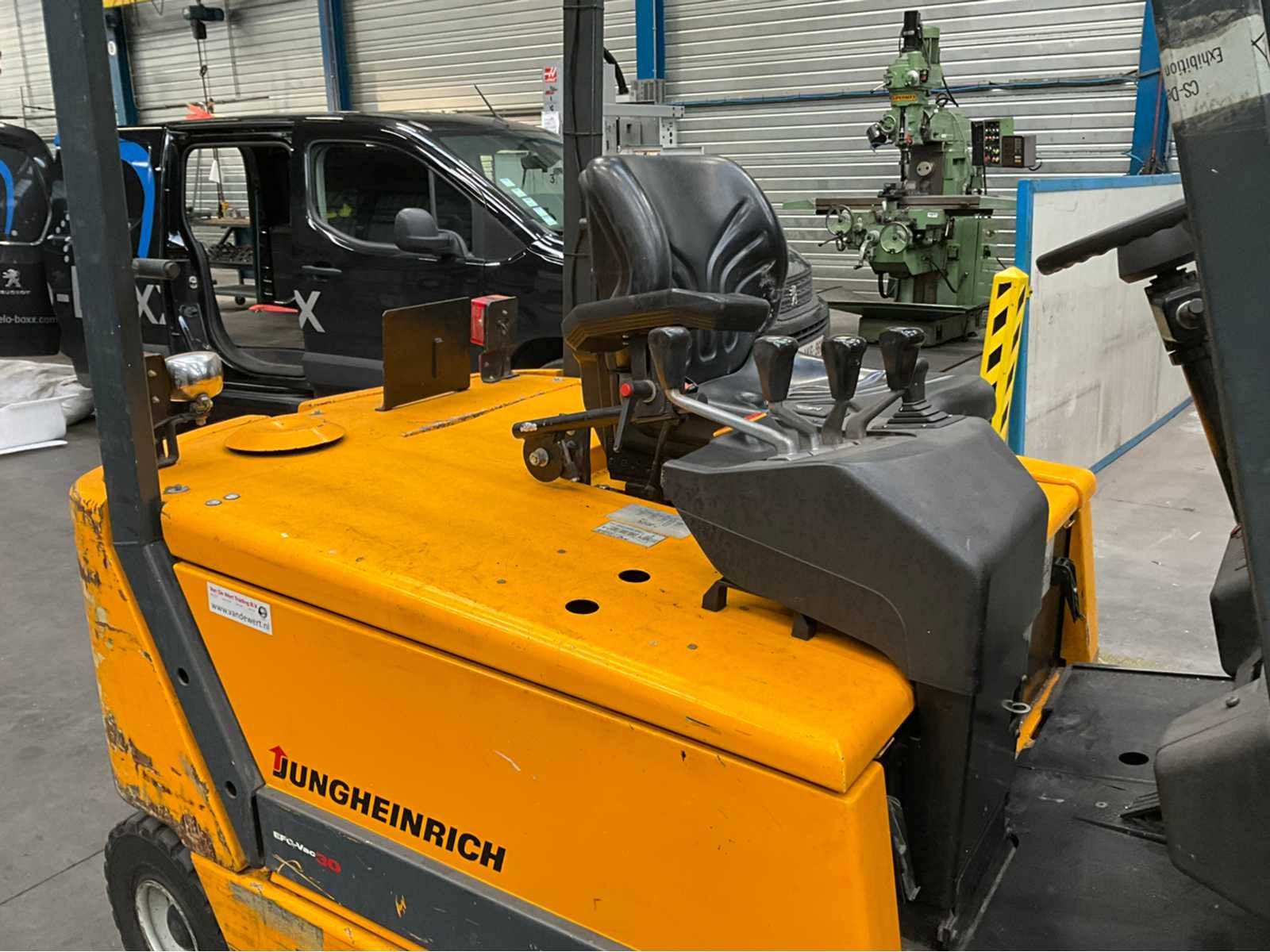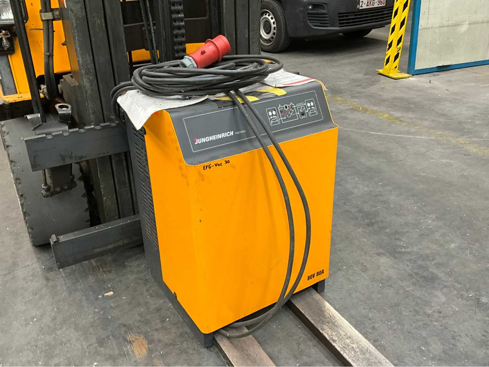 Afgelezen urenstand,3080 uur; gewicht accupakket circa 1950 kg; inclusief Jungheinrich 400 Volt - 80 Volt - 80 Ampère acculader; volgens opgave accu pakket defect; heftruck is alleen rijdend; Merk: Jungheinrich Type: EFG-Vac 30 G115-500DZ Bouwjaar: 2001 Serienummer: 89.91.70.3 Brandstof: Elektrisch Mast: Triple Soort band: Volrubber banden Aantal wielen: 4 Accu lader: true Free-lift: true Eigen gewicht: 3630kg Hefvermogen: 3000kg Lepellengte: 1200mm Max. hefhoogte: 5000mm Minimale doorrijhoogte: 2250mm Totale afmeting L: 3650mm Totale afmeting Breedte: 1250mm Totale afmeting Hoogte: 2250mm