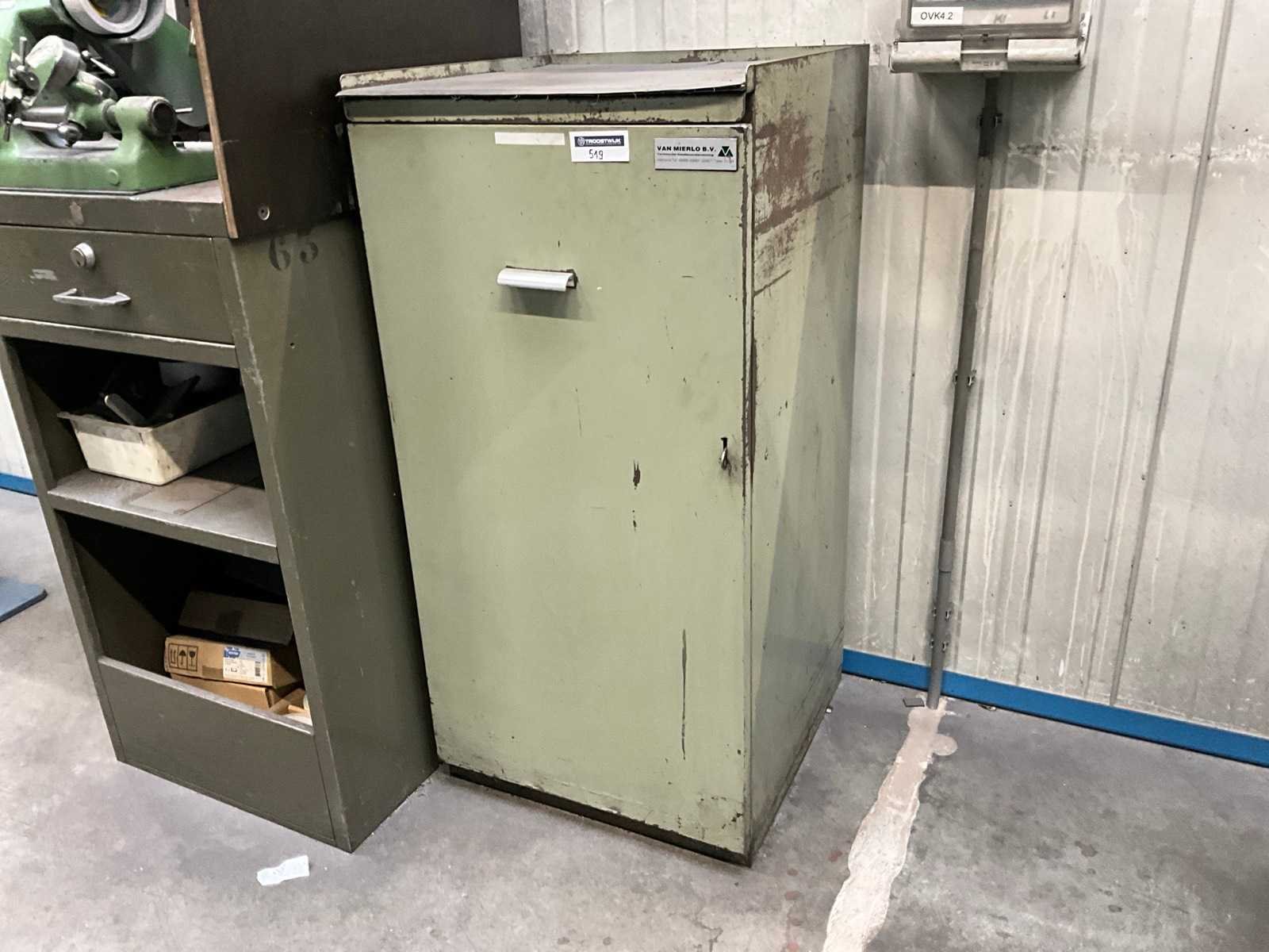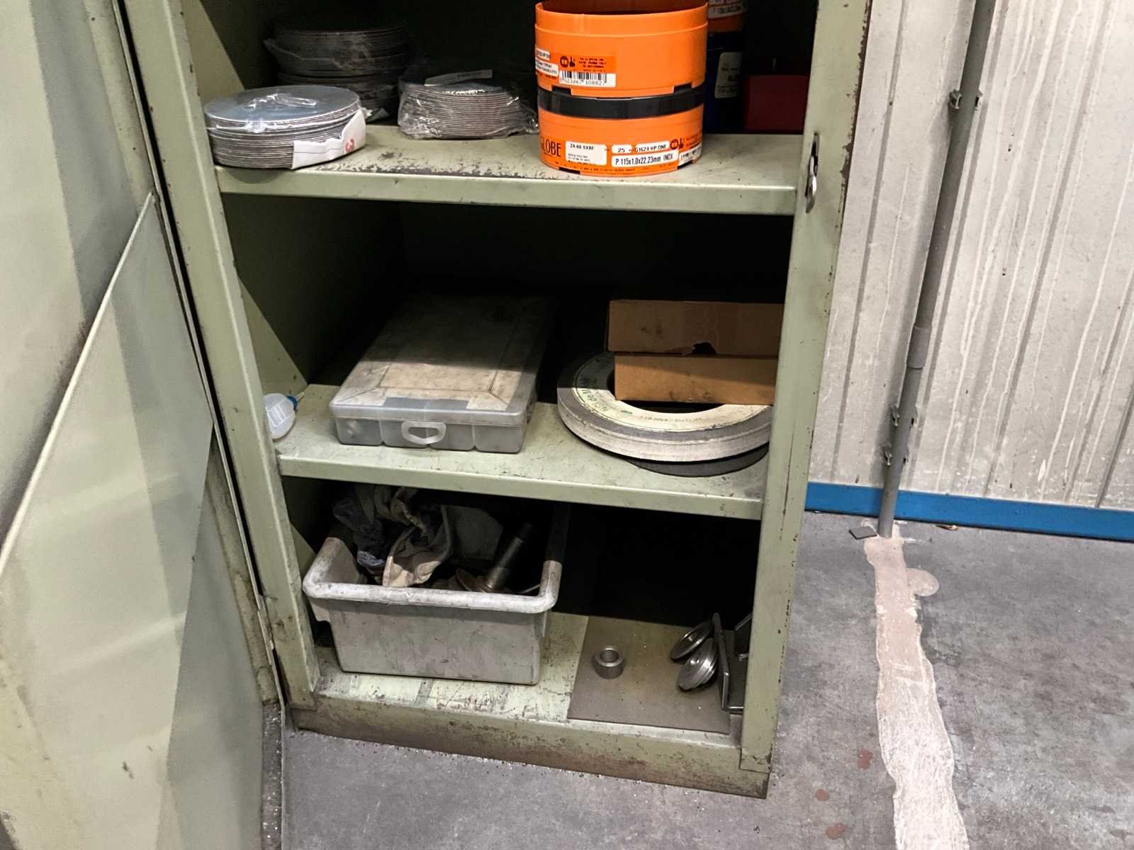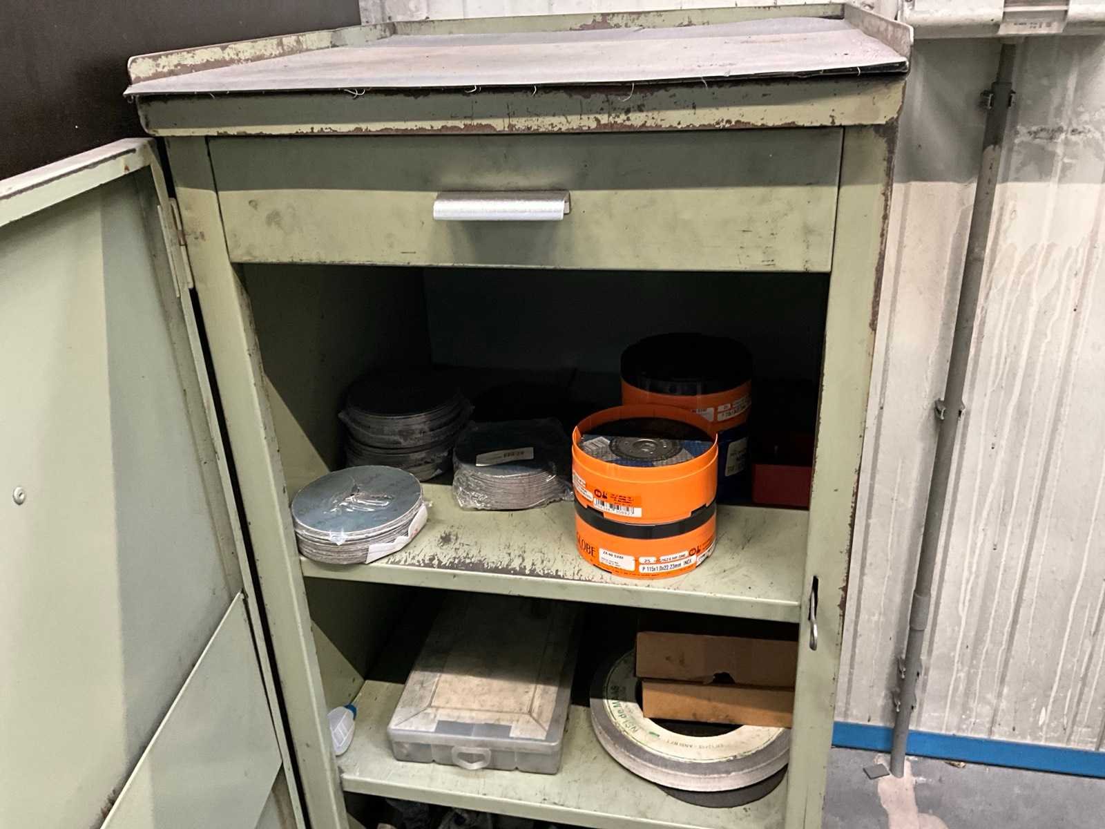 Staal; 1 deur; diverse inhoud waaronder schuurschijven; slijpstiften; Lengte: 50cm Breedte: 50cm Hoogte: 105cm