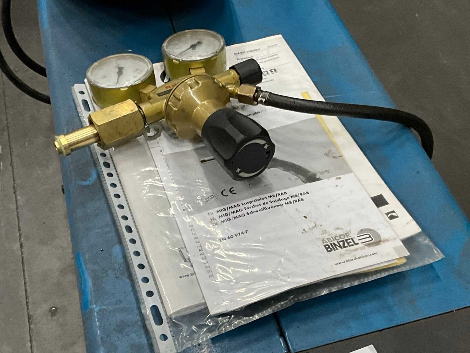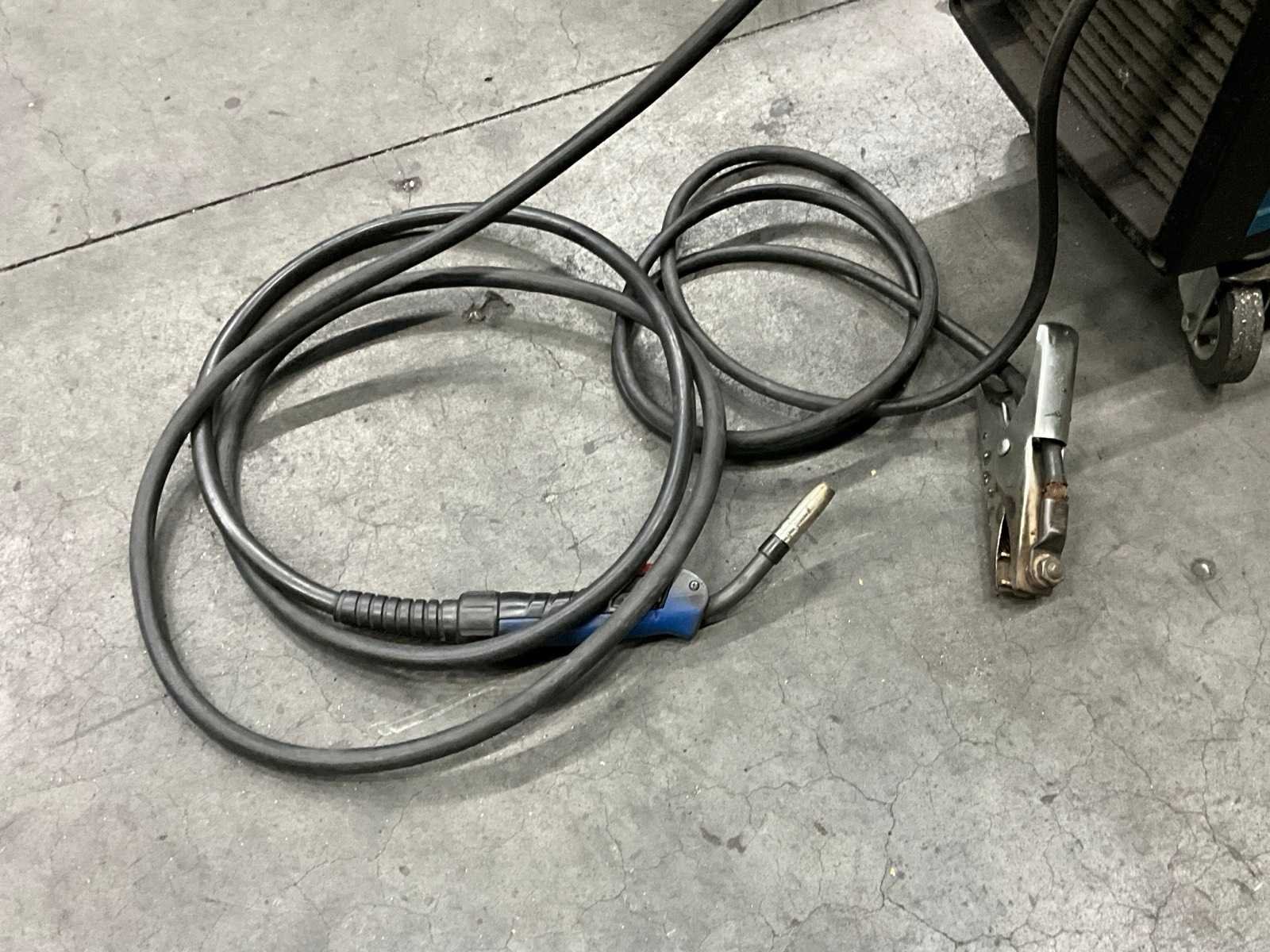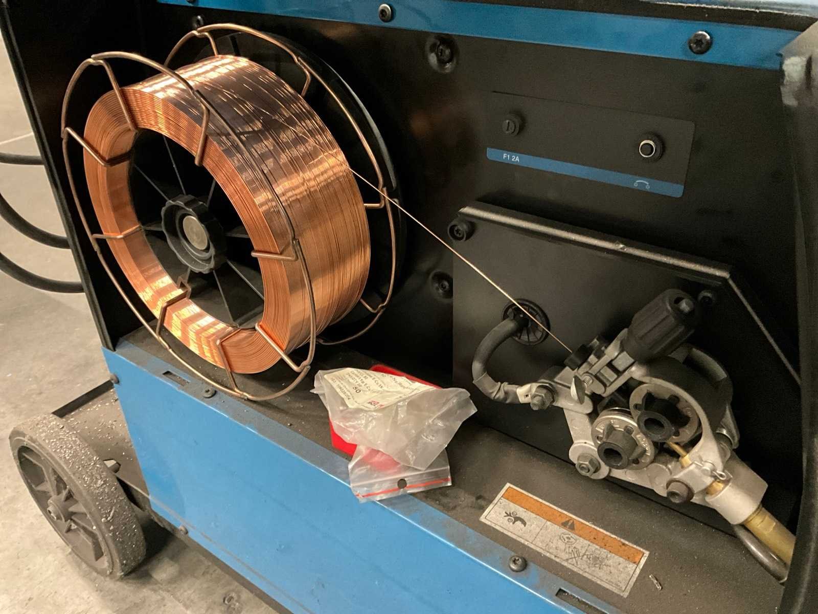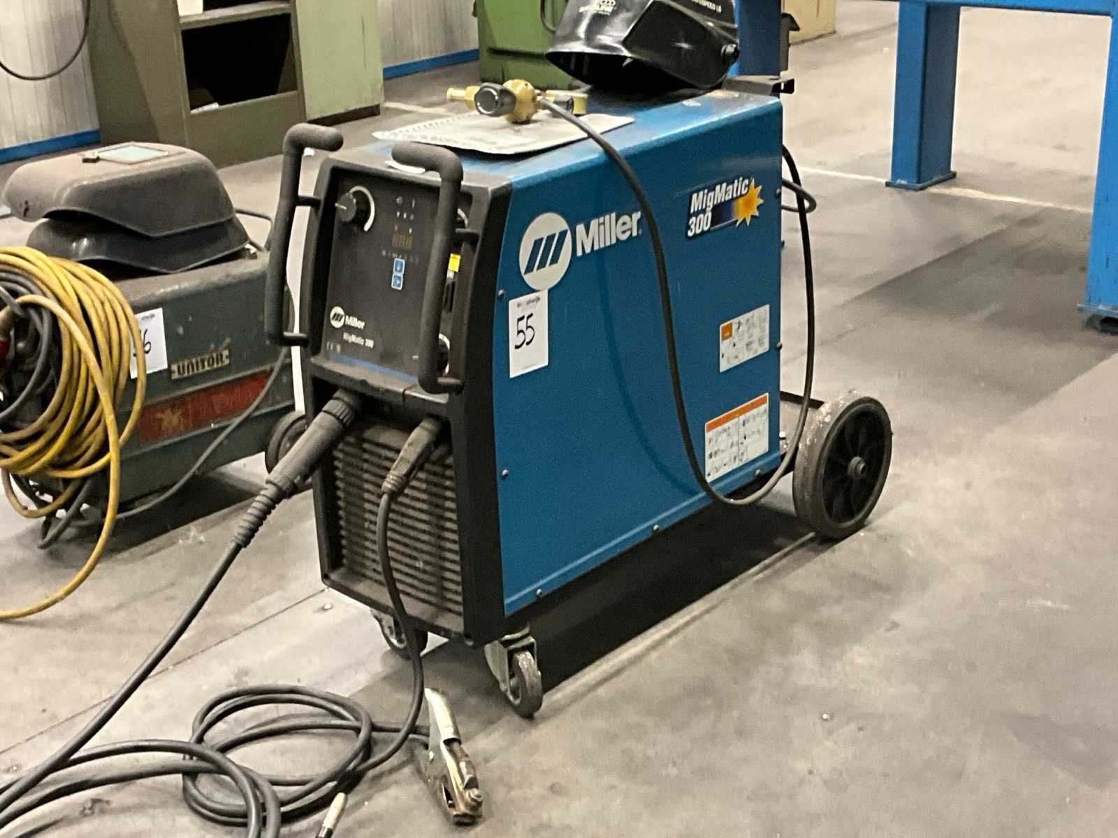 Verrijdbaar; inclusief lashelm; lastoorts; leidingen; drukregelaar; zonder gasfles; Merk: Miller Type: MigMatic 300 Max. lasvermogen: 300A Aansluiting: 400V Afmeting l: 400mm Afmeting b: 1300mm Afmeting h: 800mm