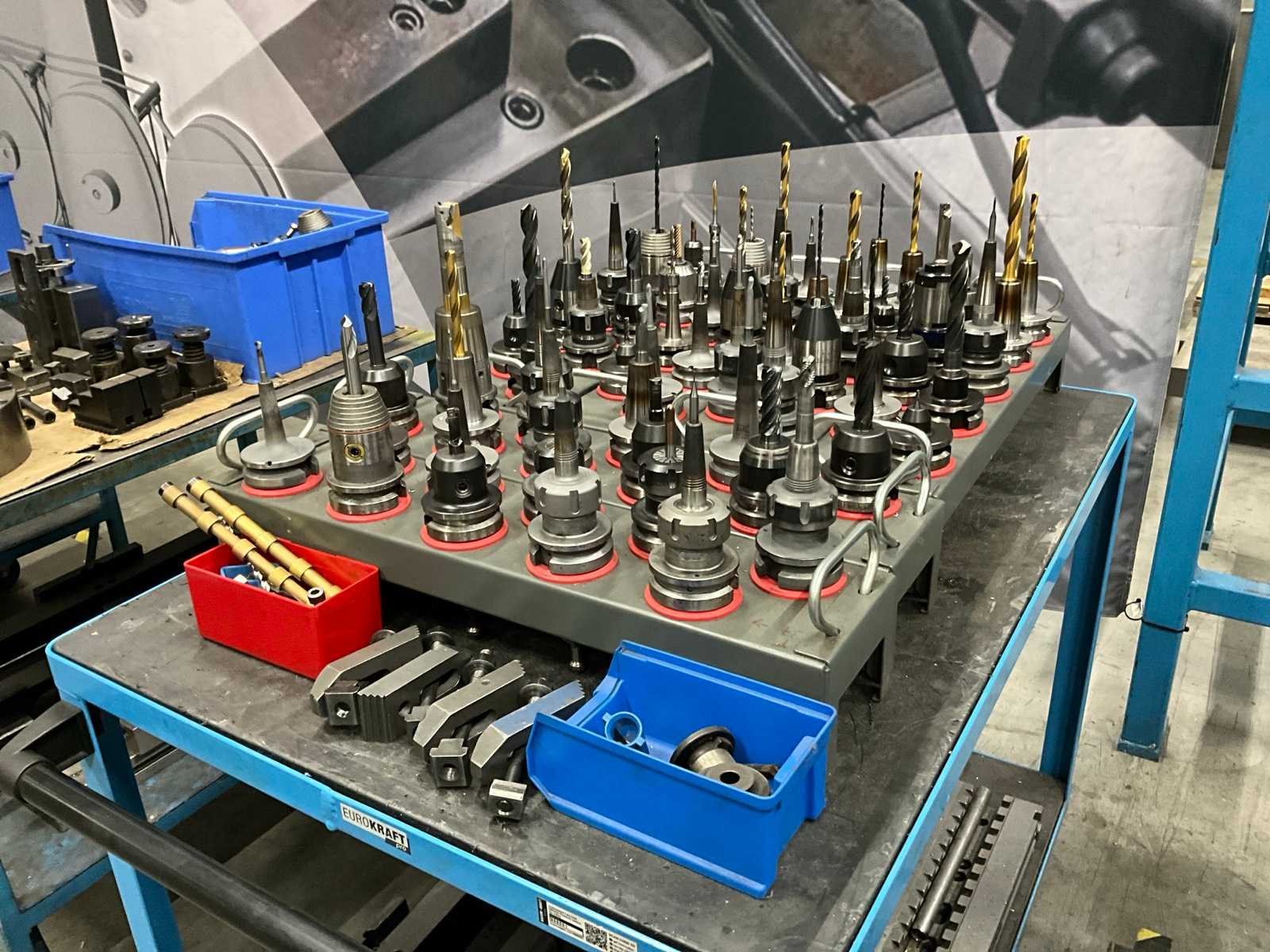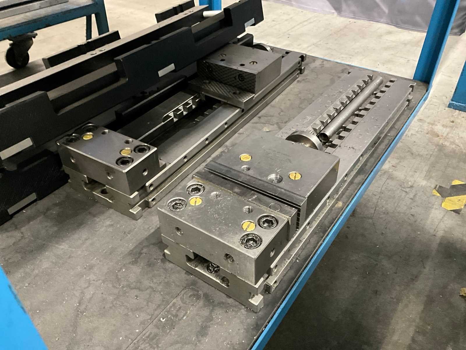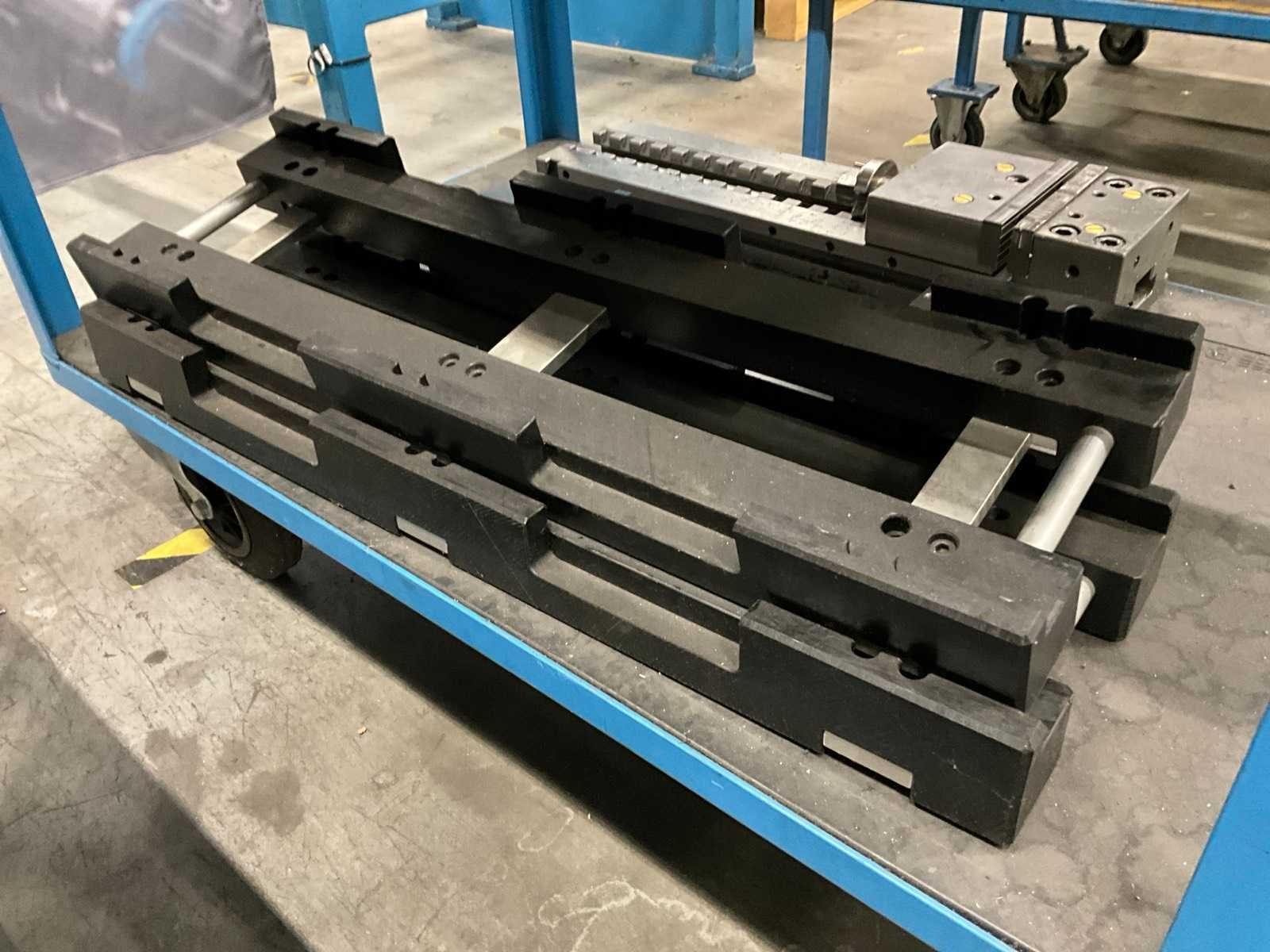 Inclusief montagewagen Kaiser + Kraft; staal; duwbeugel; voorzien van hout boven en onderlegbord; 2x zwenkwiel; tafel afmeting 1040x740 mm; draagvermogen 500 kg; inclusief 6 frames voorzien van gereedschapshouders waaronder voorzien van boren; 2x machineklem bekbreedte 150 mm; Merk: Kaiser + Kraft Type: MW 17-O Bouwjaar: 2021 Totale afmeting L: 1150mm Totale afmeting Breedte: 740mm Totale afmeting Hoogte: 910mm