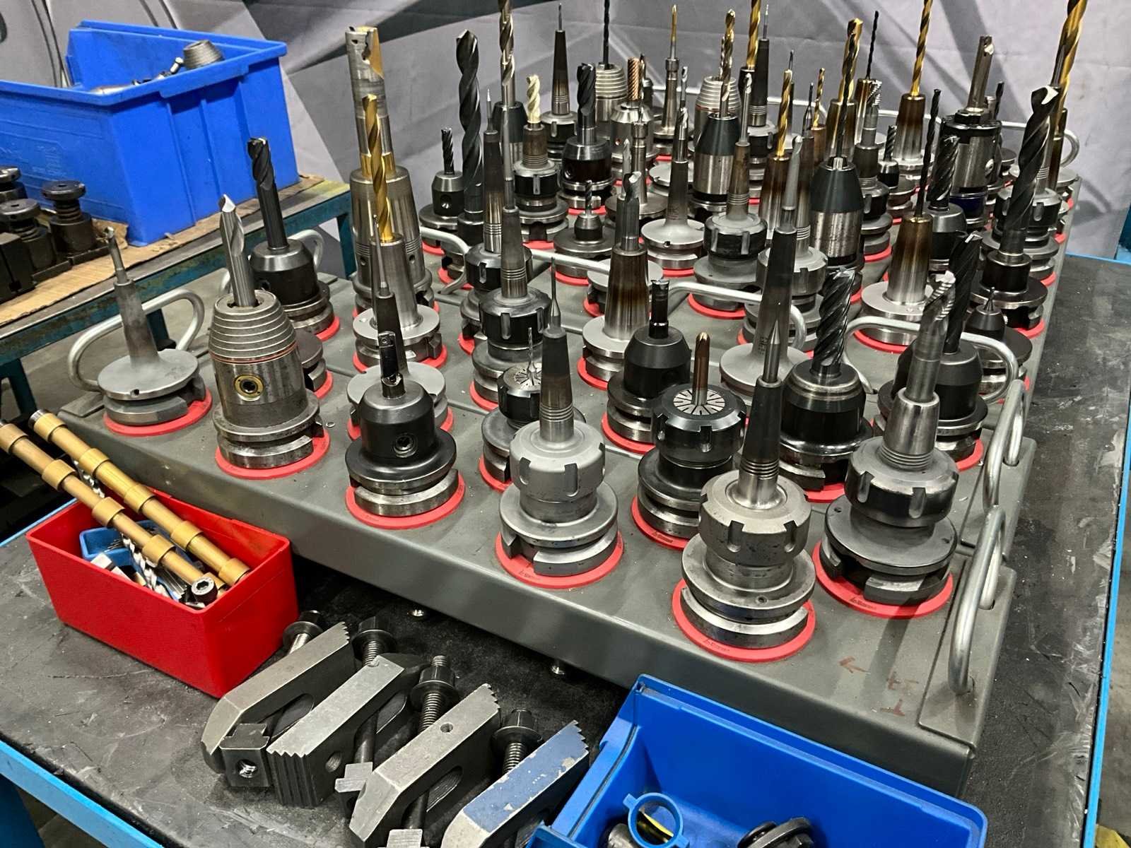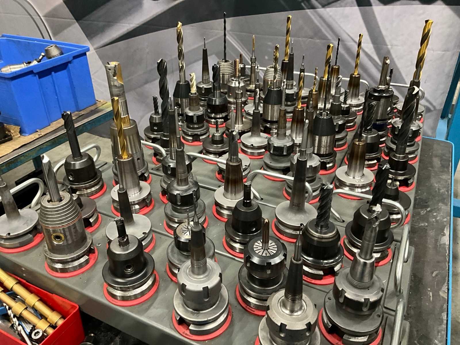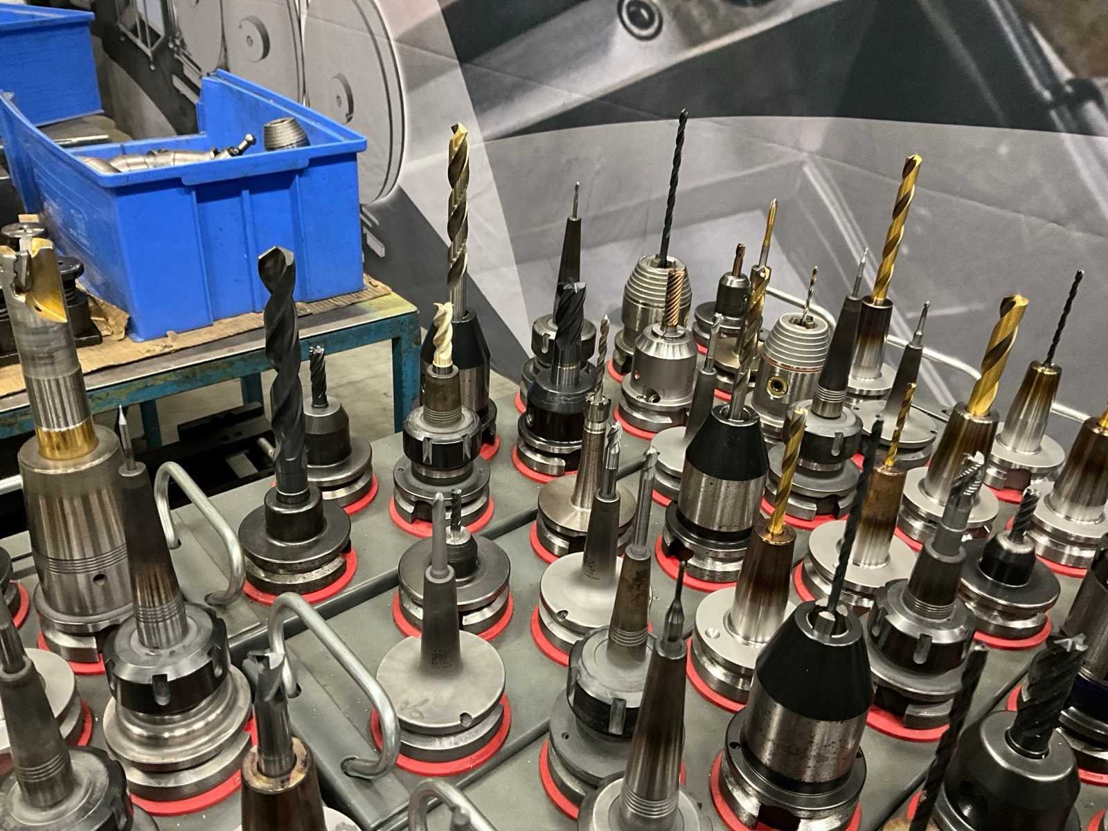 Inclusief montagewagen Kaiser + Kraft; staal; duwbeugel; voorzien van hout boven en onderlegbord; 2x zwenkwiel; tafel afmeting 1040x740 mm; draagvermogen 500 kg; inclusief 6 frames voorzien van gereedschapshouders waaronder voorzien van boren; 2x machineklem bekbreedte 150 mm; Merk: Kaiser + Kraft Type: MW 17-O Bouwjaar: 2021 Totale afmeting L: 1150mm Totale afmeting Breedte: 740mm Totale afmeting Hoogte: 910mm