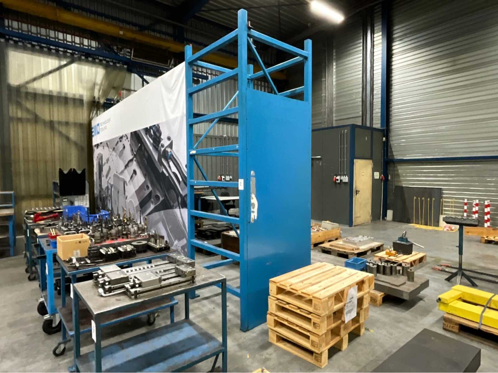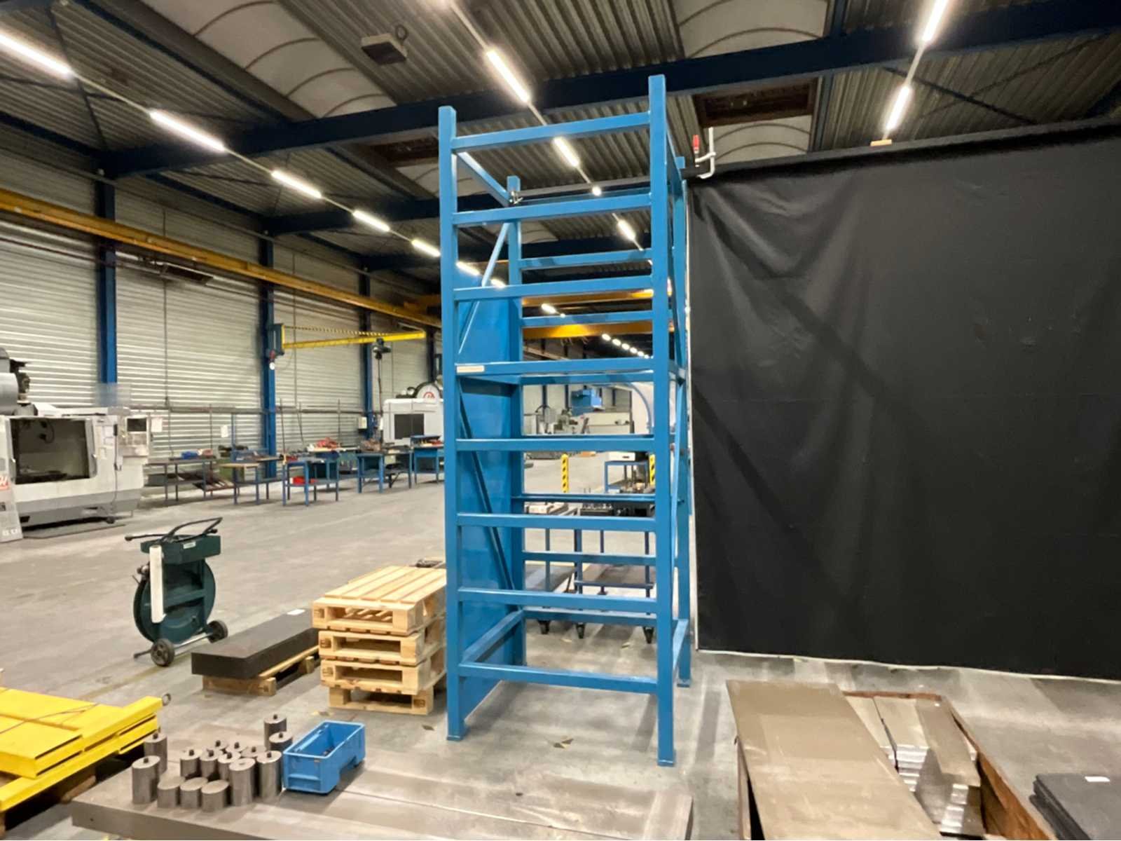 Profielstaal; geconstrueerd; 8 legvlakken; legvlak afmeting 1000x1100 mm; totaal afmeting 1160x1100x3300 mm;