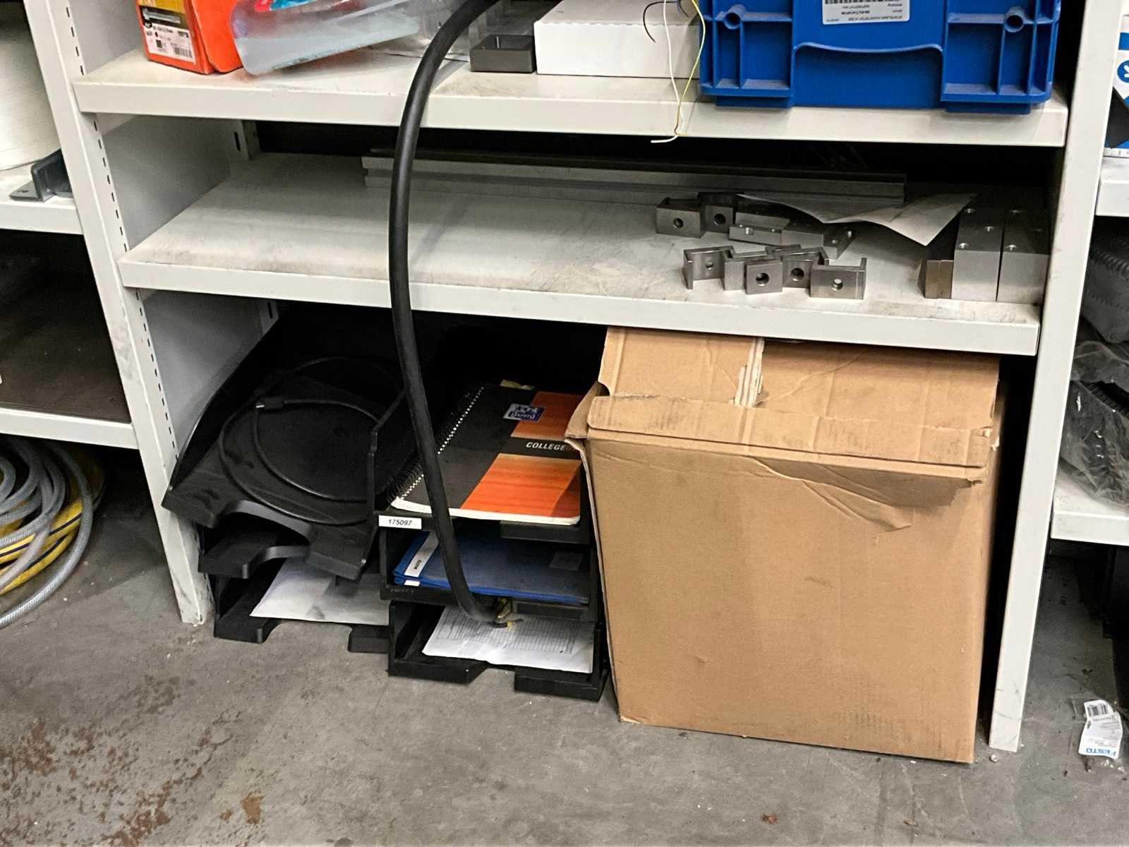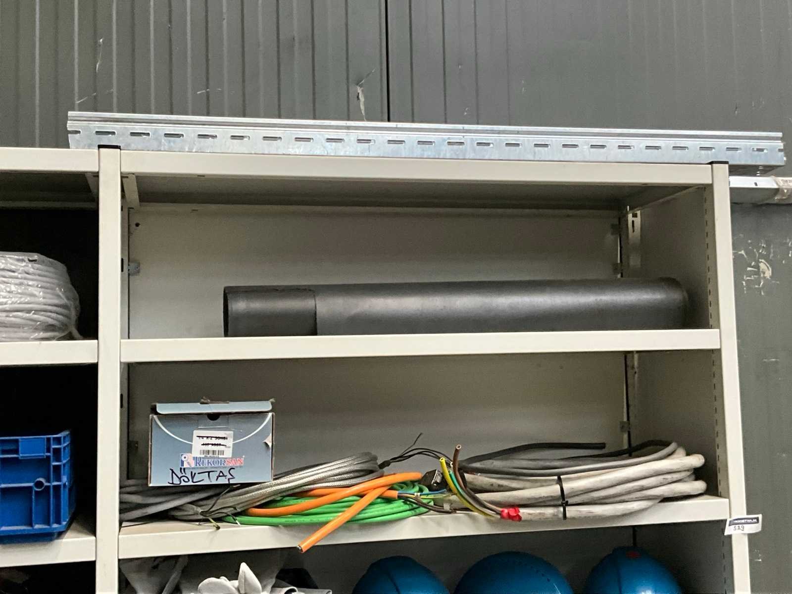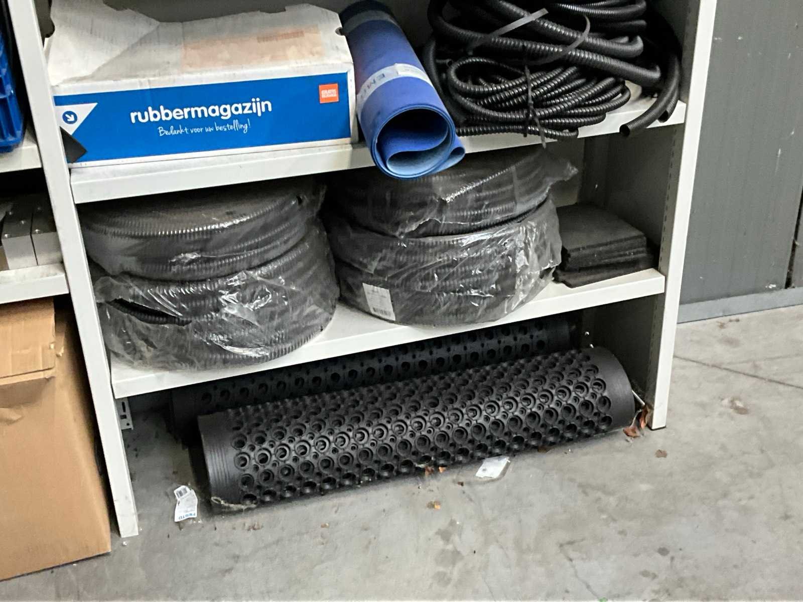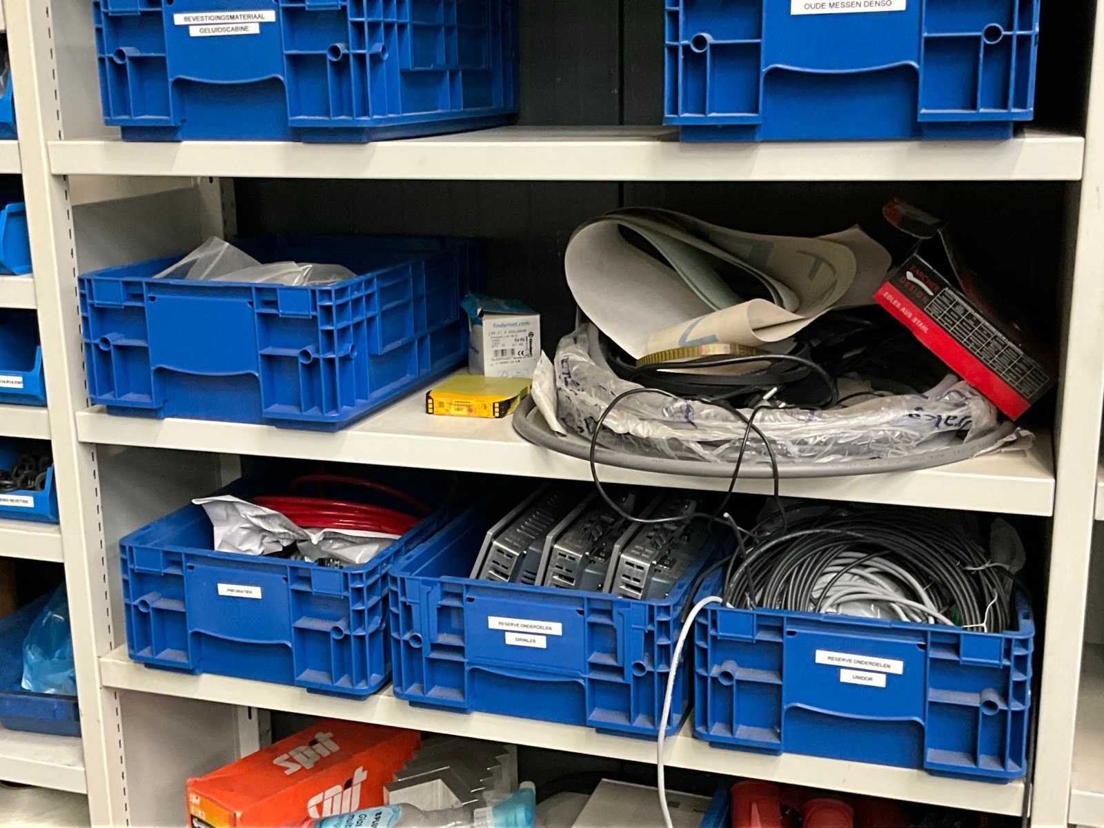 Staal? 3 secties; 4x staander afmeting 350x2120 mm; 28x staal legbord afmeting 970x350 mm; inclusief inhoud waaronder veiligheidshelmen; kunststof voorraad grijpbakjes; nippels; koppelingen; borg revetten; zelftappers; flexbuis;