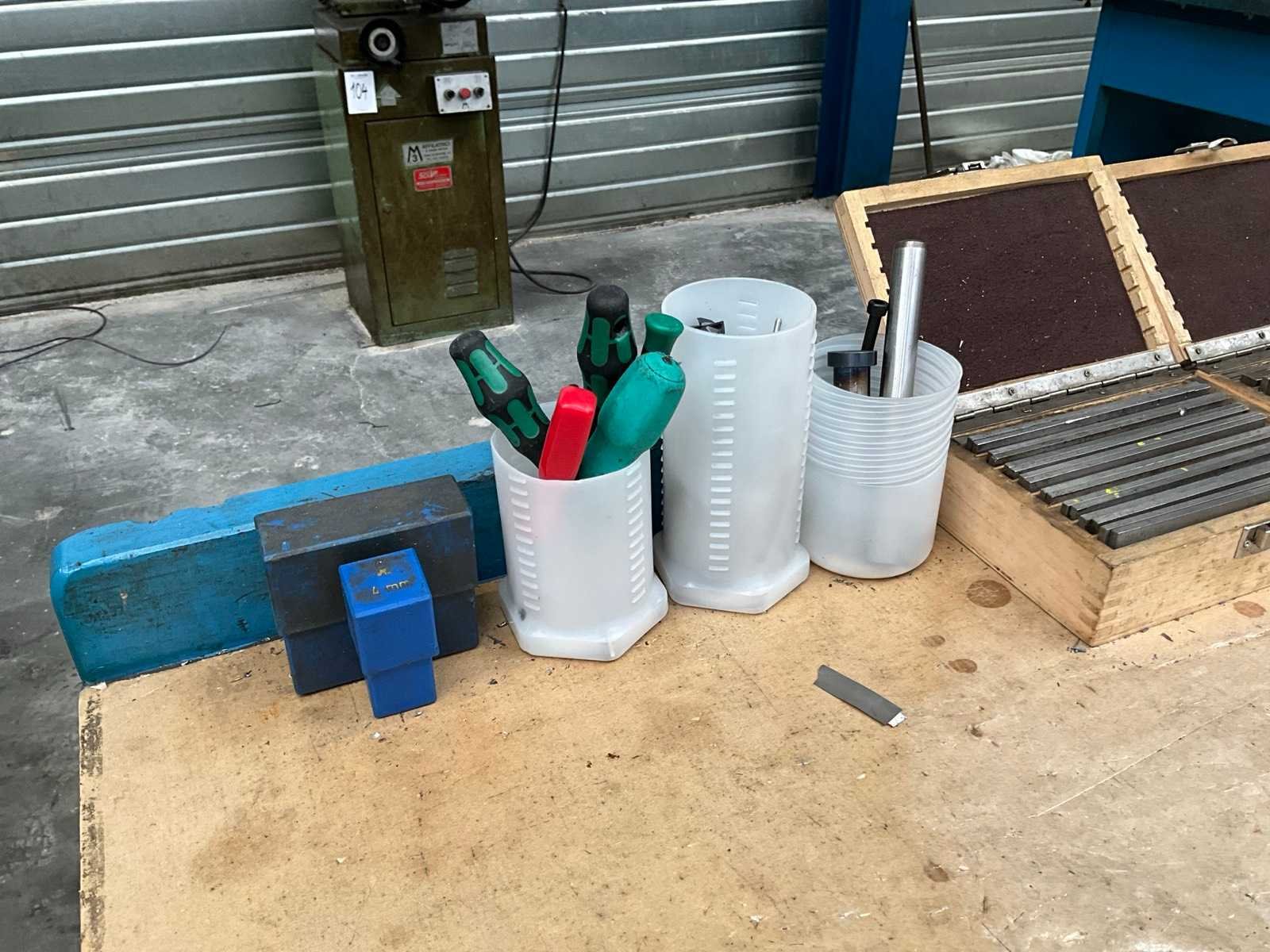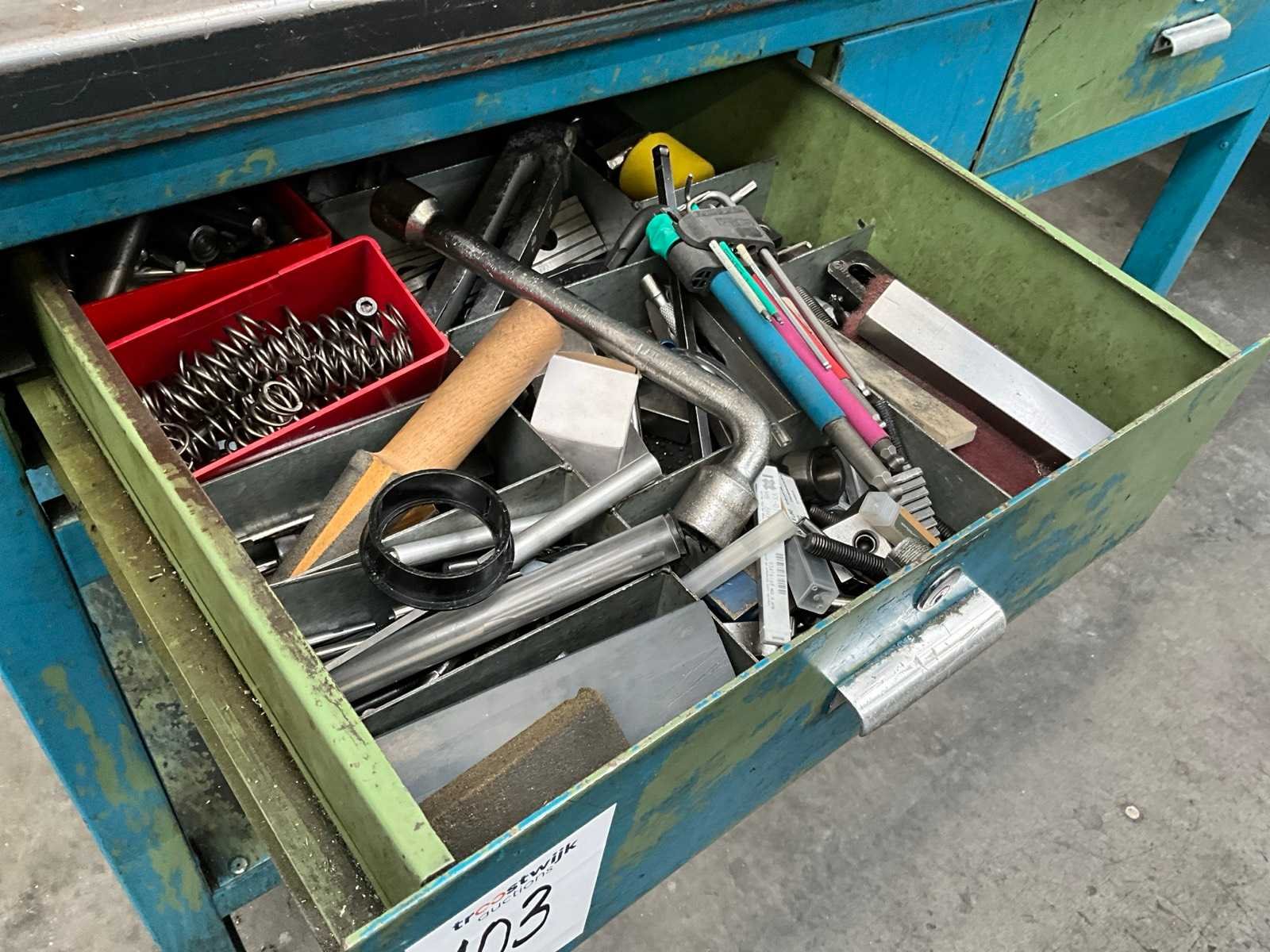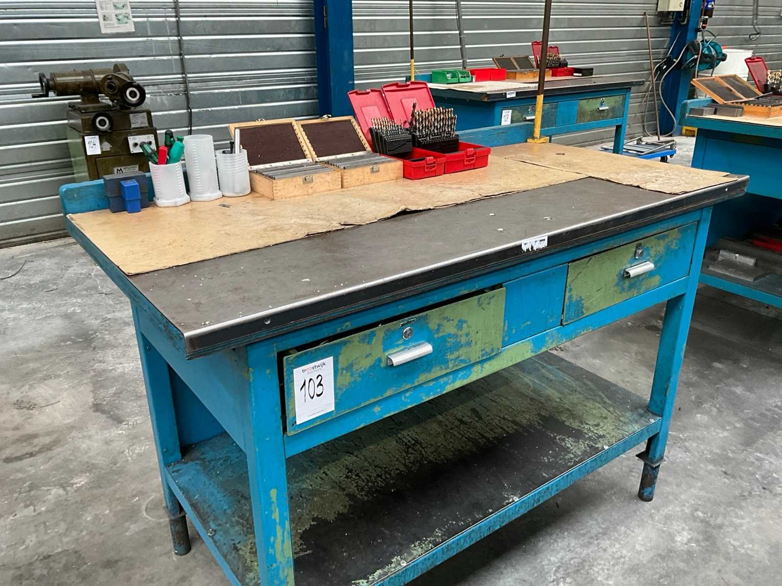 Profielstaal onderstel; staal bekleed tafelblad; voorzien van staal onderblad; voorzien van 2 laden voorzien van bevestigingsmaterialen en kleine handgereedschappen; afmeting circa 1500x770x1020 mm;