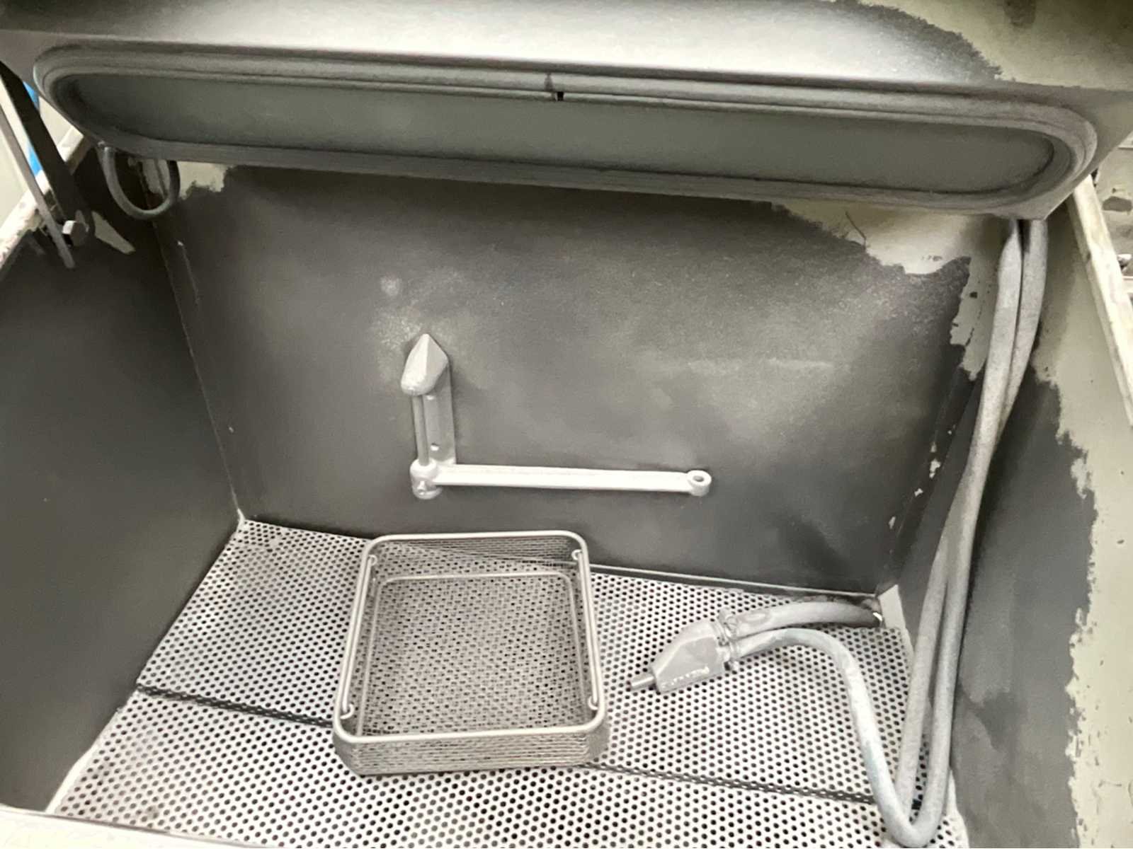 Voorzien van liftbare kap; staand op 4 blokken; totaal afmeting zonder blokken circa 750x850x1400 mm; zonder afzuiging; Merk: Peenmatic Type: Micro 750S Glas: true Kamer afmeting l: 700mm Kamer afmeting b: 480mm Kamer afmeting h: 300mm Aansluiting: 230V