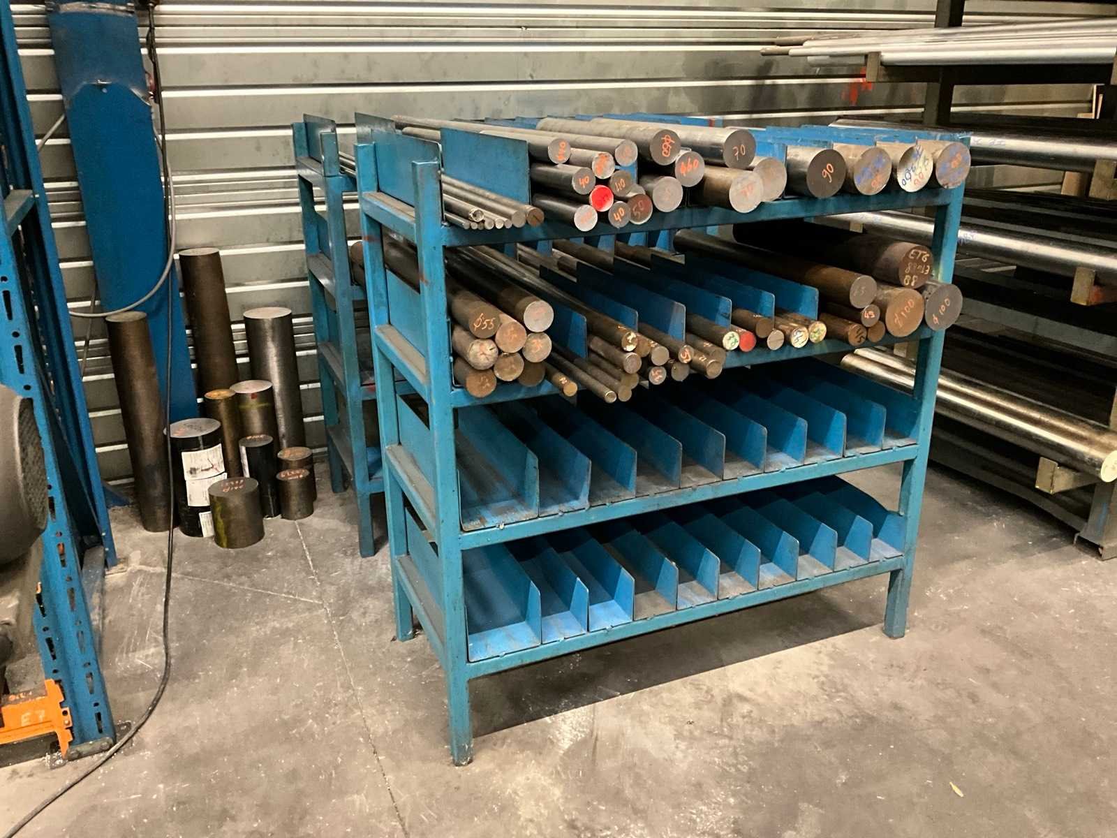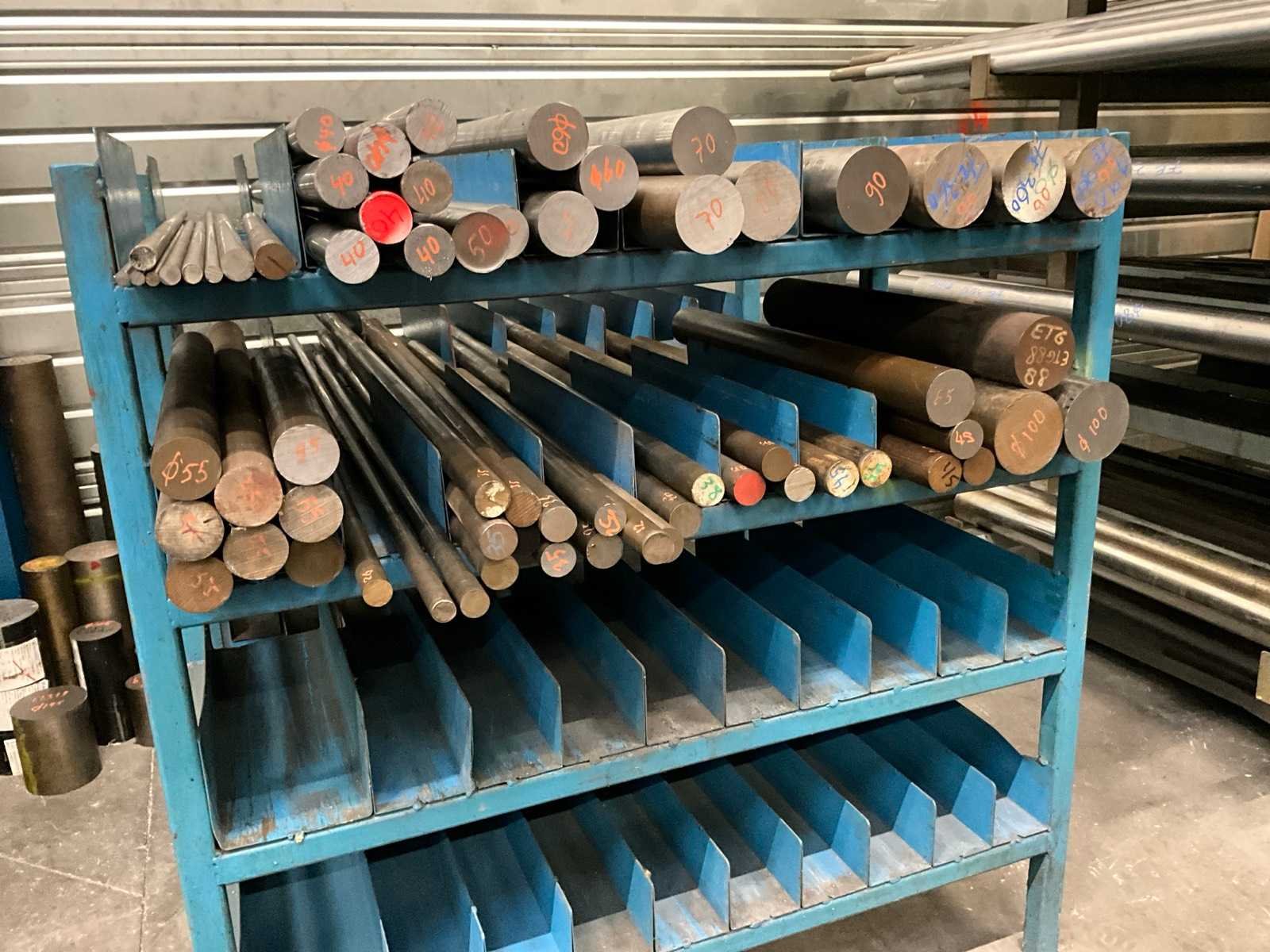 Rond; diverse diameter waaronder maximaal 163 mm; diverse lengte waaronder maximaal 1850 mm; inclusief 2x staal geconstrueerde vakkenstelling afmeting circa 1200x550x1220 mm