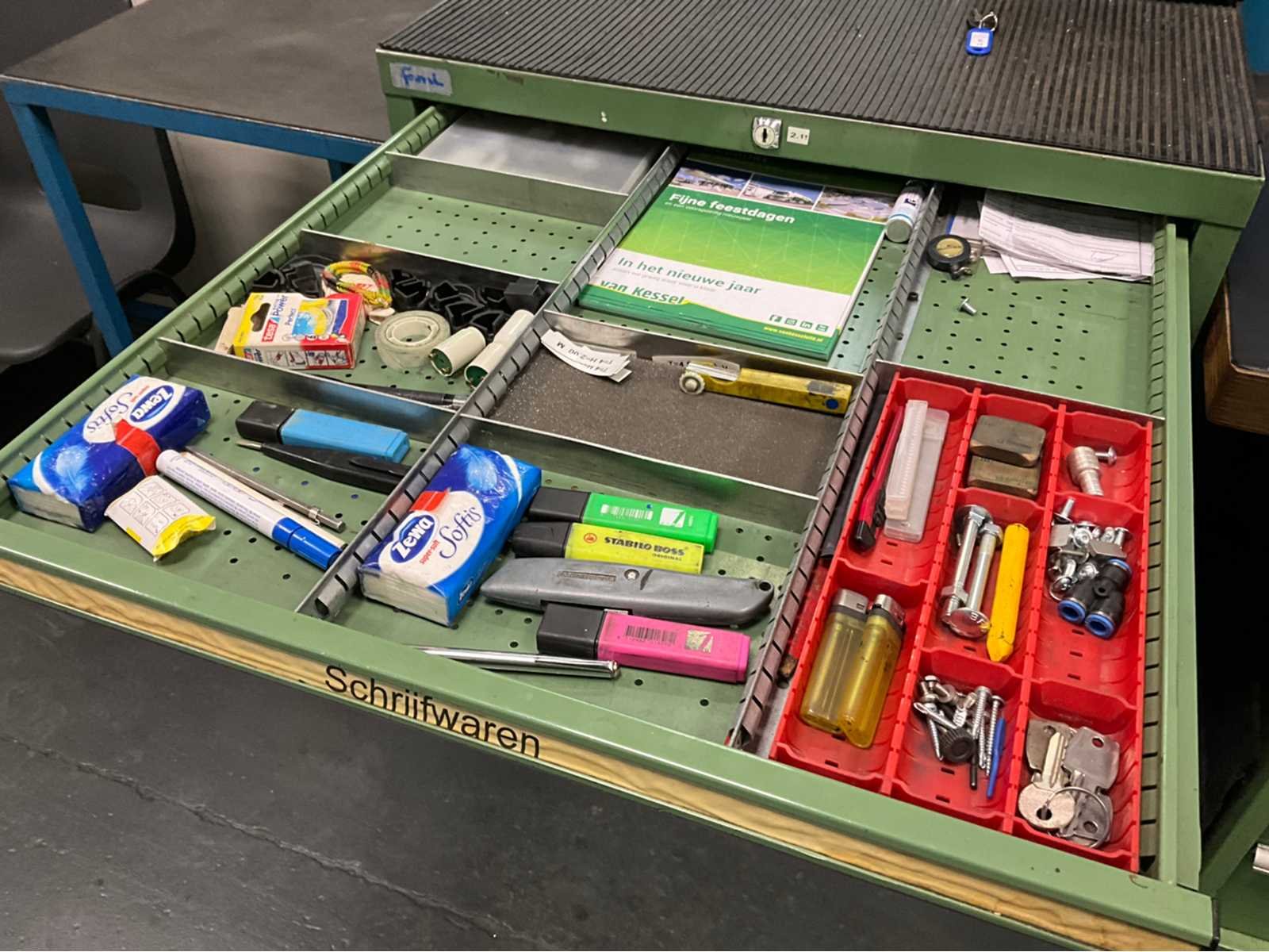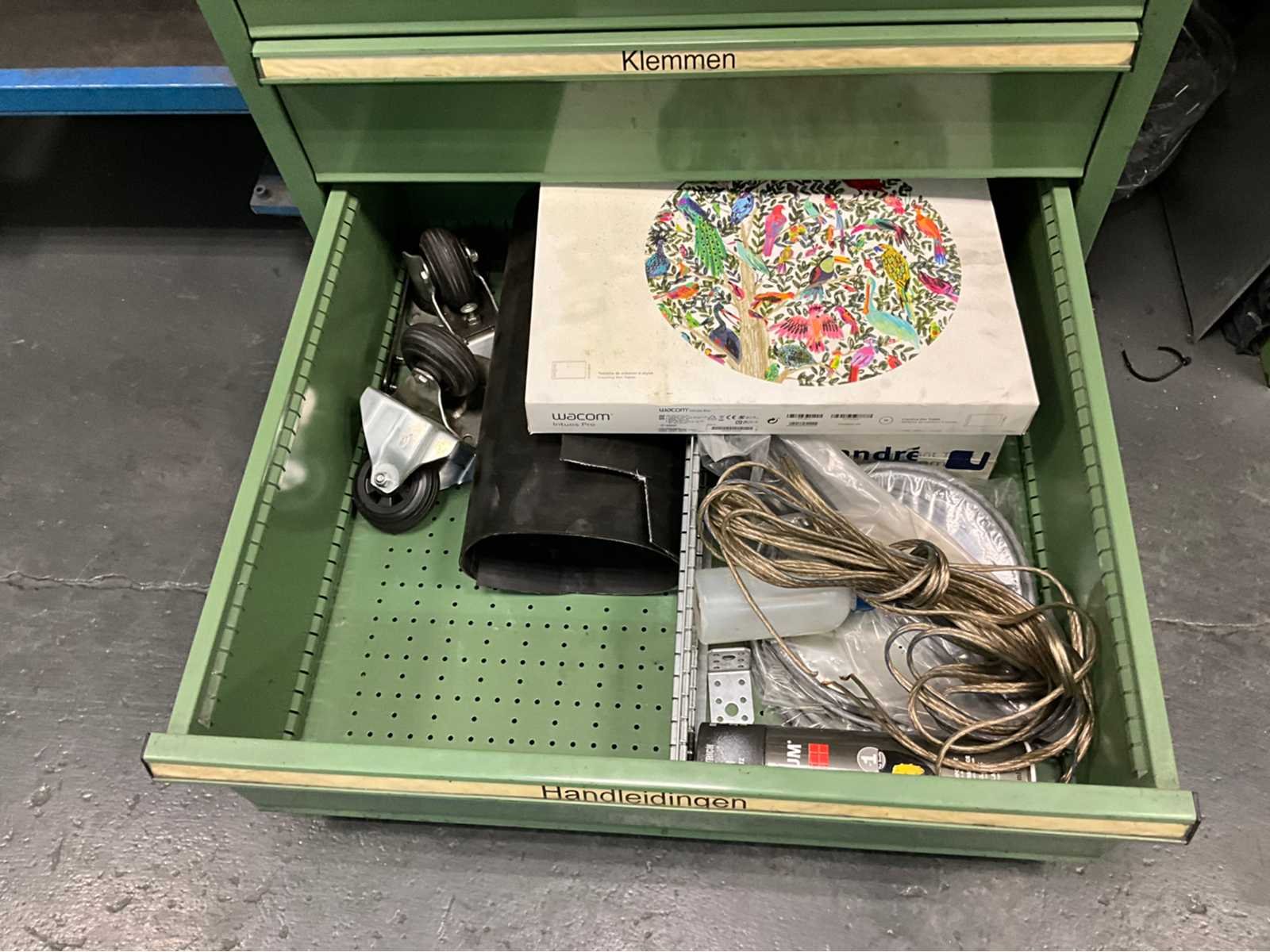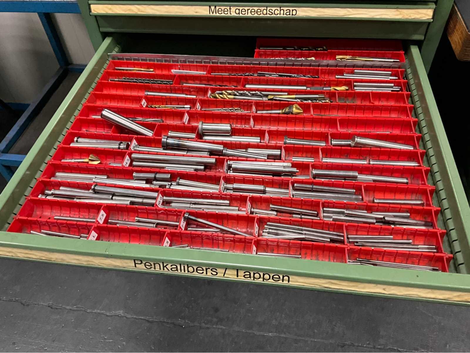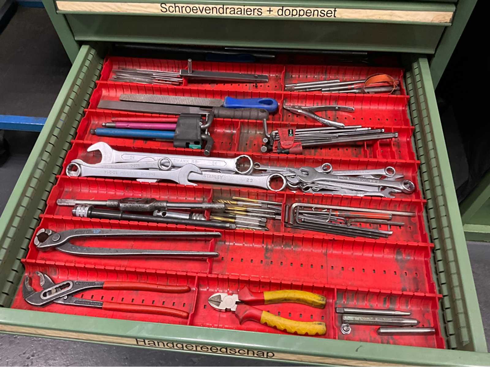 Voorzien van 8 lafen; Inclusief inhoud waaronder boren; handgereedschappen; Totale afmeting L: 720mm Totale afmeting Breedte: 720mm Totale afmeting Hoogte: 1000mm