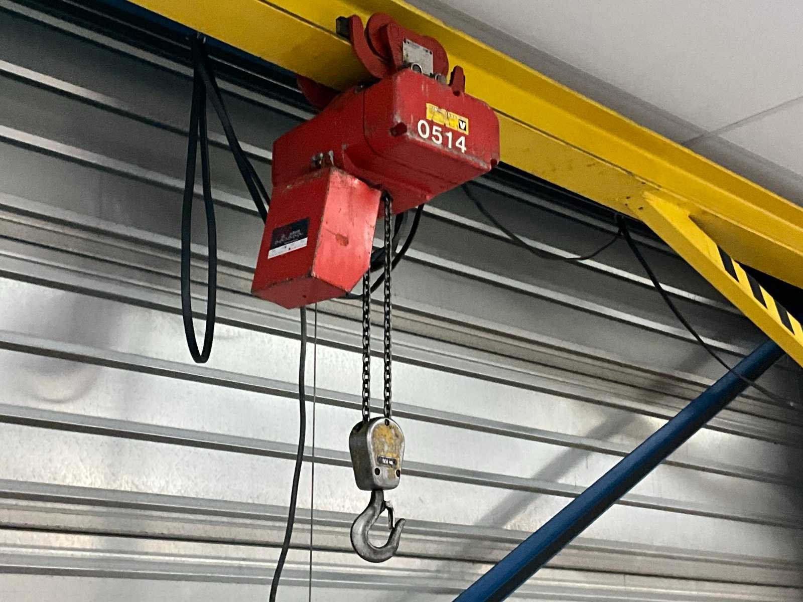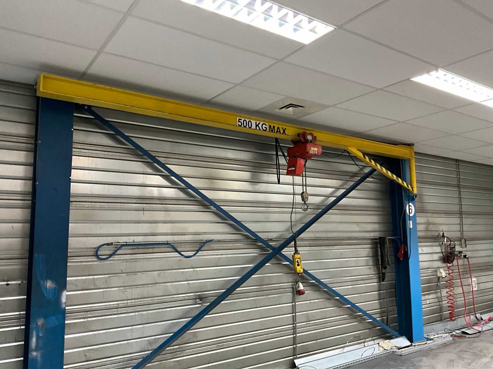 Wand gemonteerd; montagehoogte circa 2700 mm; voorzien van elektrische kettingtakel; draadbediend; let op! zonder wandbevestiging; Hijsvermogen: 500kg Armlengte: 5000mm Aansluiting: 400V
