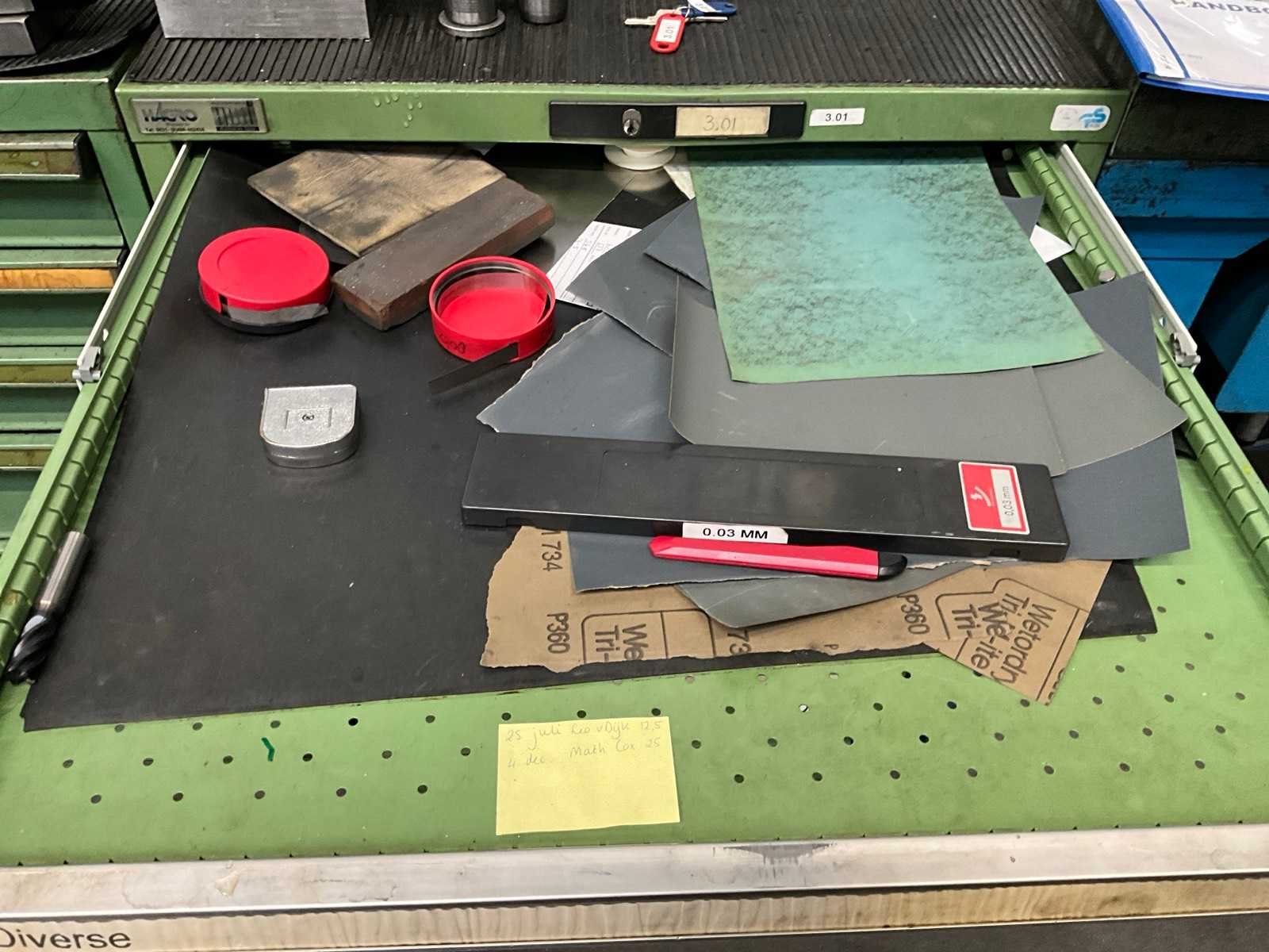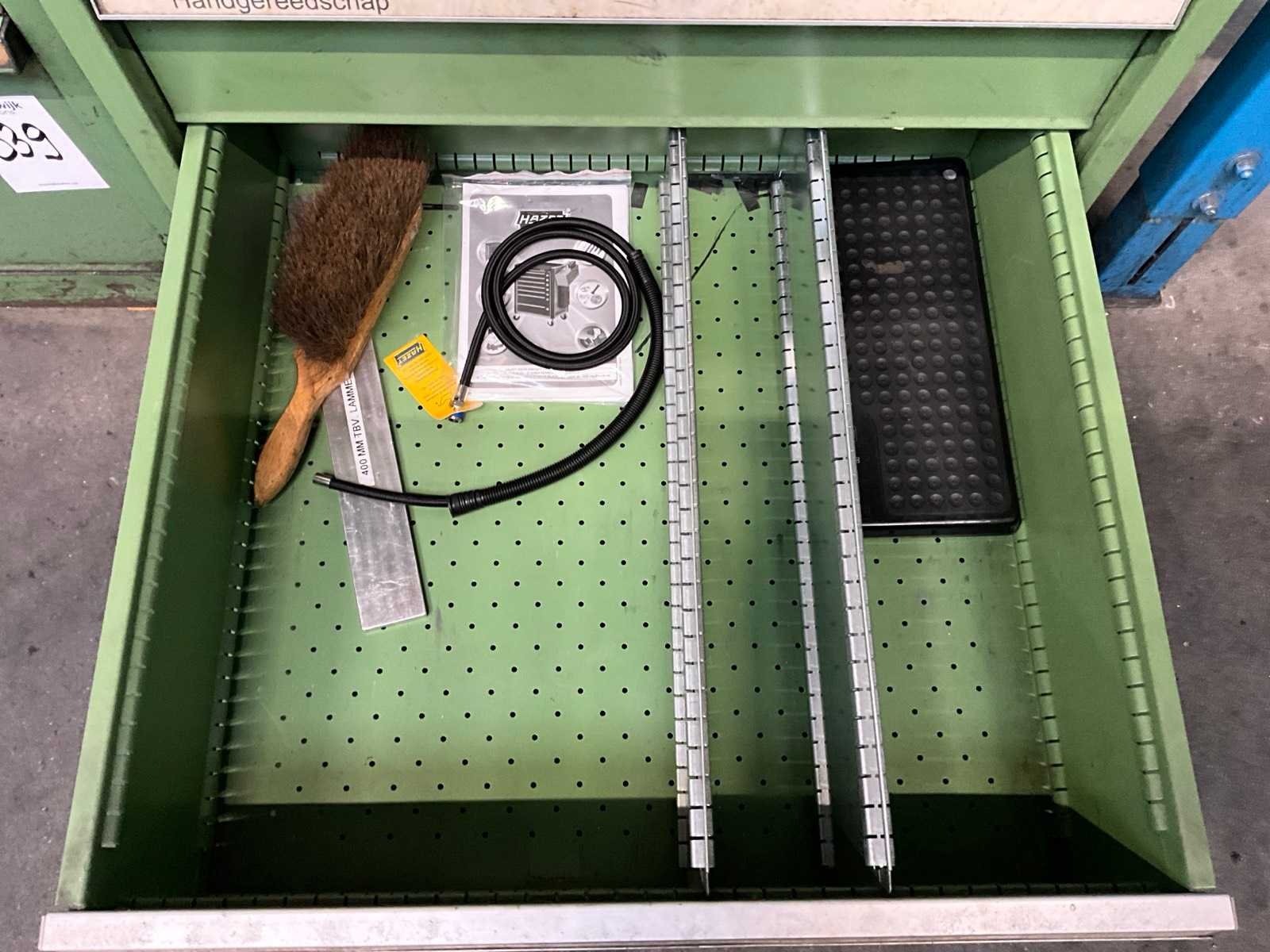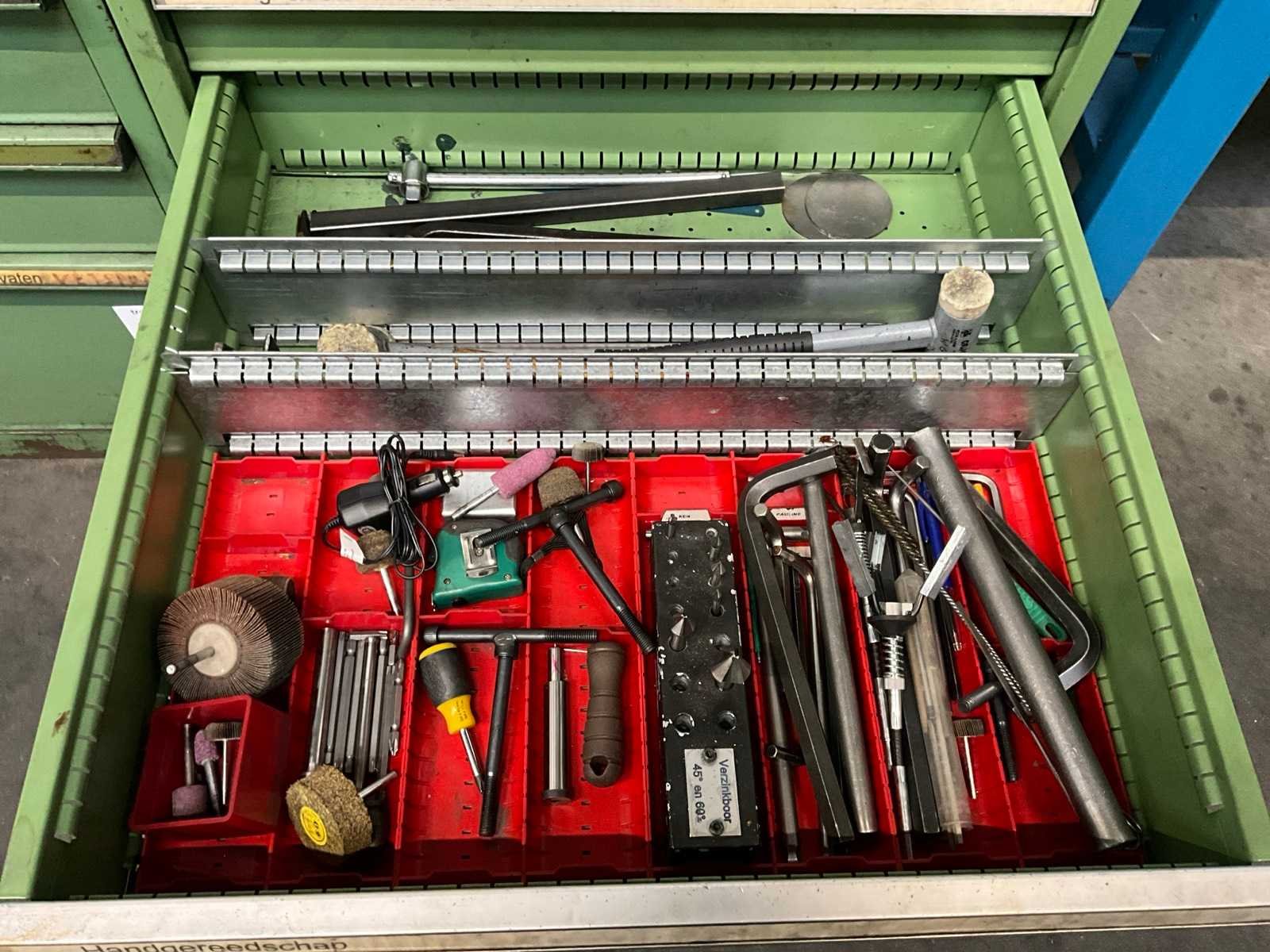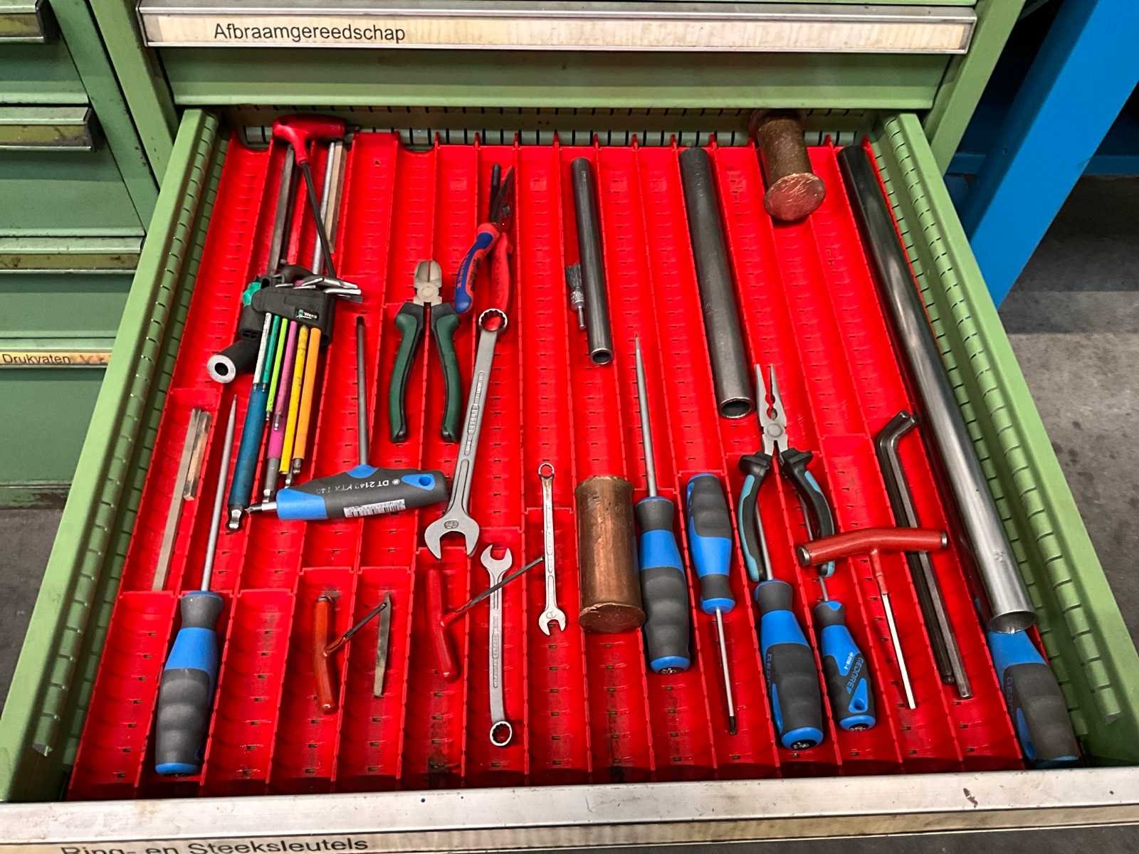 In 8 lades diverse gereedschappen, kast afmeting 740x720x1000 mm,