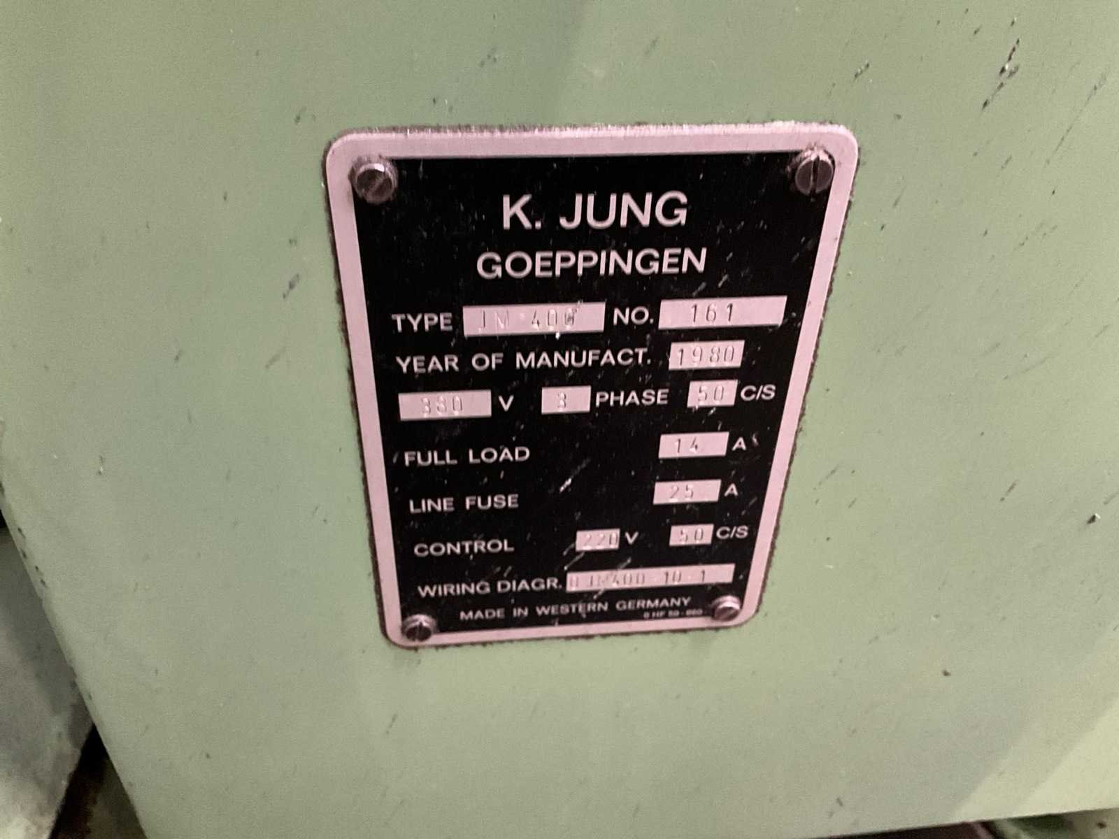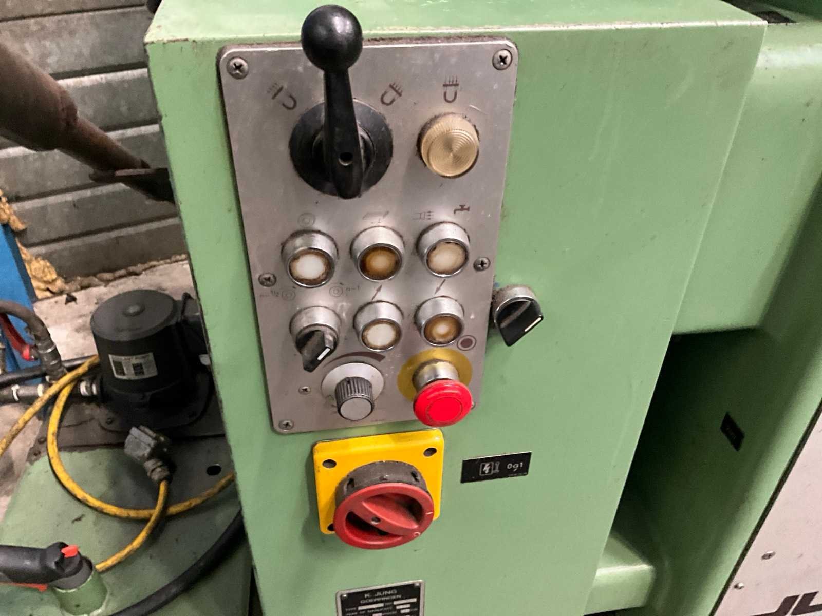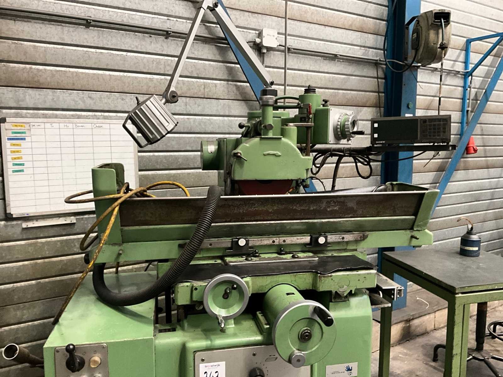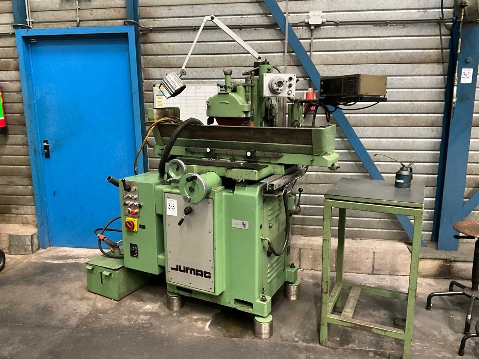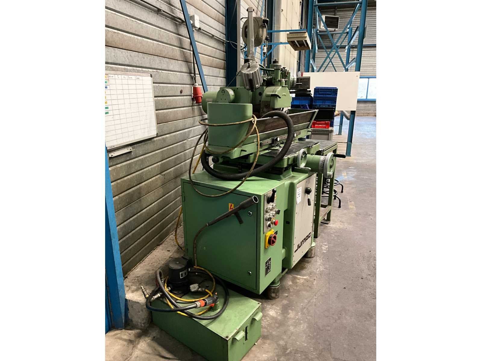 Voorzien van digitale aflezing, magnetische tafel, Merk: Jung / Jumac Type: JM400 Bouwjaar: 1980 Serienummer: 161 Tafel afmeting l: 400mm Tafel afmeting b: 150mm Slijpsteen Ø: 225mm Slijpsteen dikte: 15mm Aansluiting: 400V Afmeting l: 1100mm Afmeting b: 1900mm Afmeting h: 2000mm