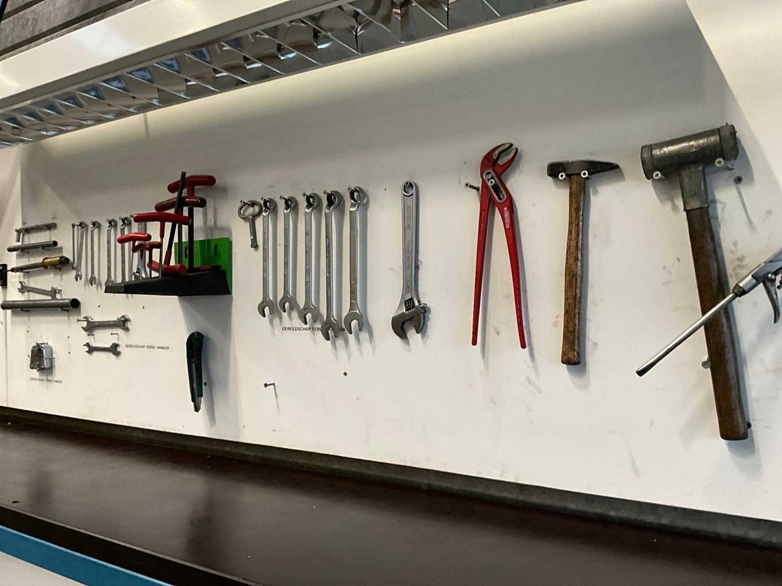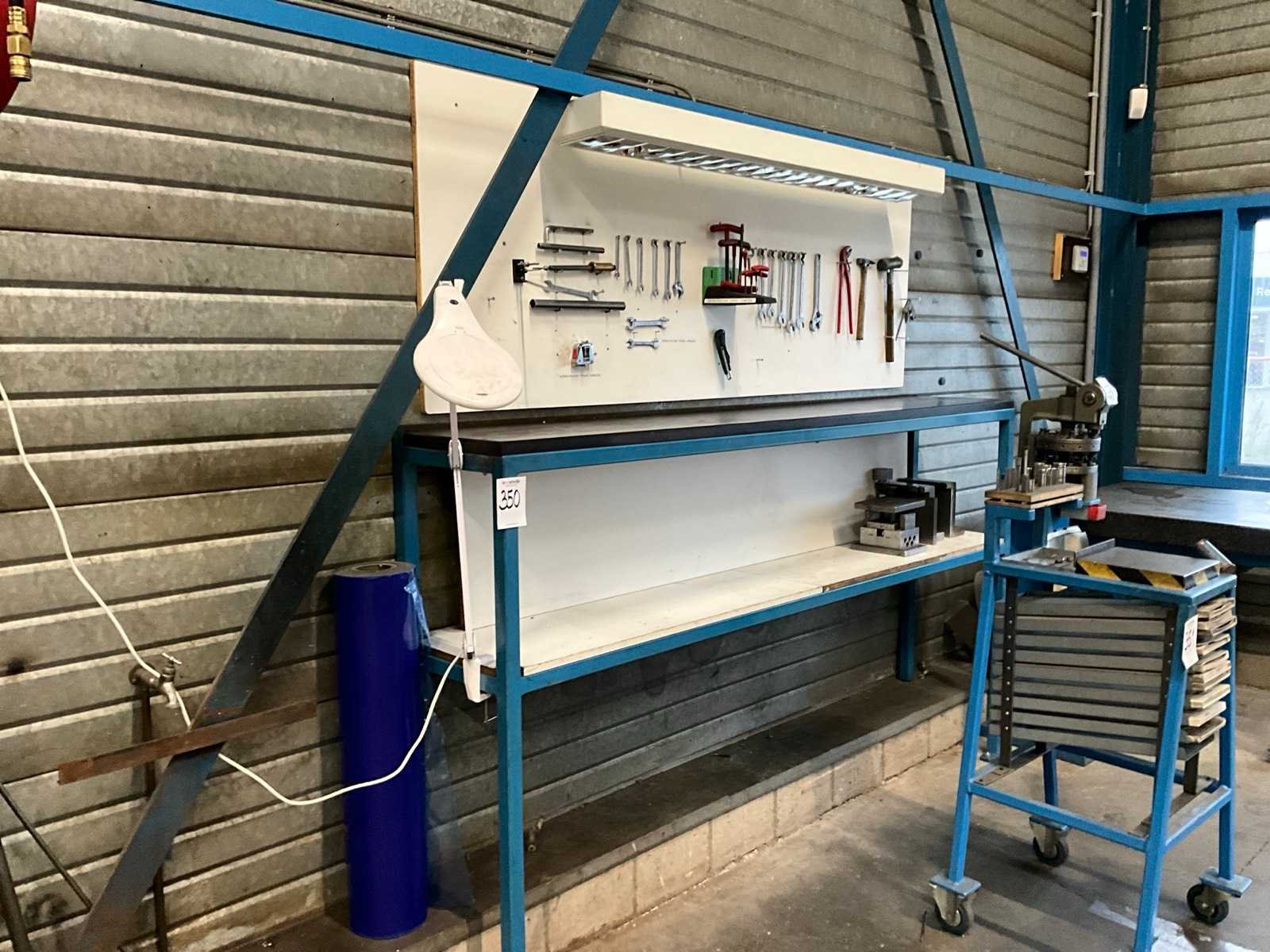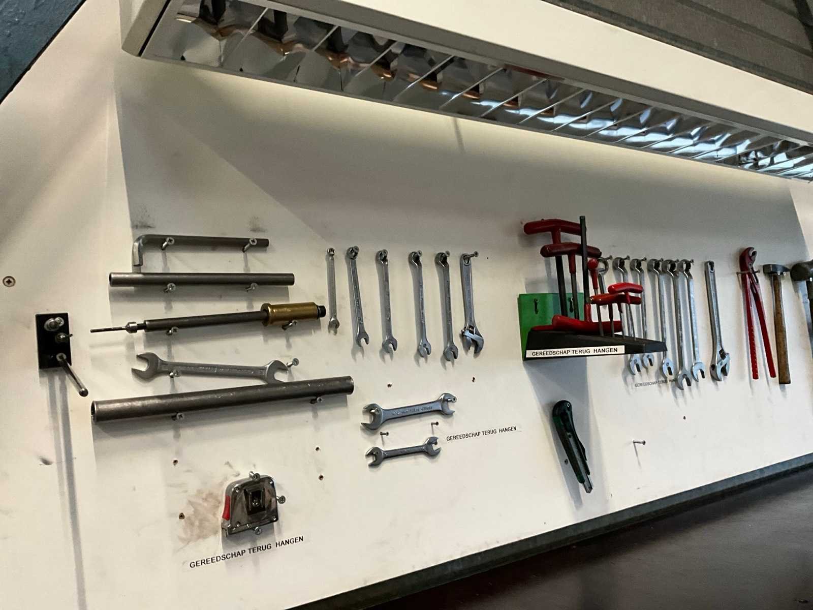 Voorzien van gereedschap + gereedschapsbord, bureau lamp, Let op! ongelijke staanders/poten Breedte: 2260mm Lengte: 430mm Hoogte: 1300mm