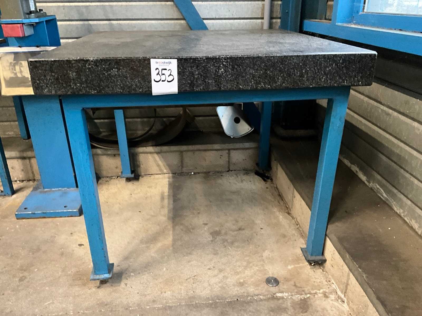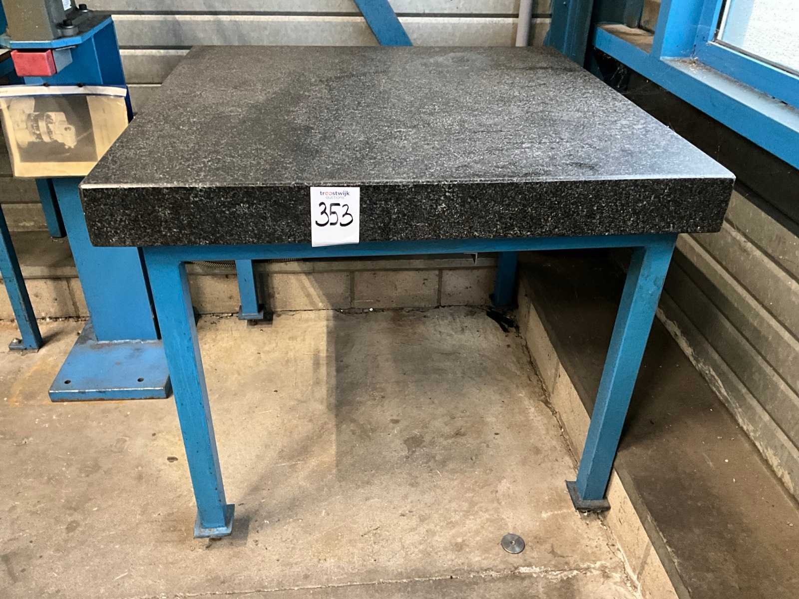 Tafel dikte 100 mm, Graniet: true Staal: true Tafel afmeting l: 1000mm Tafel afmeting b: 1000mm Totale afmeting Hoogte: 870mm