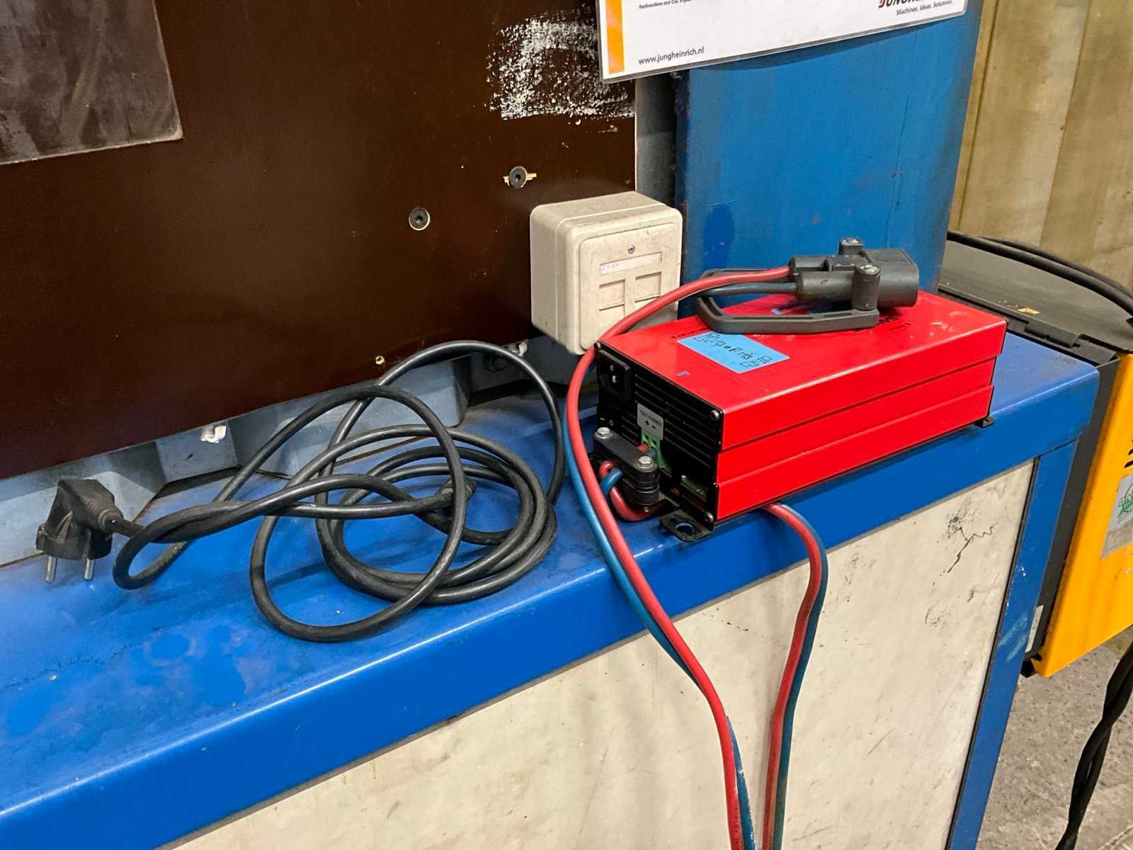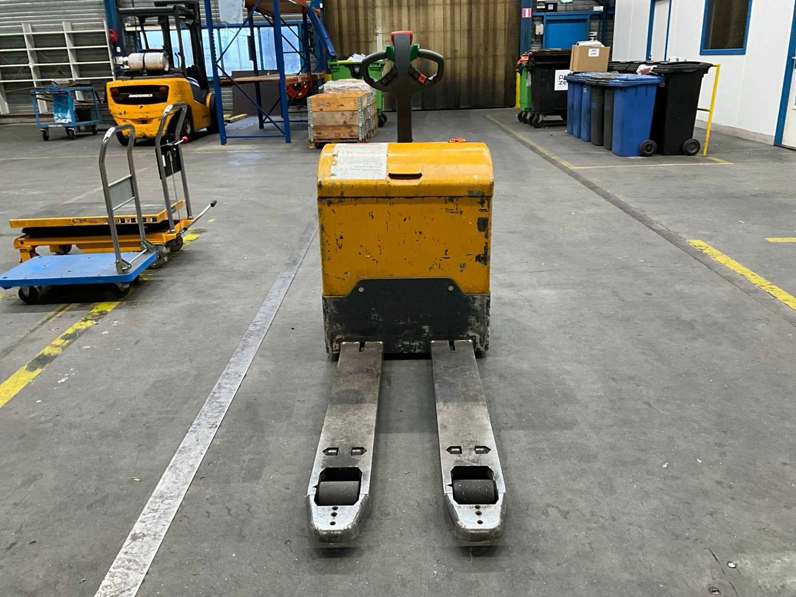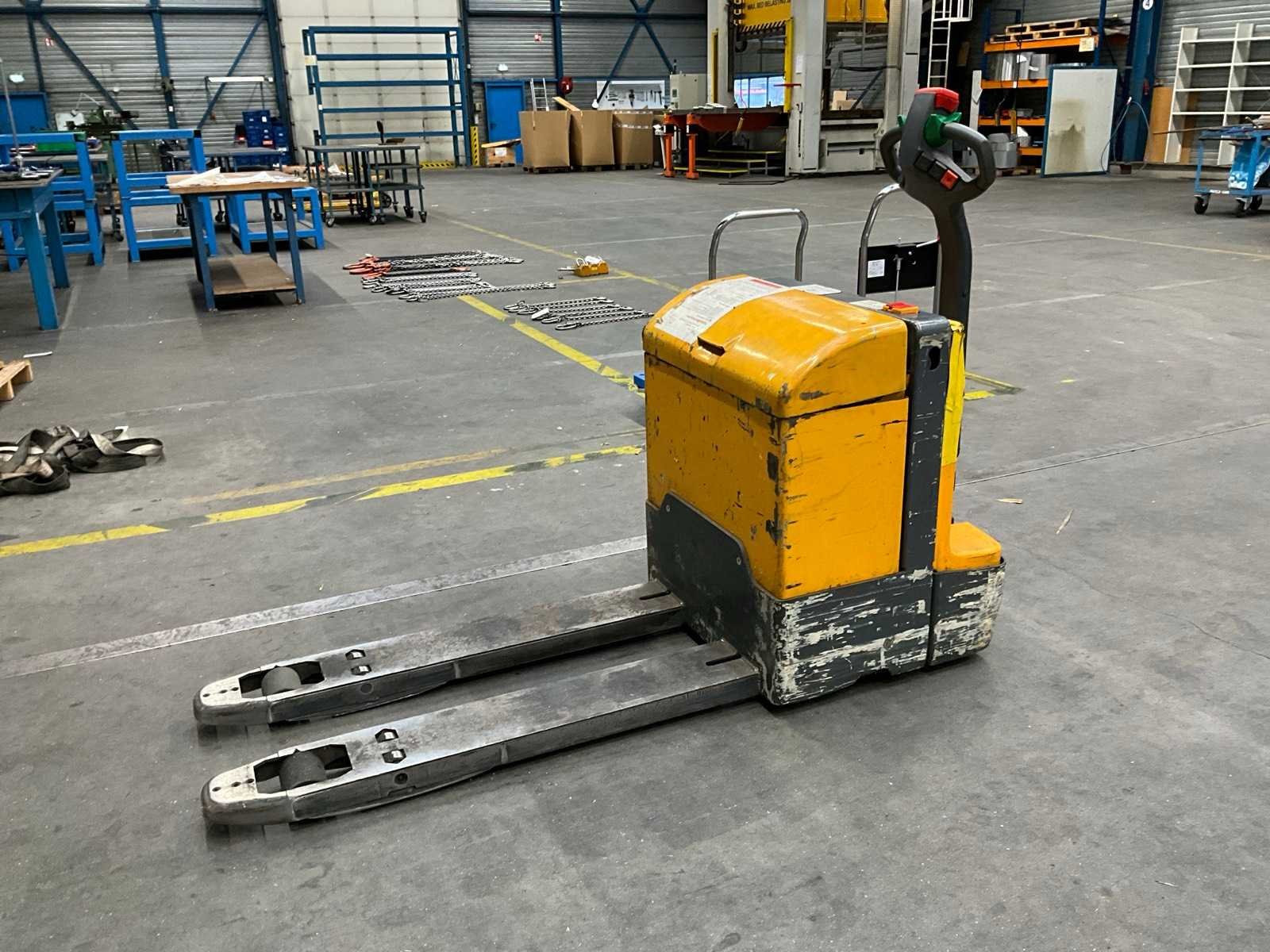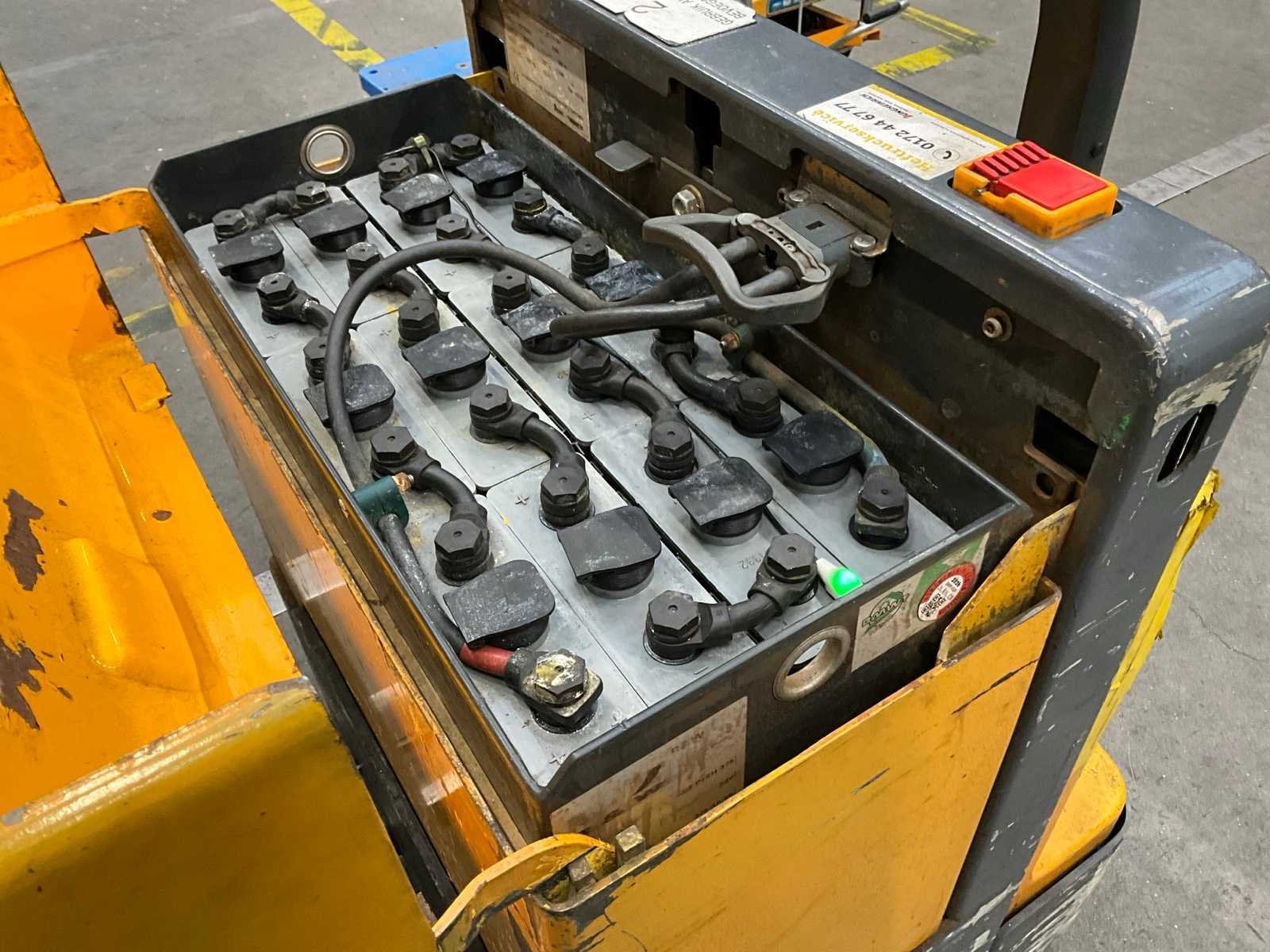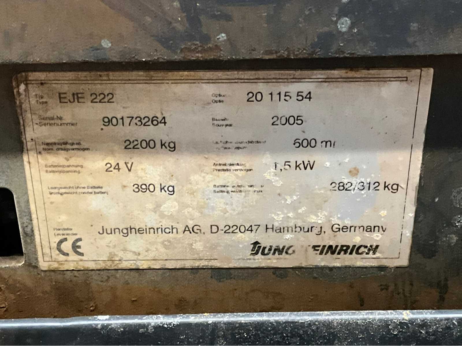 Inclusief acculader 230 Volt; batterijgewicht circa 315 kg; Merk: Jungheinrich Type: EJE222 Bouwjaar: 2005 Serienummer: 90173264 Hefvermogen: 2200kg Lepellengte: 1150mm Accu lader: true Afgelezen urenstand: 1591 Eigen gewicht: 390kg Totale afmeting L: 1900mm Totale afmeting Breedte: 750mm Totale afmeting Hoogte: 1350mm