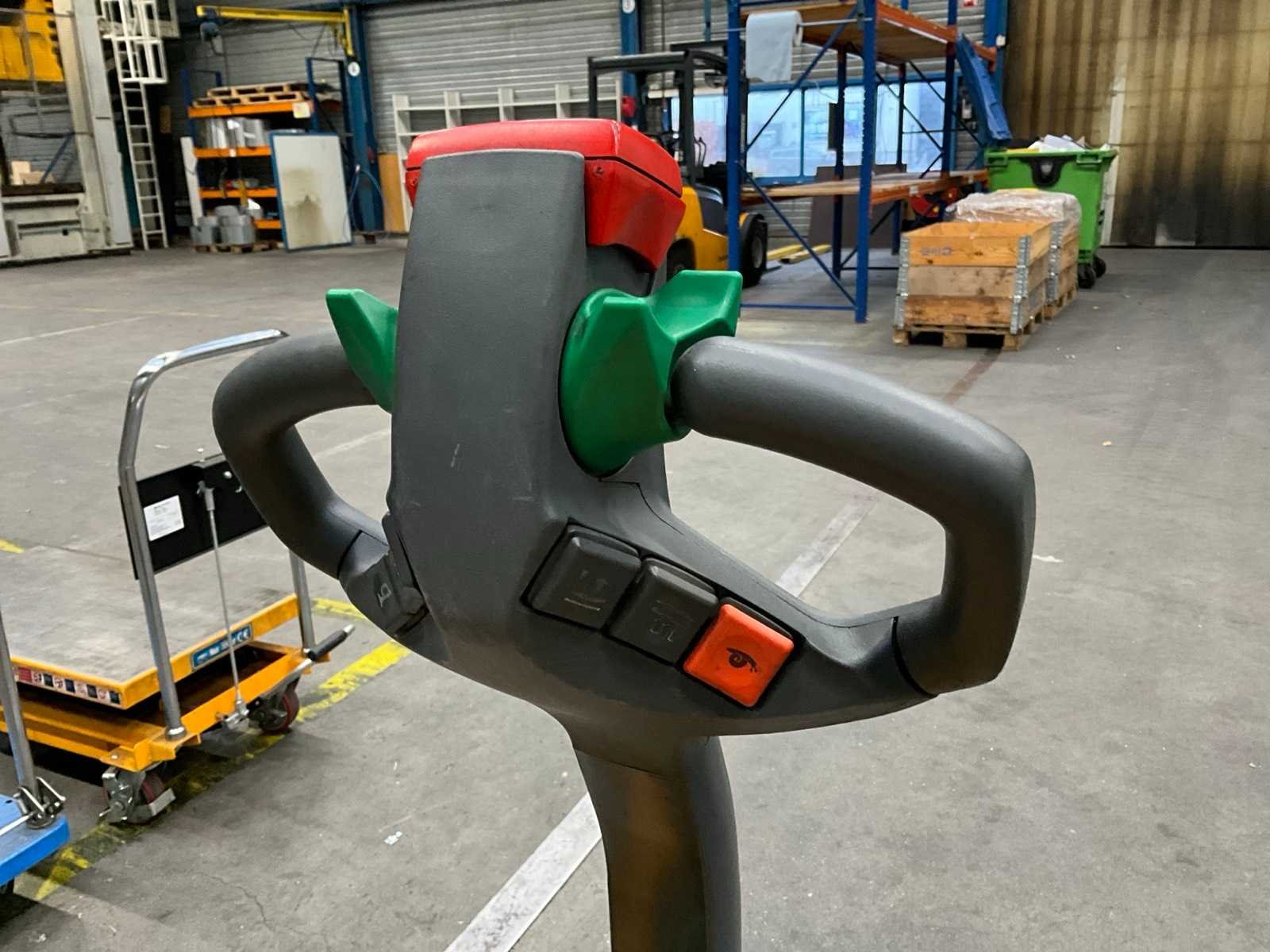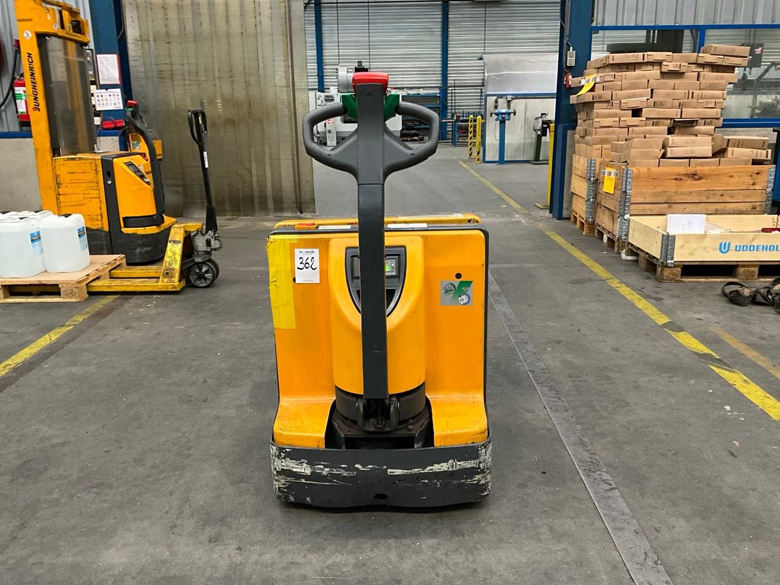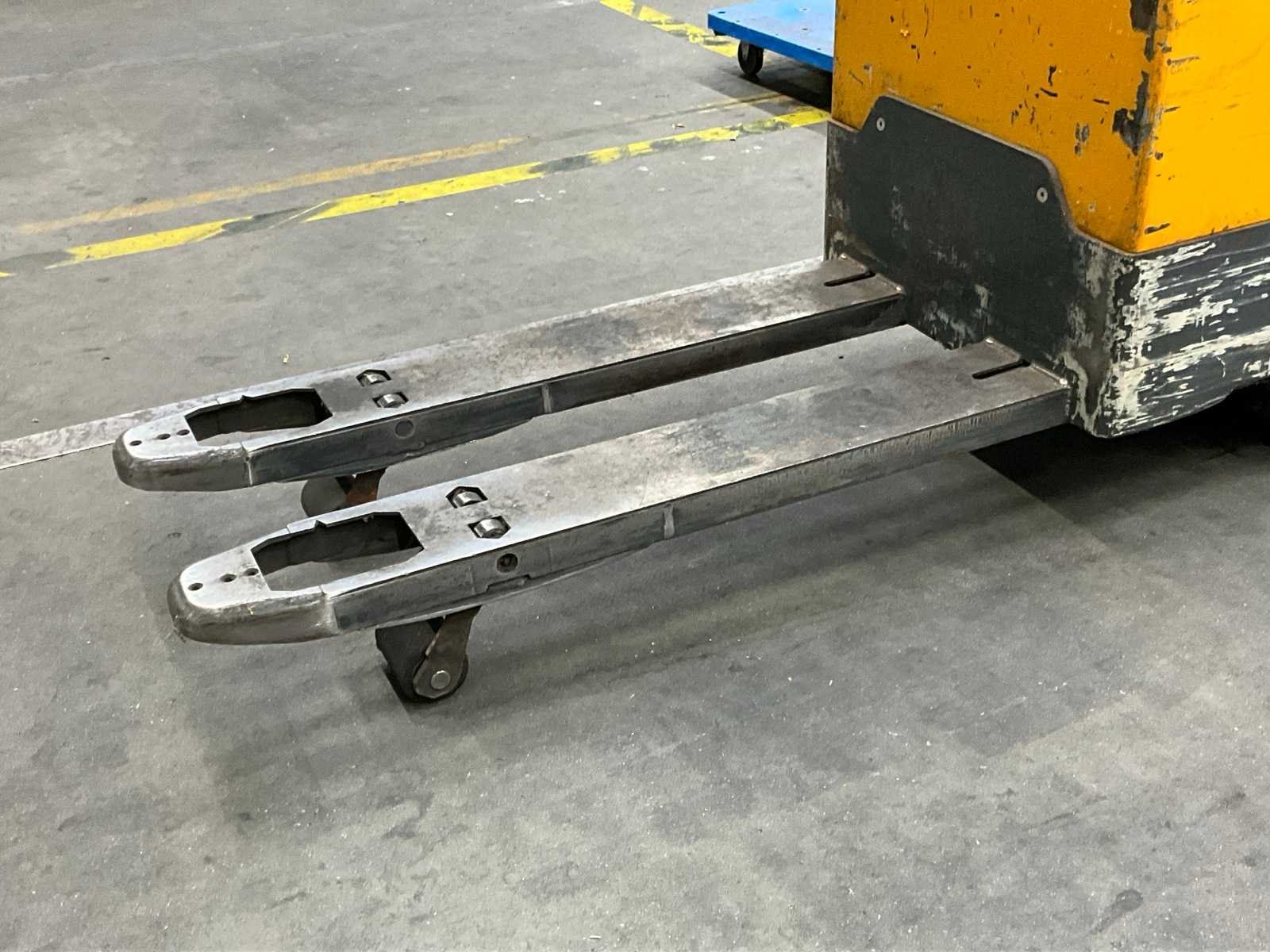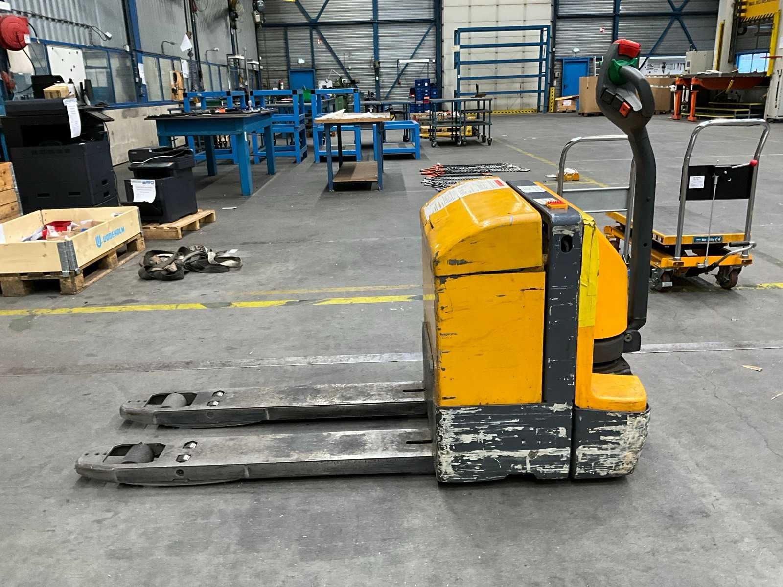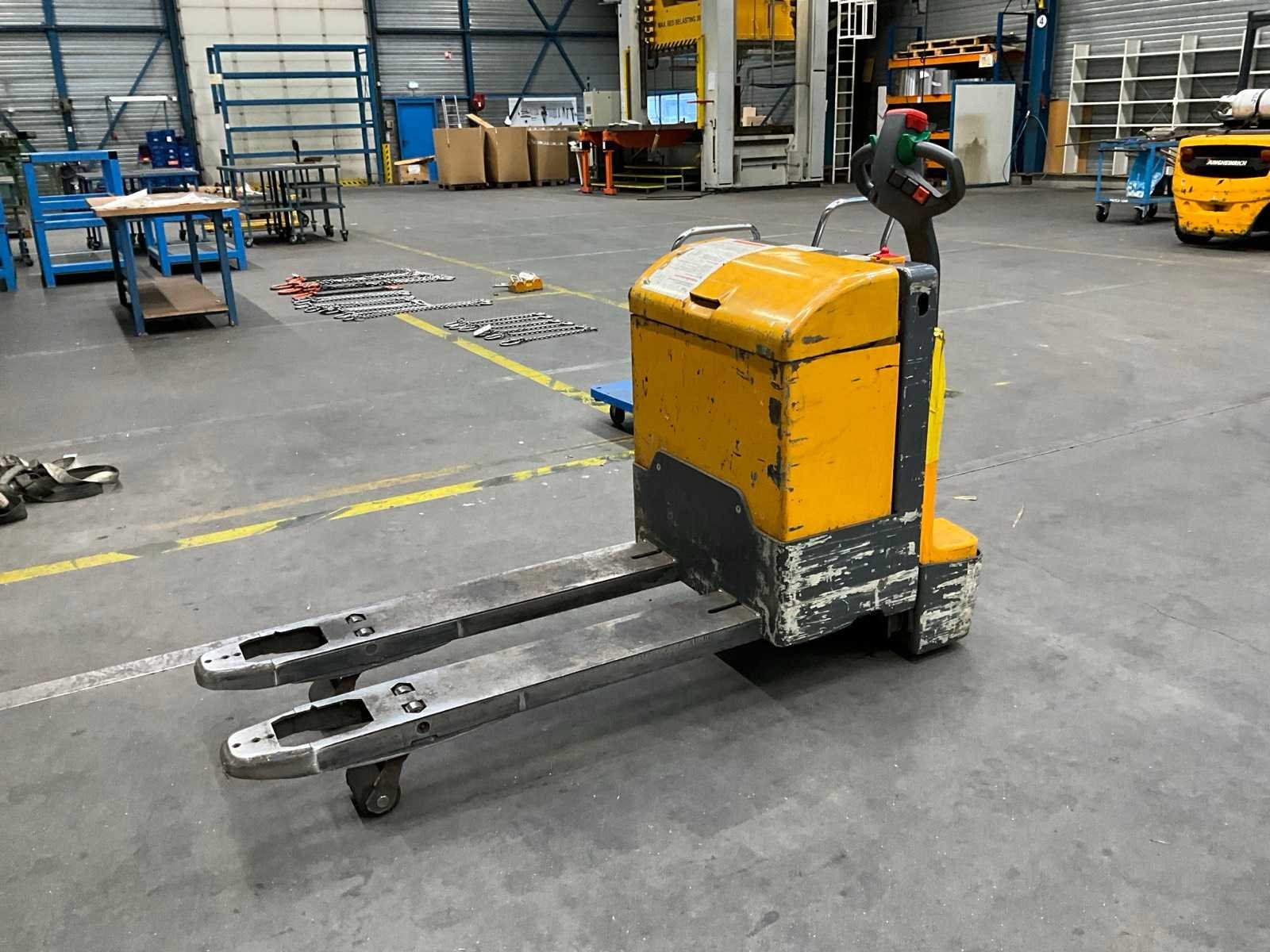 Inclusief acculader 230 Volt; batterijgewicht circa 315 kg; Merk: Jungheinrich Type: EJE222 Bouwjaar: 2005 Serienummer: 90173264 Hefvermogen: 2200kg Lepellengte: 1150mm Accu lader: true Afgelezen urenstand: 1591 Eigen gewicht: 390kg Totale afmeting L: 1900mm Totale afmeting Breedte: 750mm Totale afmeting Hoogte: 1350mm