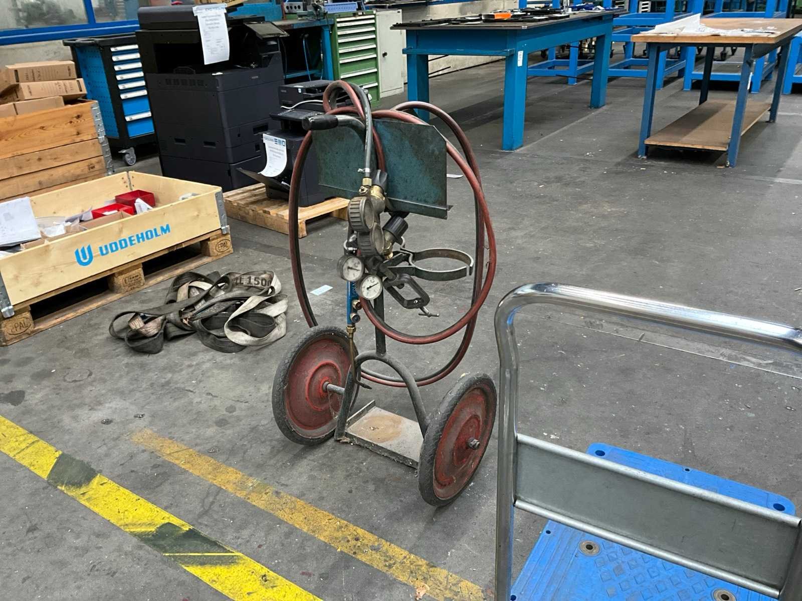 Staal; volrubber banden; voor 2 gascilinders; inclusief 2x gasdruk regelaar; gasleiding; 1x snijbranderset;