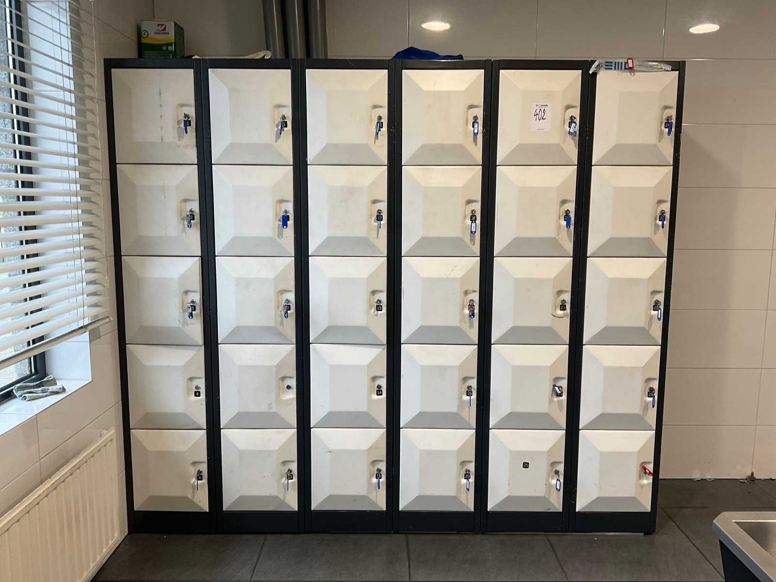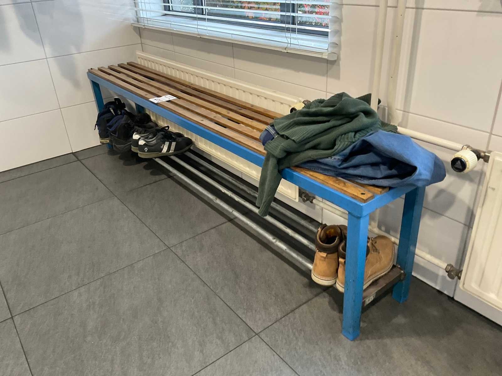 Inclusief 2 banken en 2 kladjnghangers; inclusief werkkleding. Lengte: 37cm Hoogte: 195cm Materiaal: Staal Diepte: 56cm