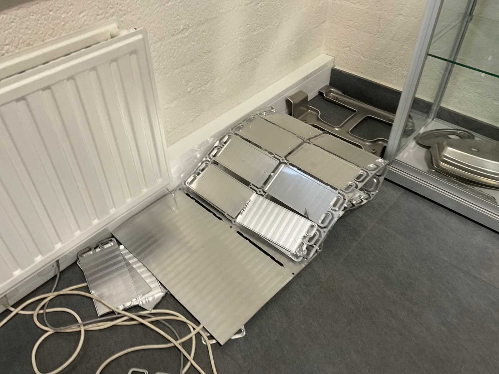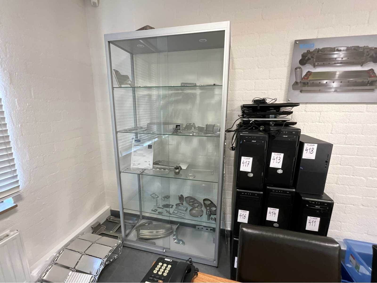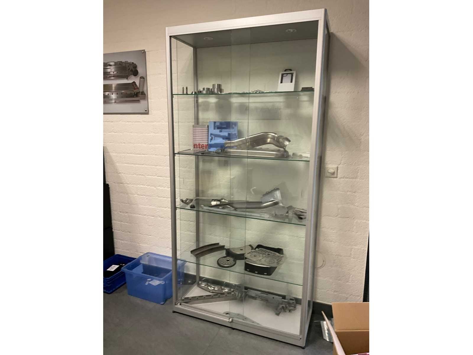 Bestaande uit: (1x) tafel 180x90cm, (6x) Eetkamerstoelen, (2x) vitrinekasten met inhoud (100x40x202cm), (1x) kunstplant