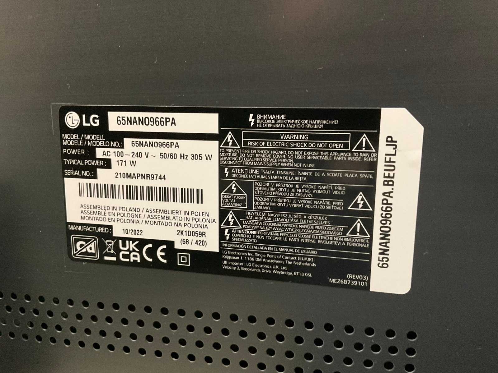Voorzien van: camera, microfoon, onderstel en afstandsbediening. Let op! 1e etage Merk: LG Model: 8K Ultra HD Type: 65NANO966PA Beelddiagonaal: 65'' HDMI: 3 Smart TV: true Kleur: Zwart
