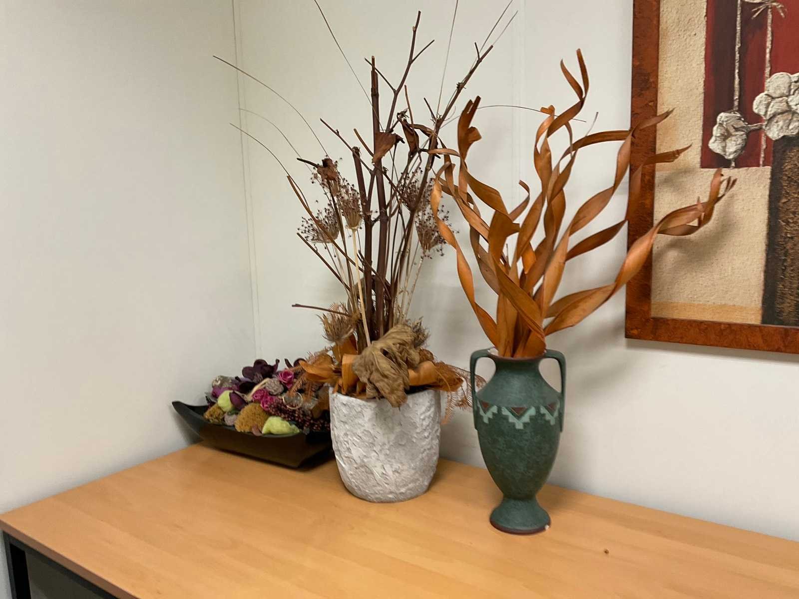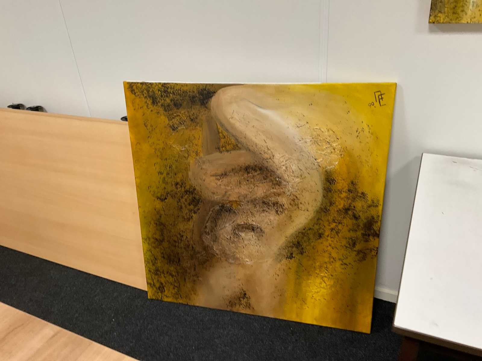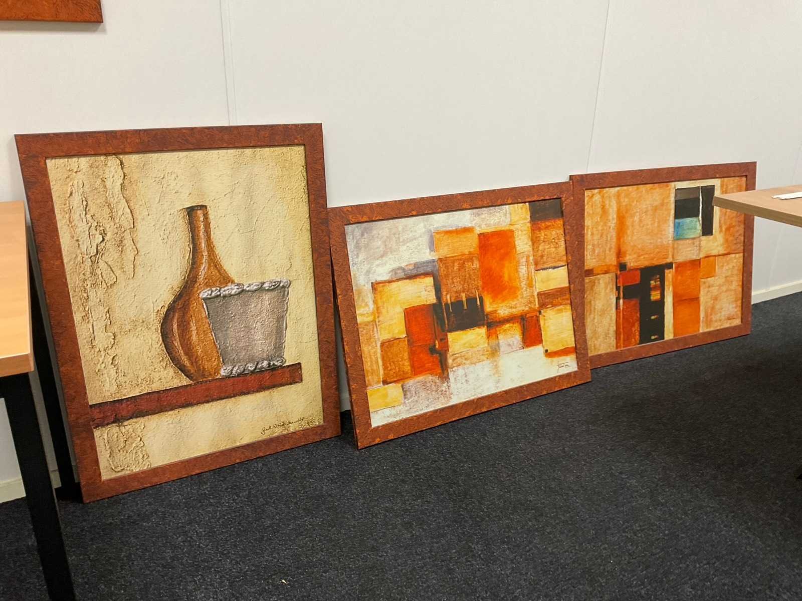 Bestaande uit: (1x) vergadertafel 160x160cm, (3x) tafel, (2x) mobiele bureaustoel, (7x) wanddecoratie, (2x) bureautafel (gedemonteerd), etc. Let op! 1e etage