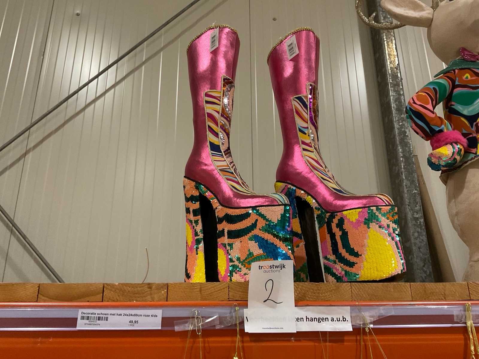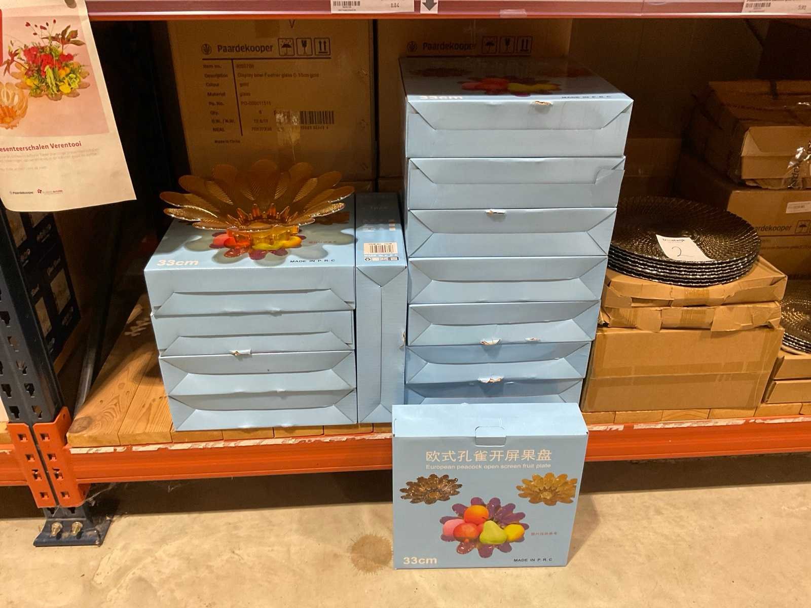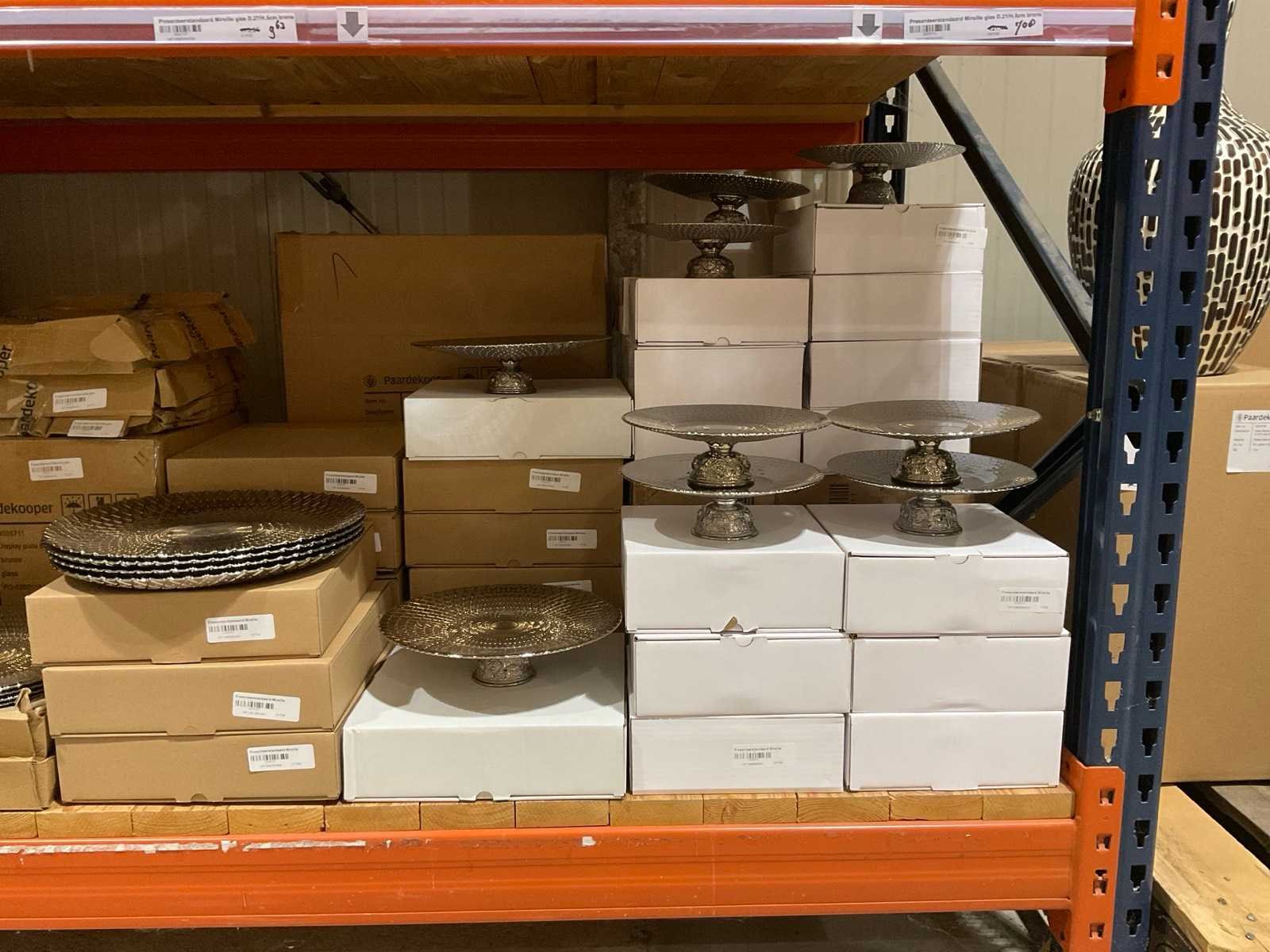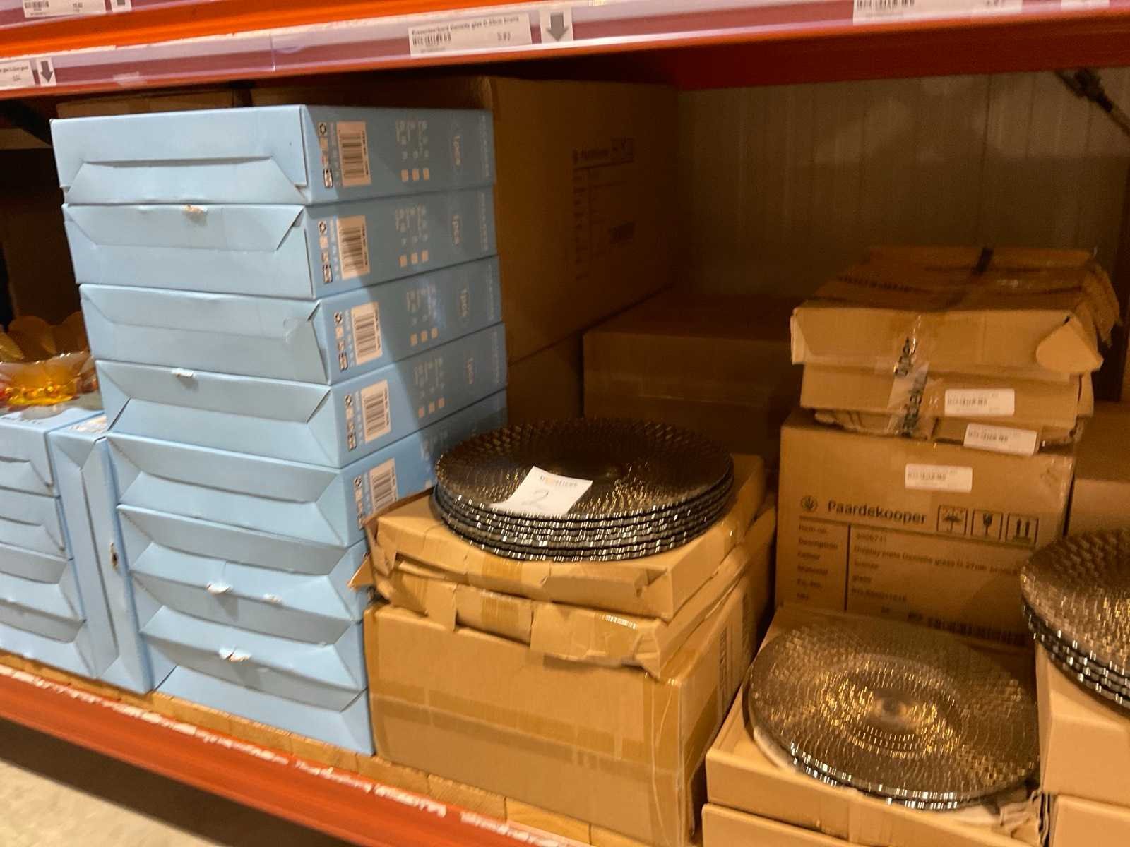 Inhoud 3 stellingsecties met diverse seizoens en decoratie artikelen waaronder poppen, ornamenten, schalen en kommen, sterren, en touw. Exclusief stelling-onderdelen achter gordijn. Exclusief stelling