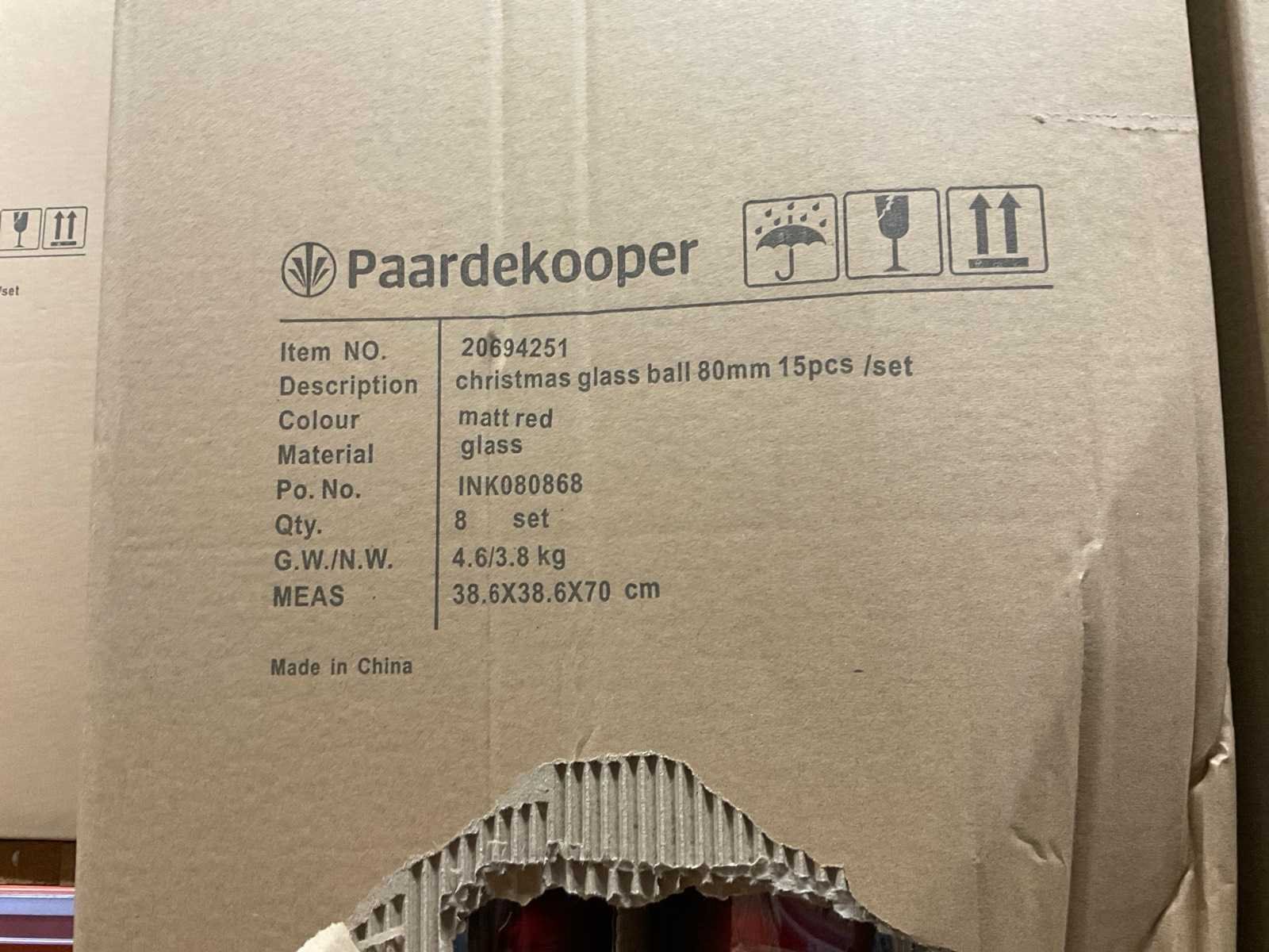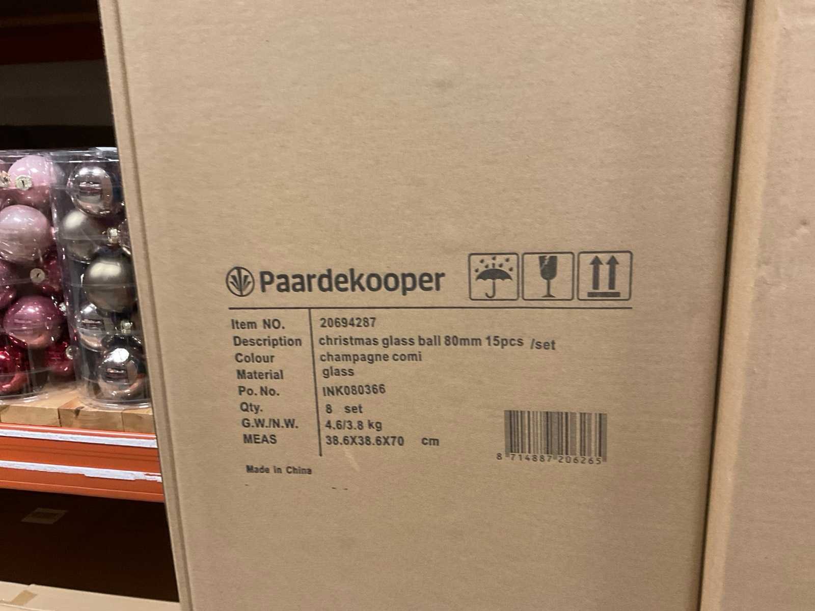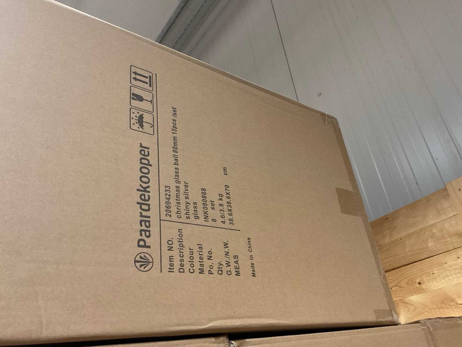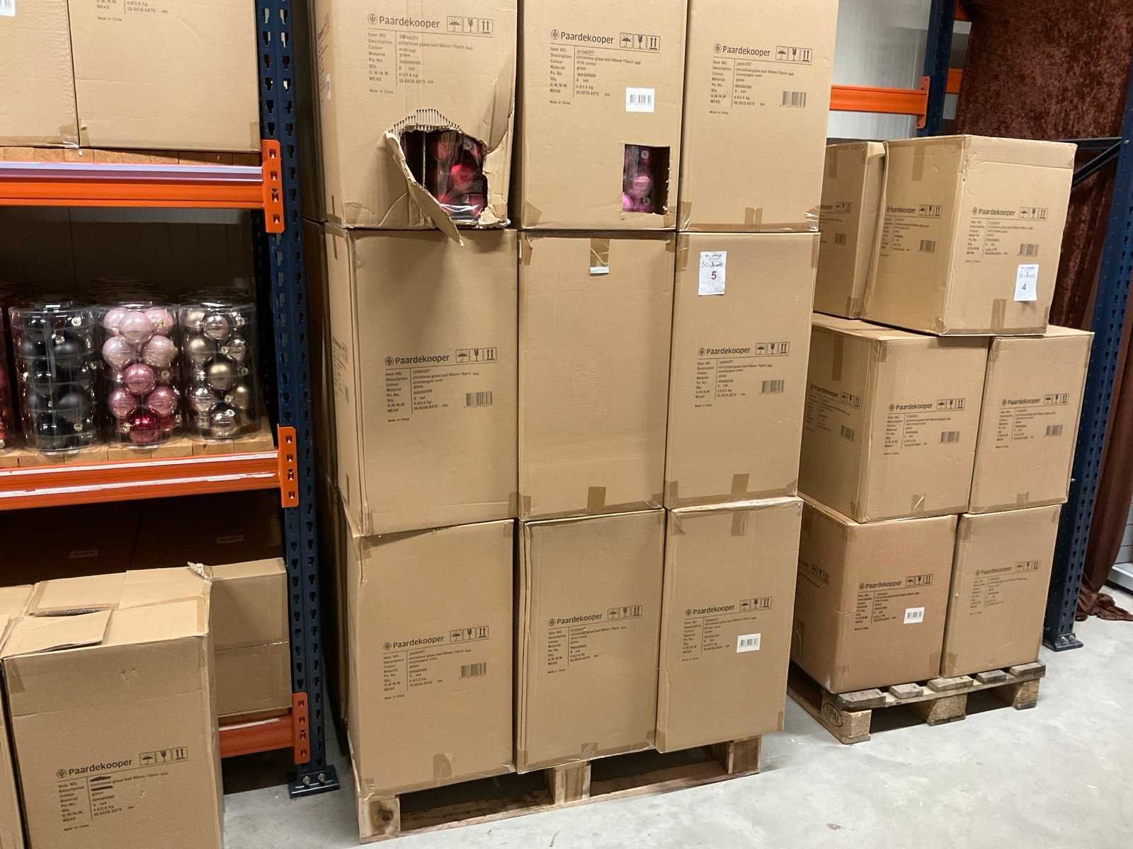 Verschillende soorten/kleuren kerstballen. Bestaat uit circa 30 dozen op 1 pallet