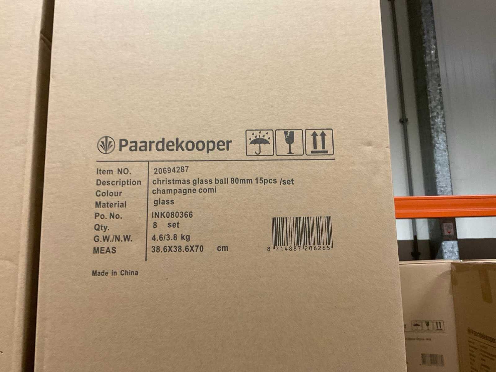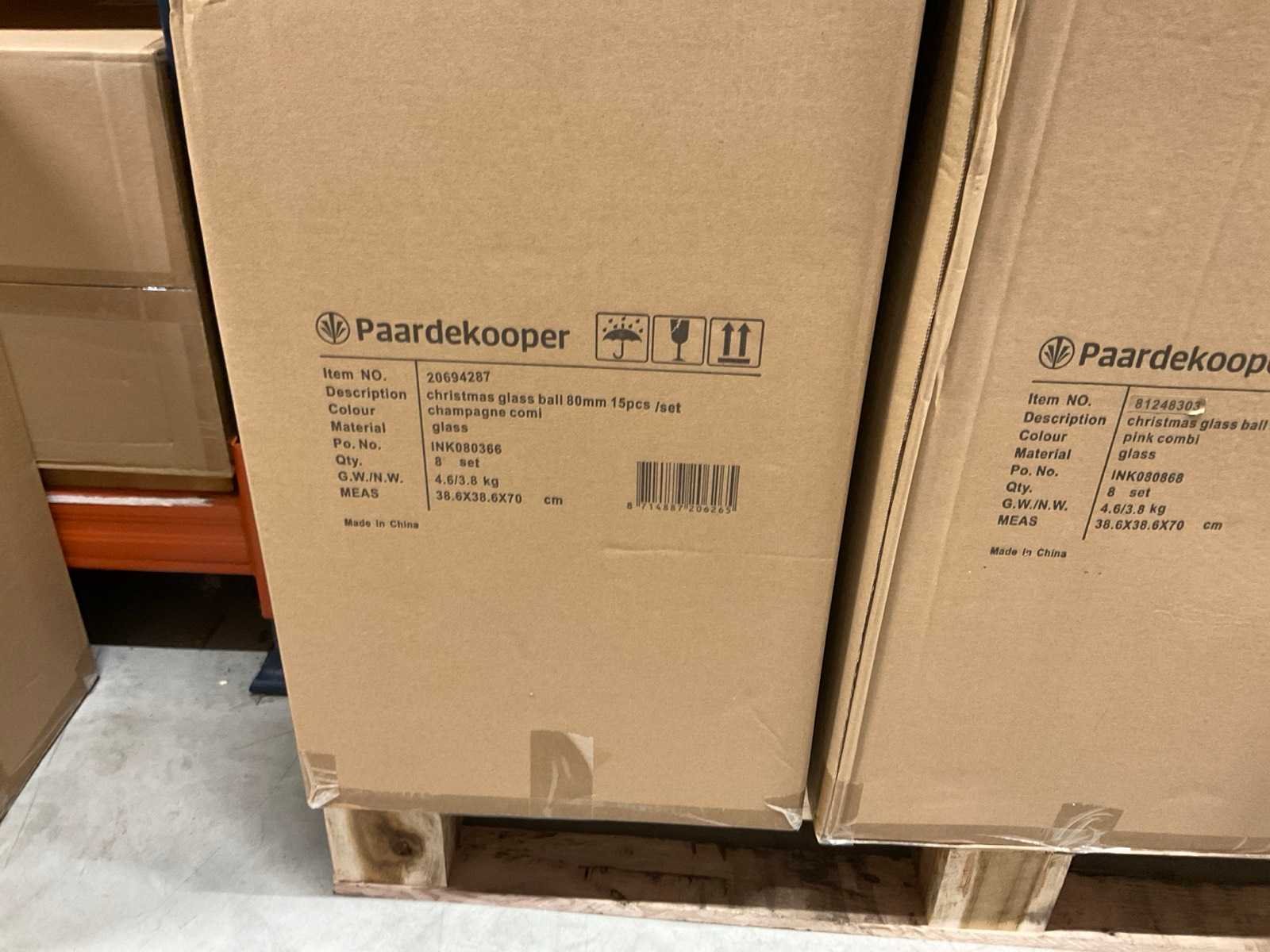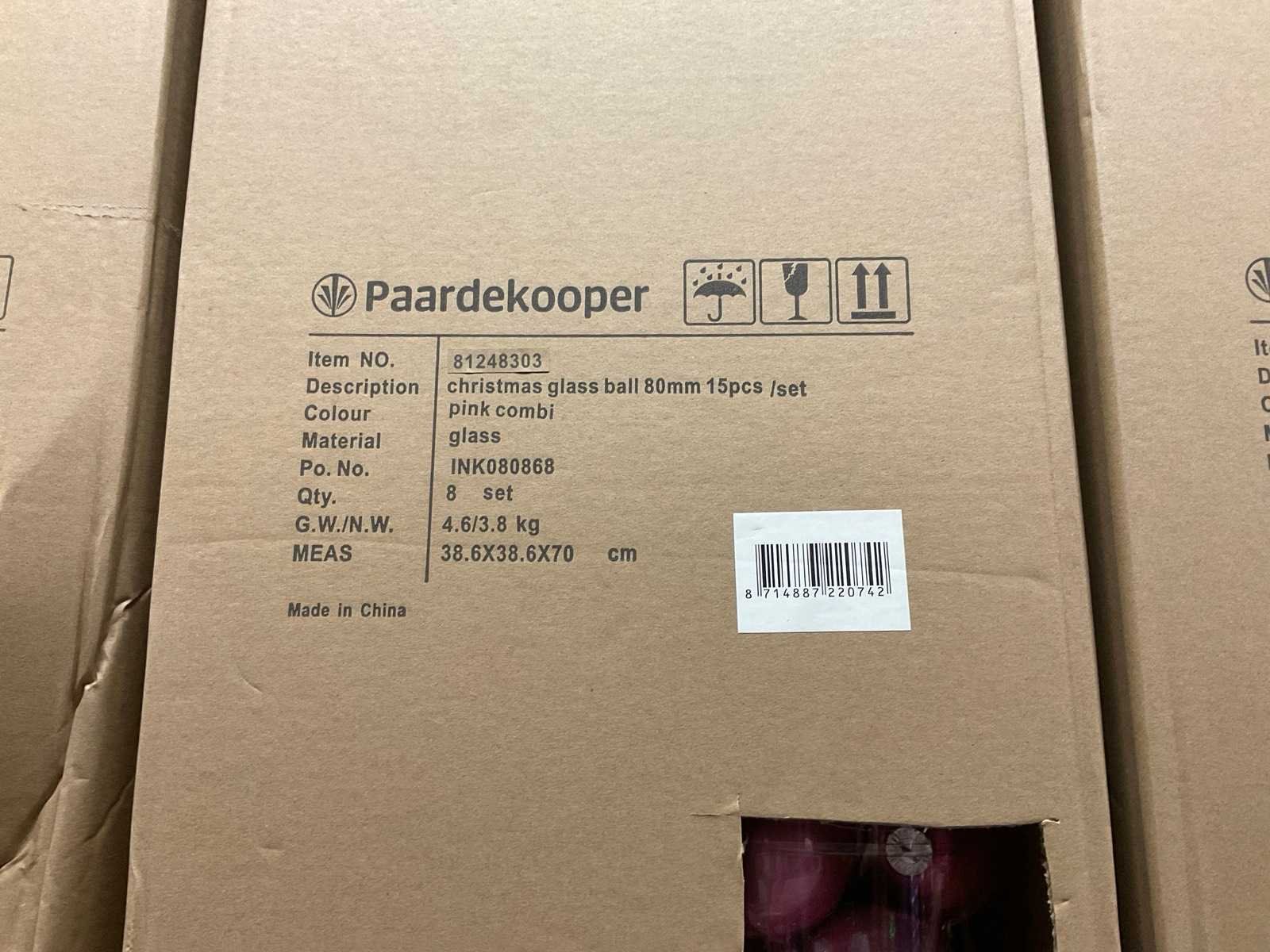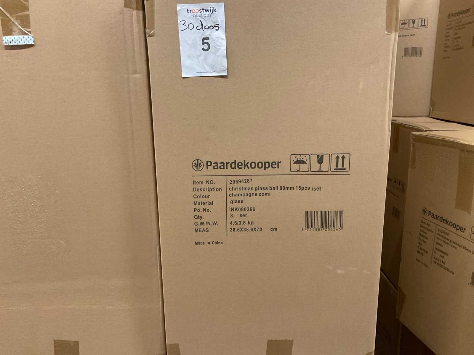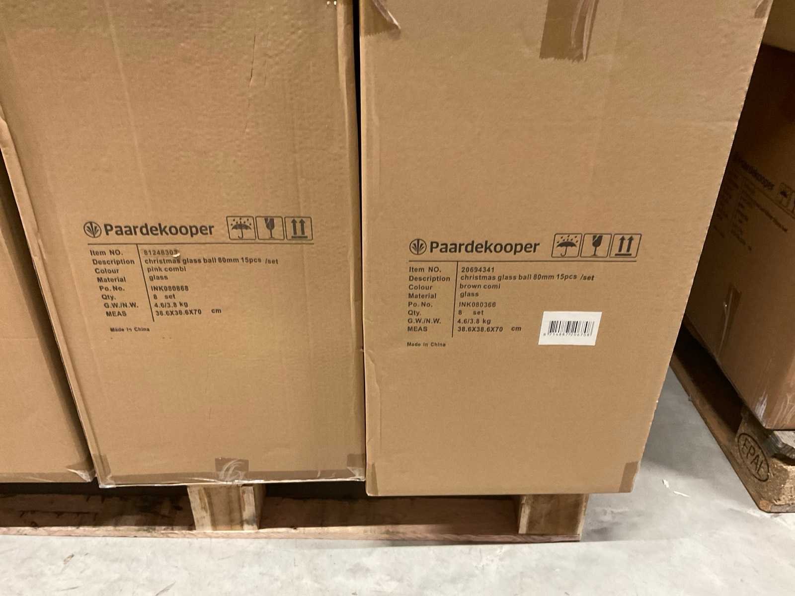 Verschillende soorten/kleuren kerstballen. Bestaat uit circa 30 dozen op 1 pallet