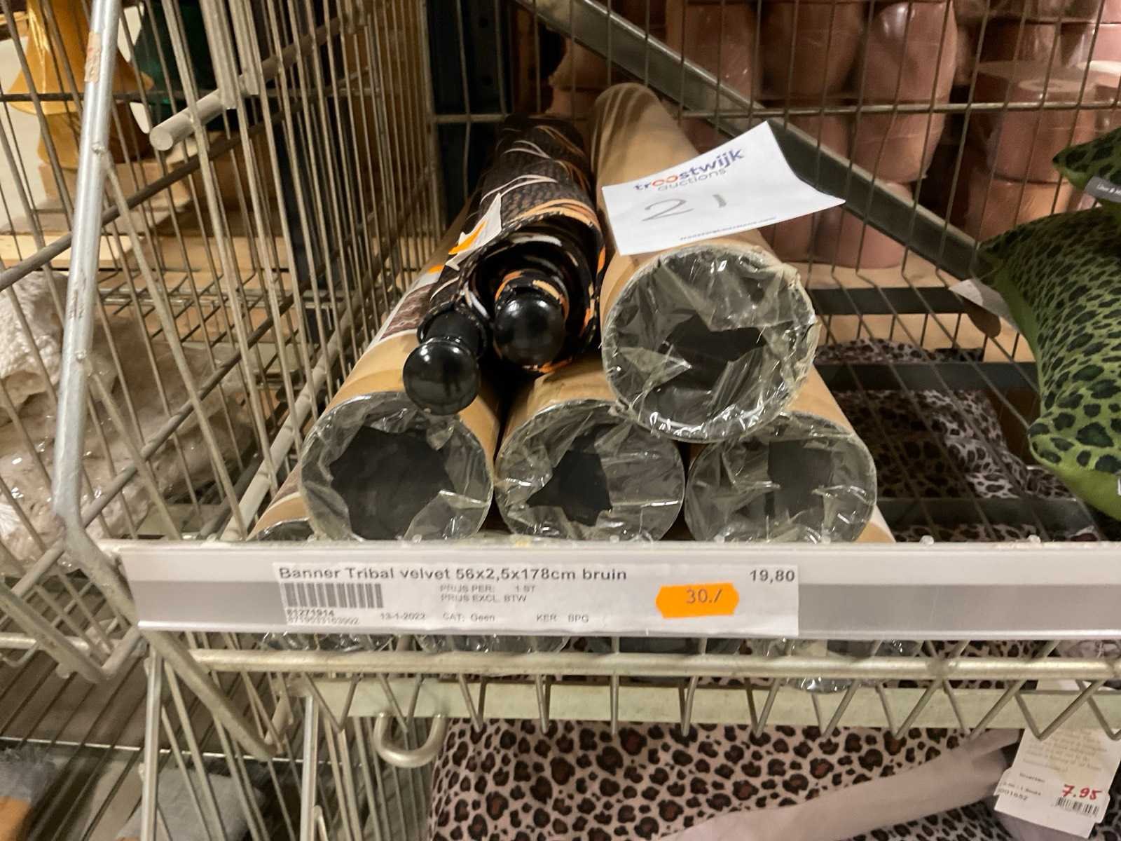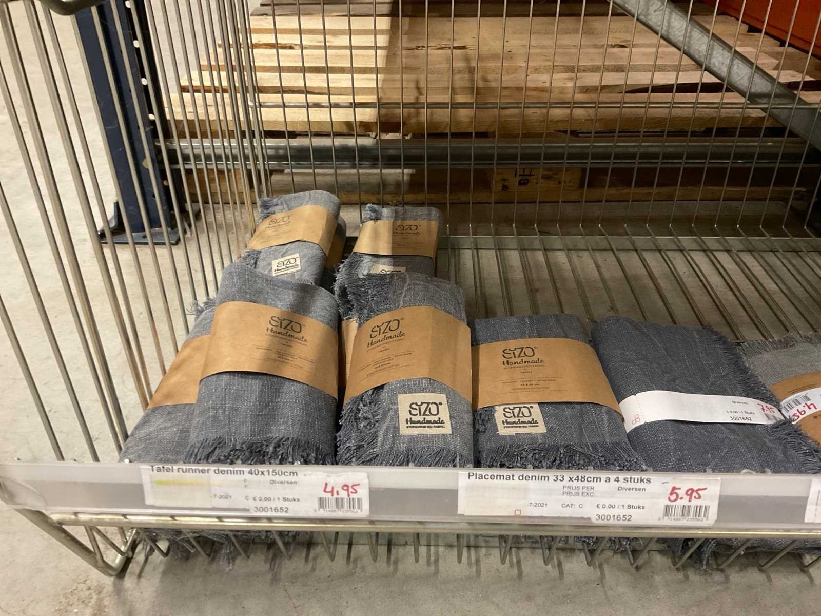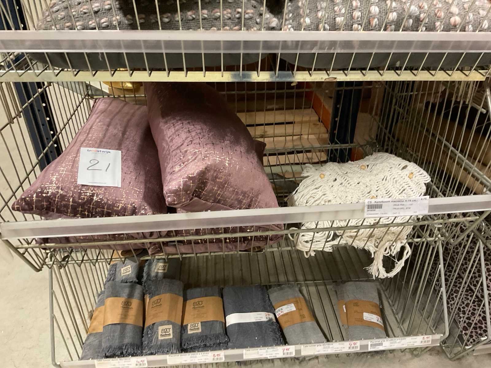 Verschillende kussens, banners, tafel runners en placemats. Inclusief rekken