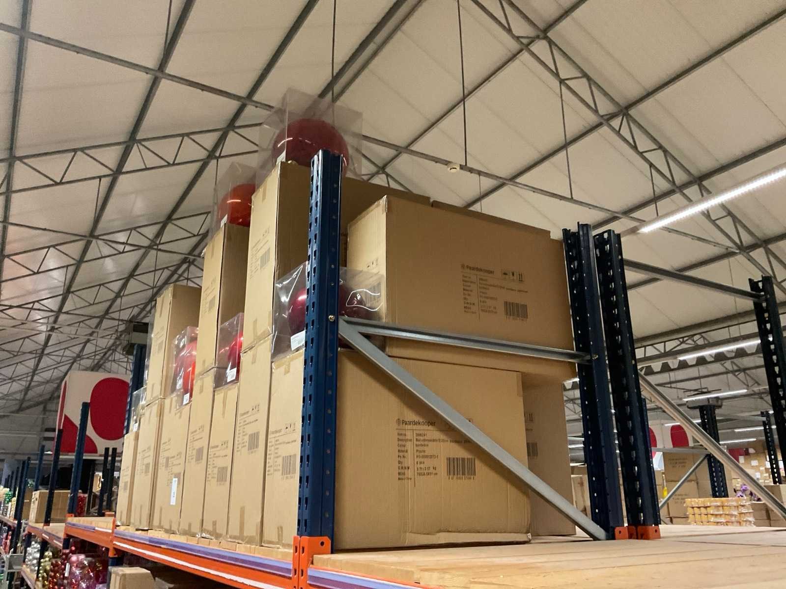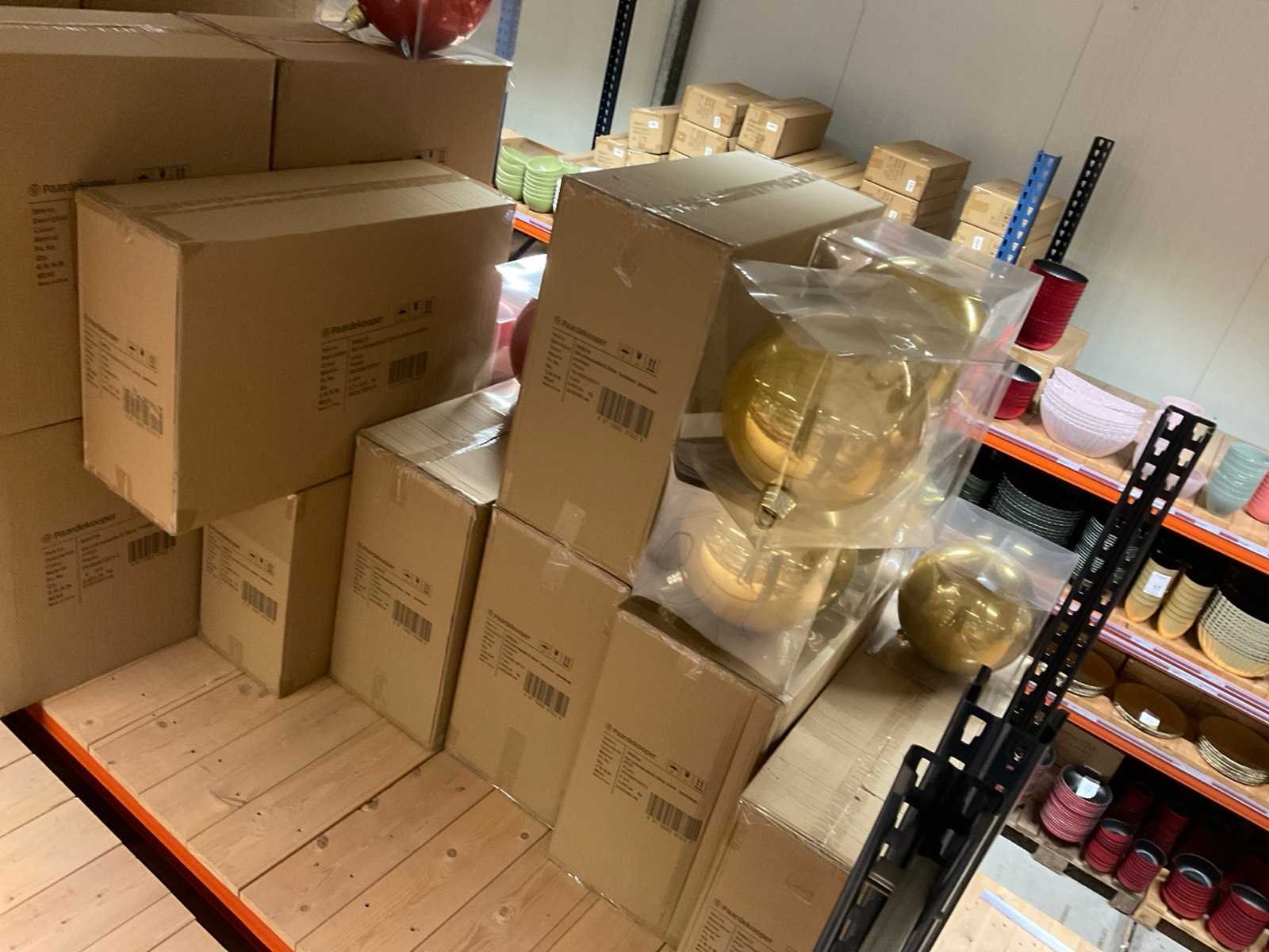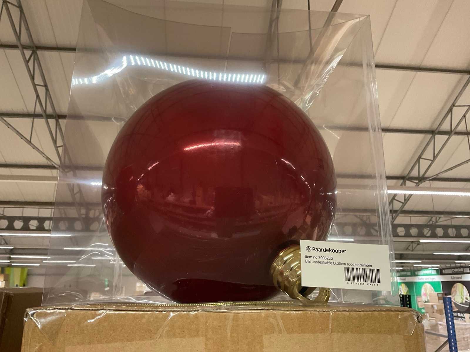 Verschillende soorten/kleuren kerstballen. Bestaat uit inhoud bovenste legplank van 1 stelling-sectie.
