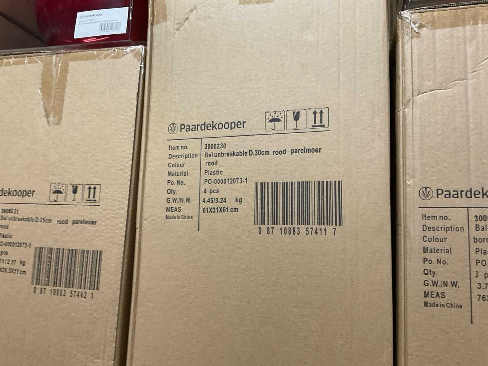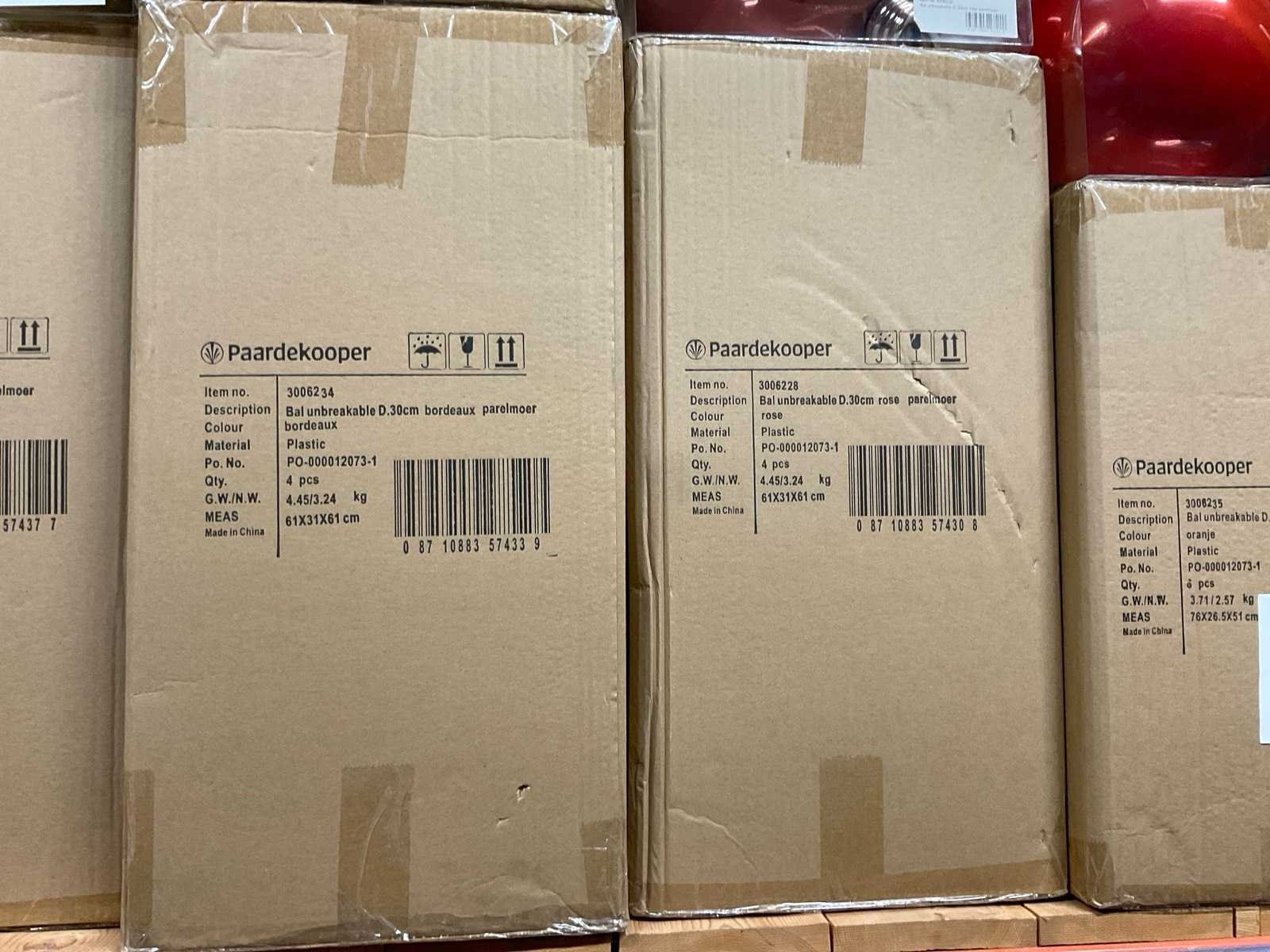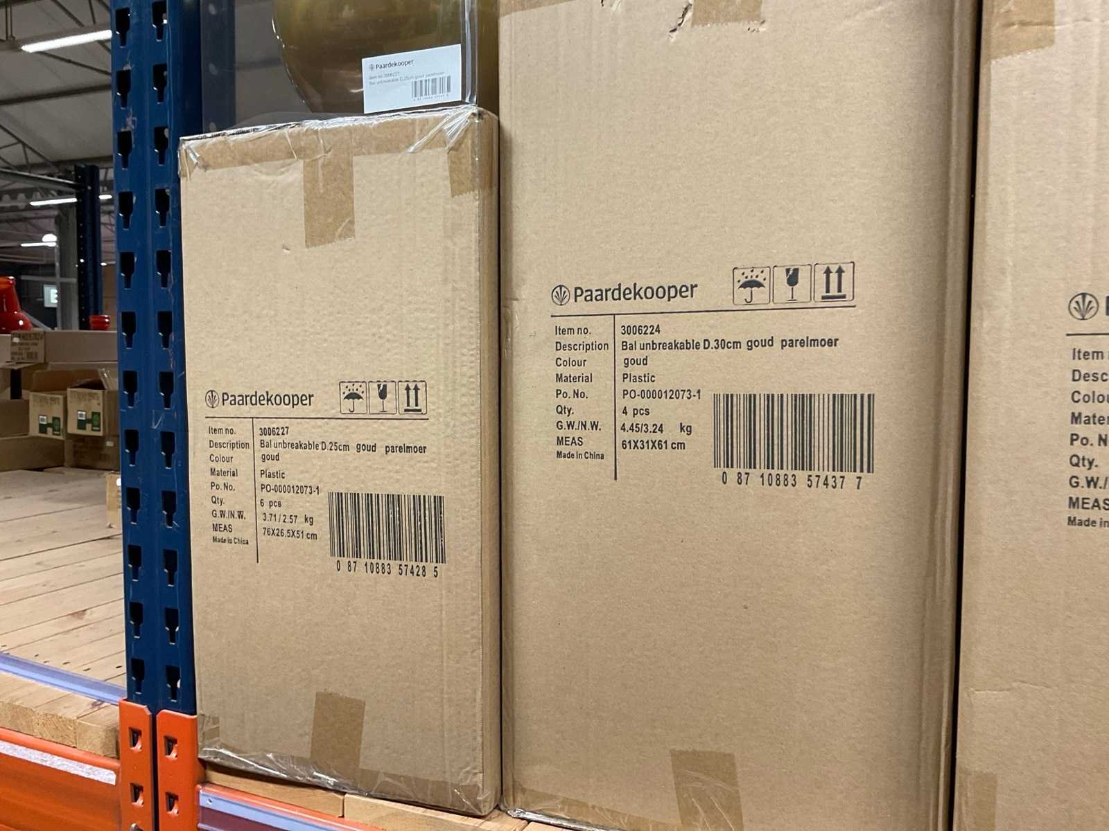 Verschillende soorten/kleuren kerstballen. Bestaat uit inhoud bovenste legplank van 1 stelling-sectie.