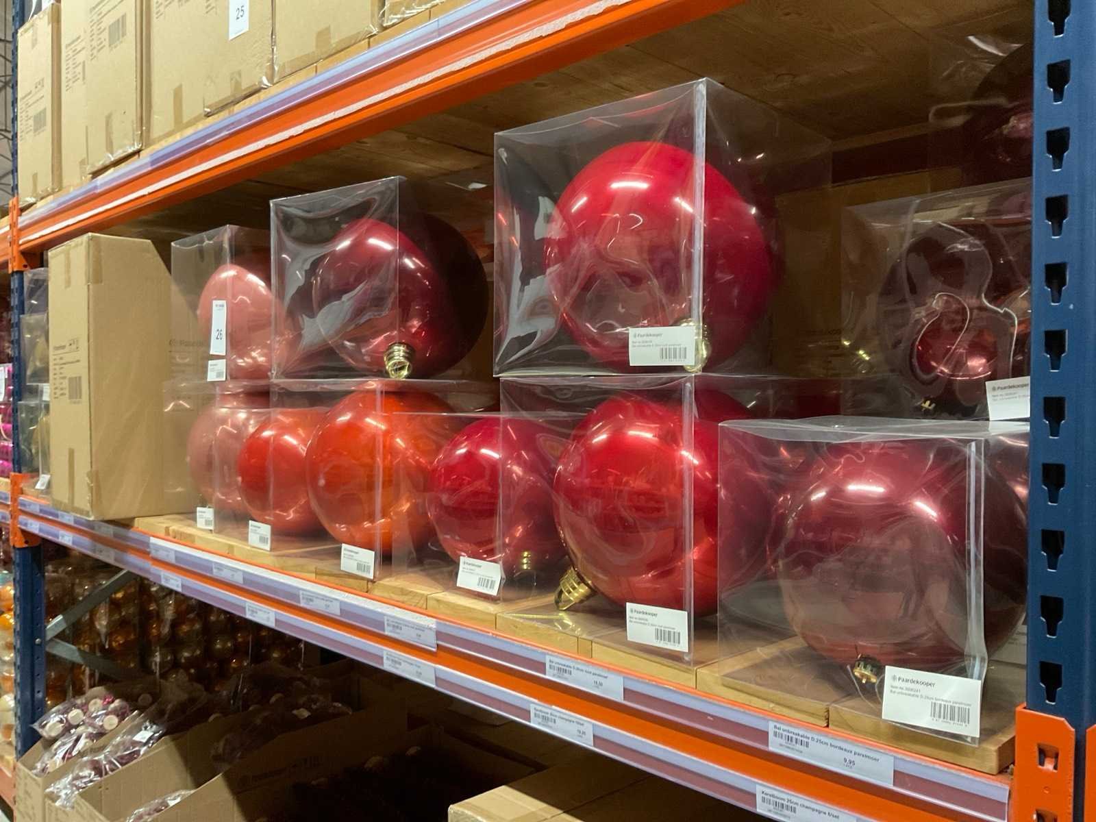 Verschillende soorten/kleuren kerstballen. Bestaat uit inhoud middelste legplank van 1 stelling-sectie