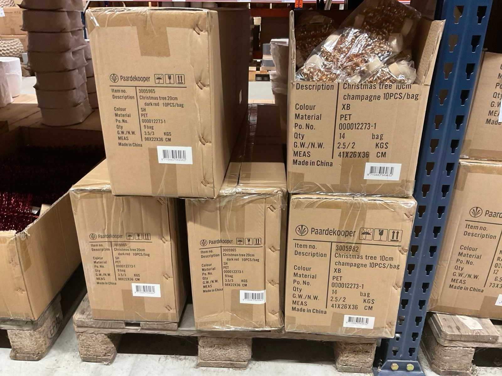 Diverse soorten/kleuren kerstbomen. Bestaat uit 3 pallets met inhoud