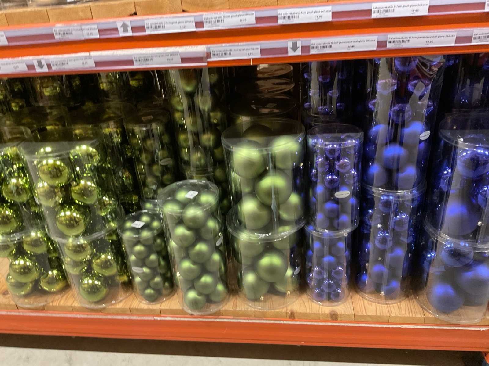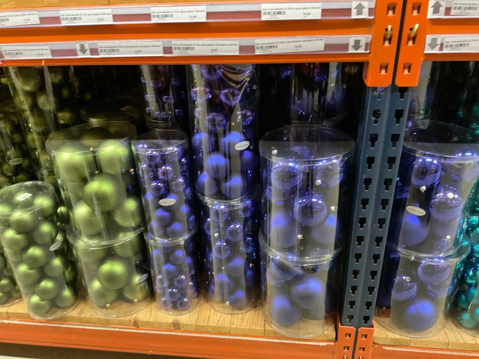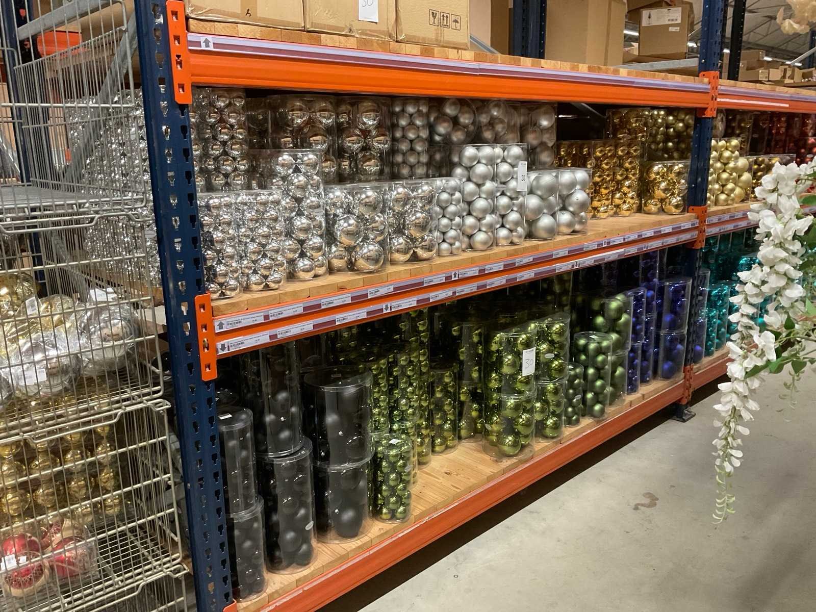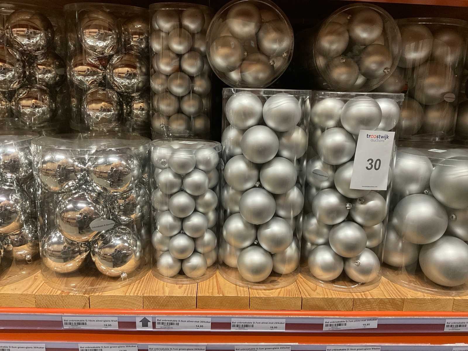 Verschillende soorten/kleuren kerstballen. Bestaat uit inhoud van 1 stelling-sectie. Exclusief stelling