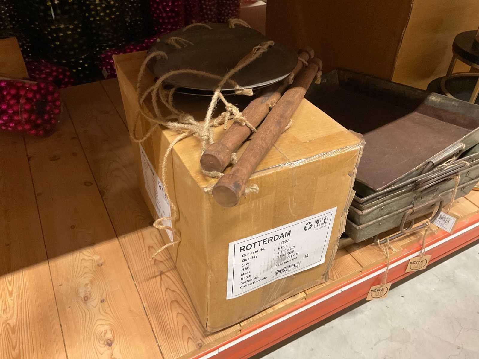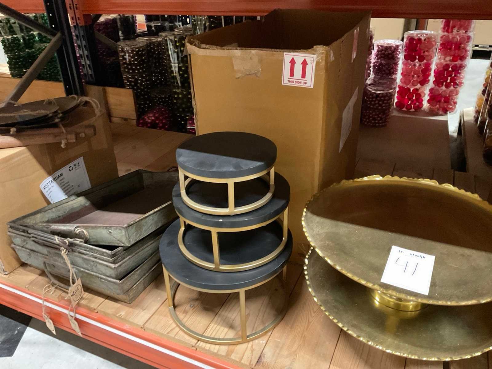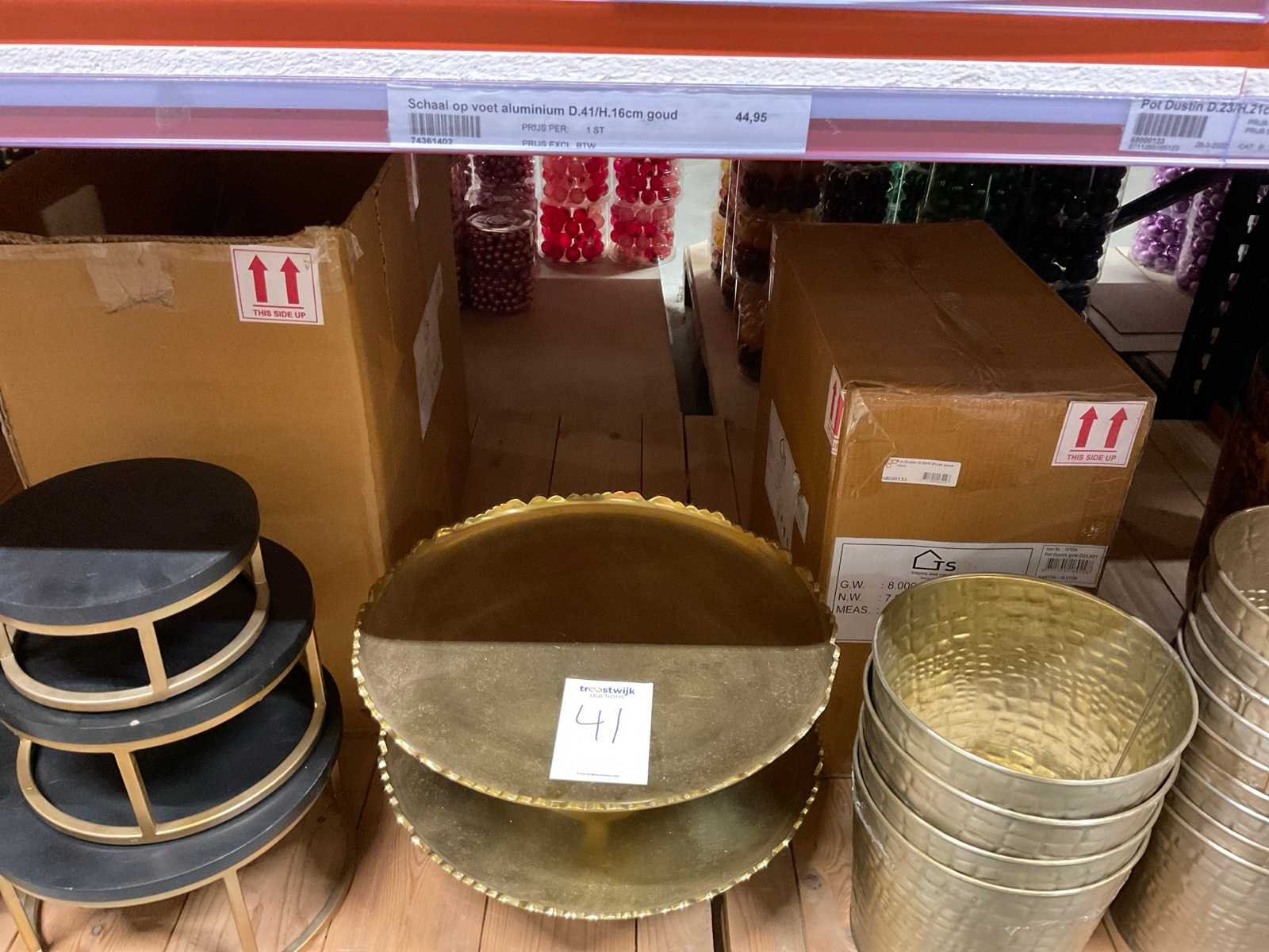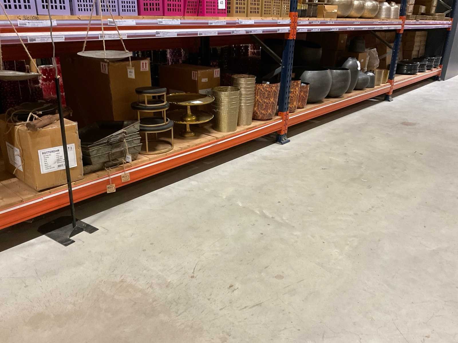 Diverse soorten potten, vazen en schalen. Bestaat uit onderste legplanken van 2 stelling-secties