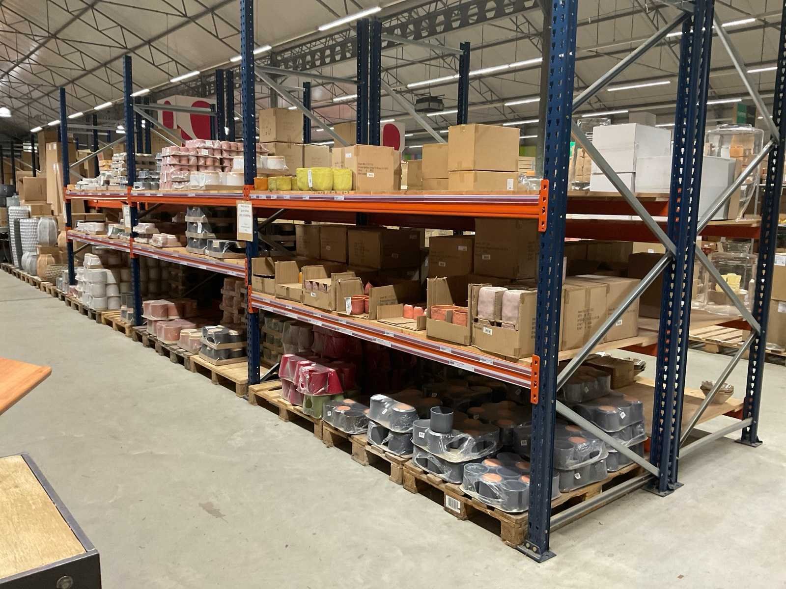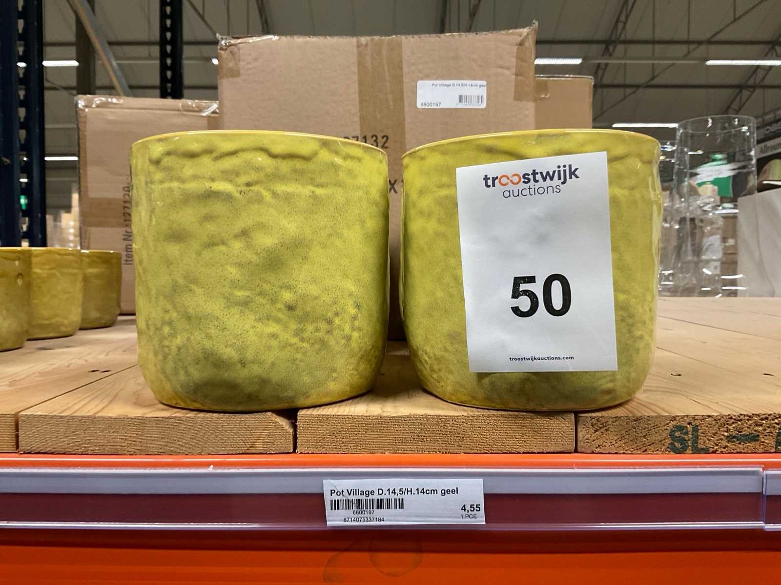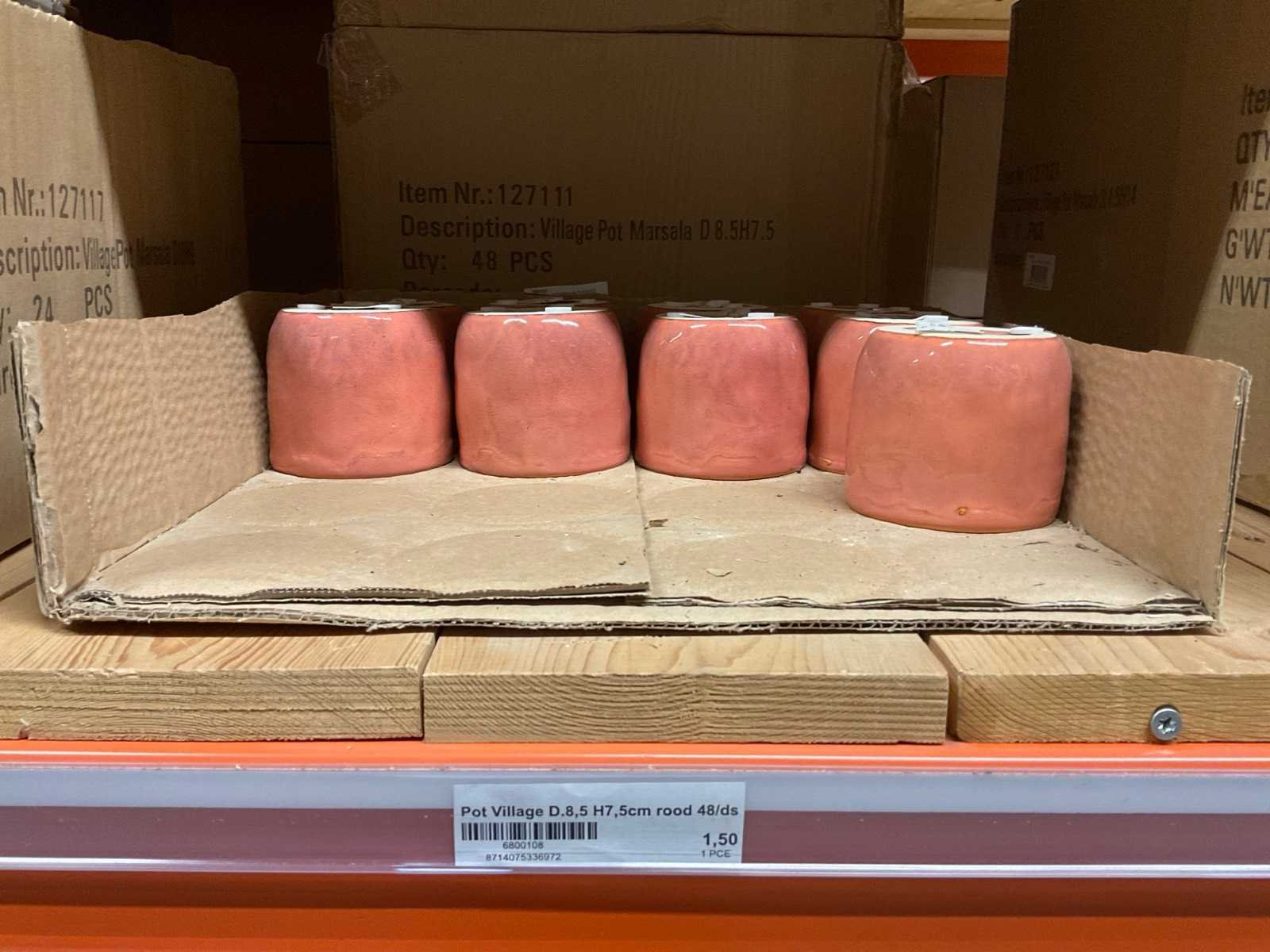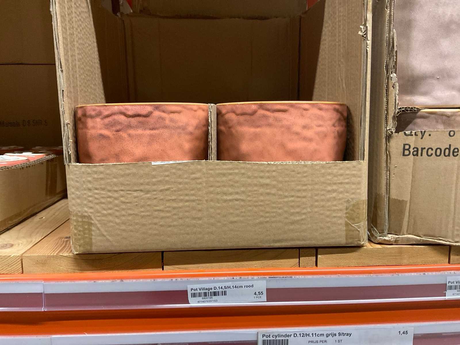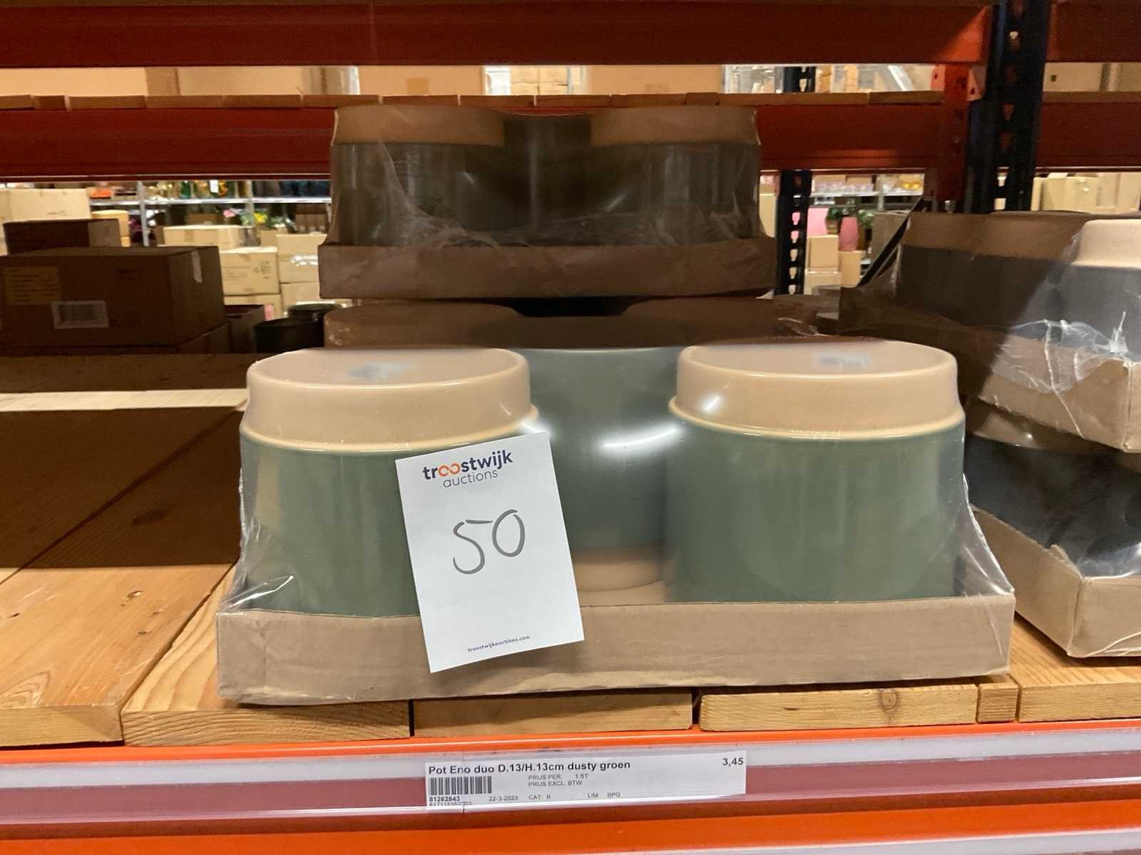 Bestaande uit bloempotten in diverse formaten, kleuren en stijlen in 3 secties en op 1 pallet, inclusief pallets, stelling niet inbegrepen.