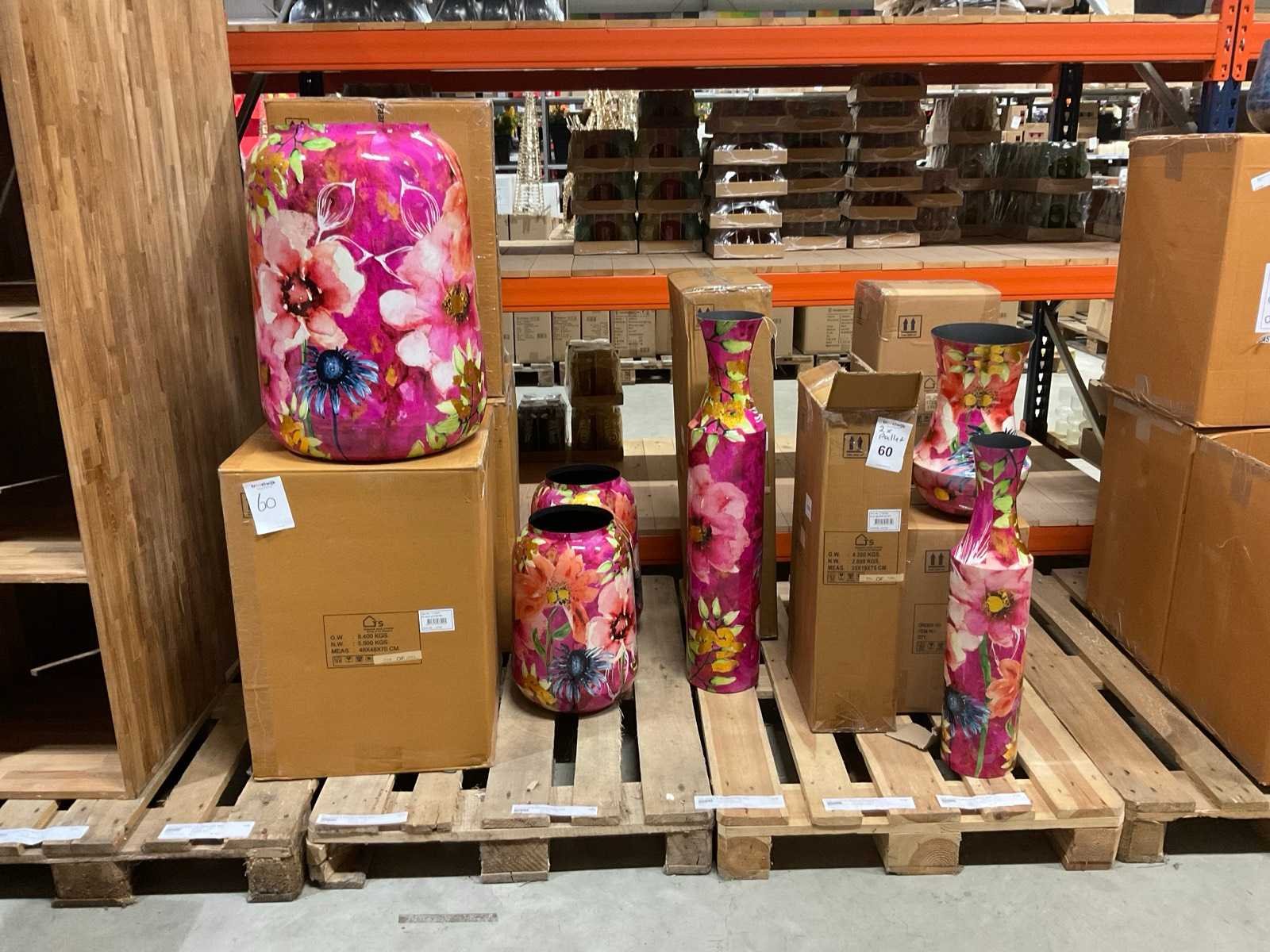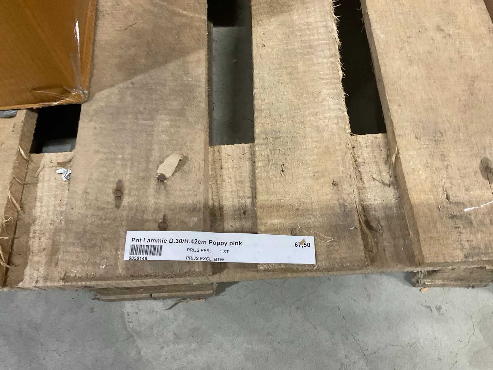 Op 2 pallets, diverse modellen en formaten, in Poppy Pink, inclusief pallets.