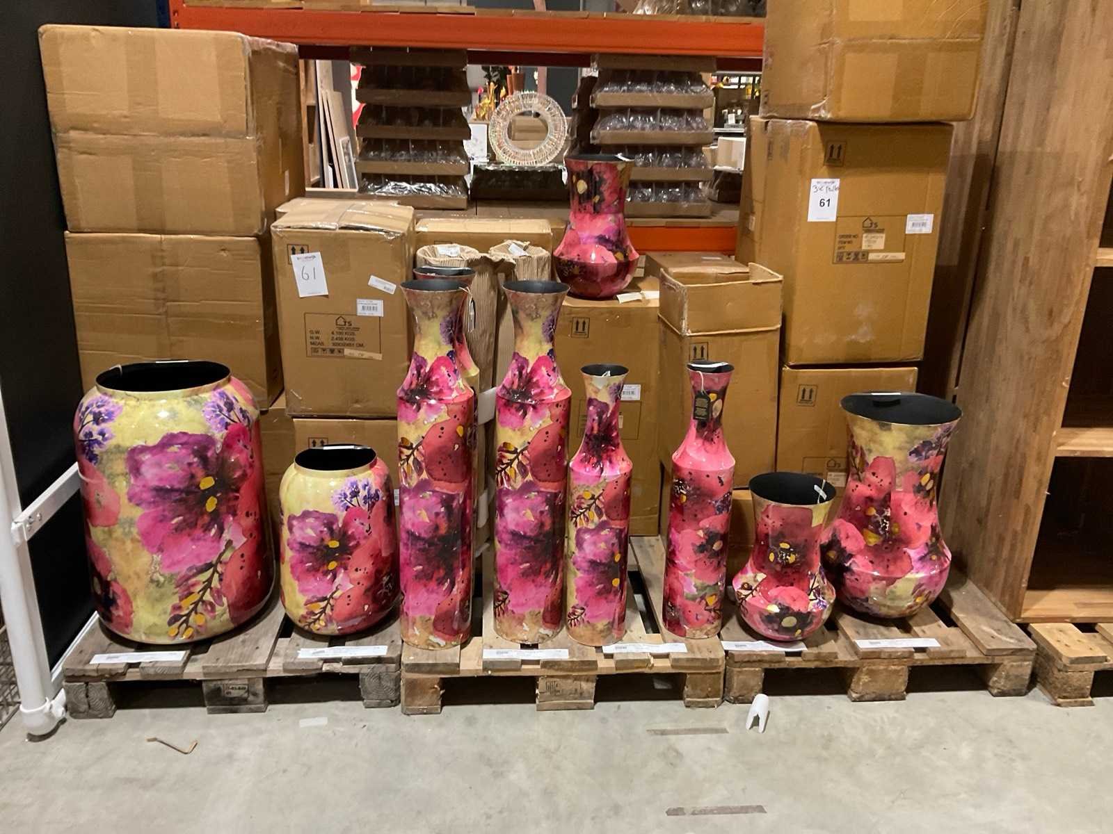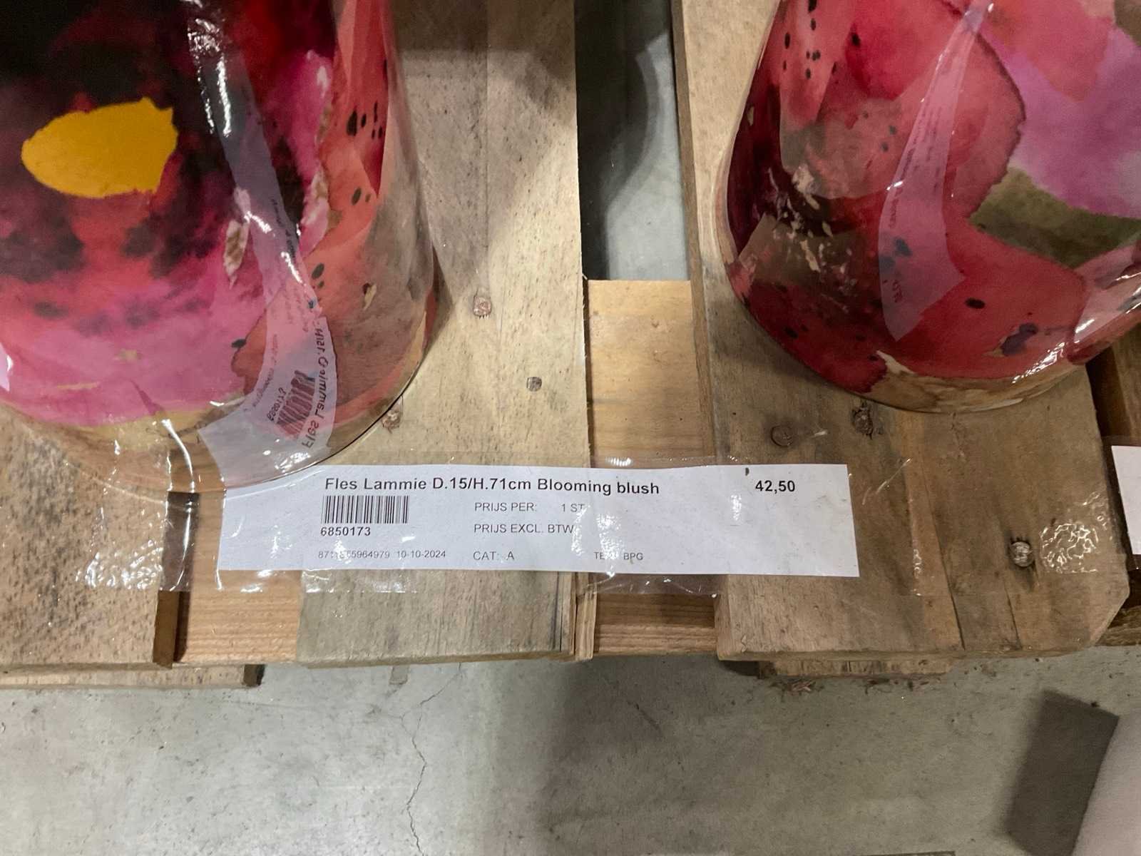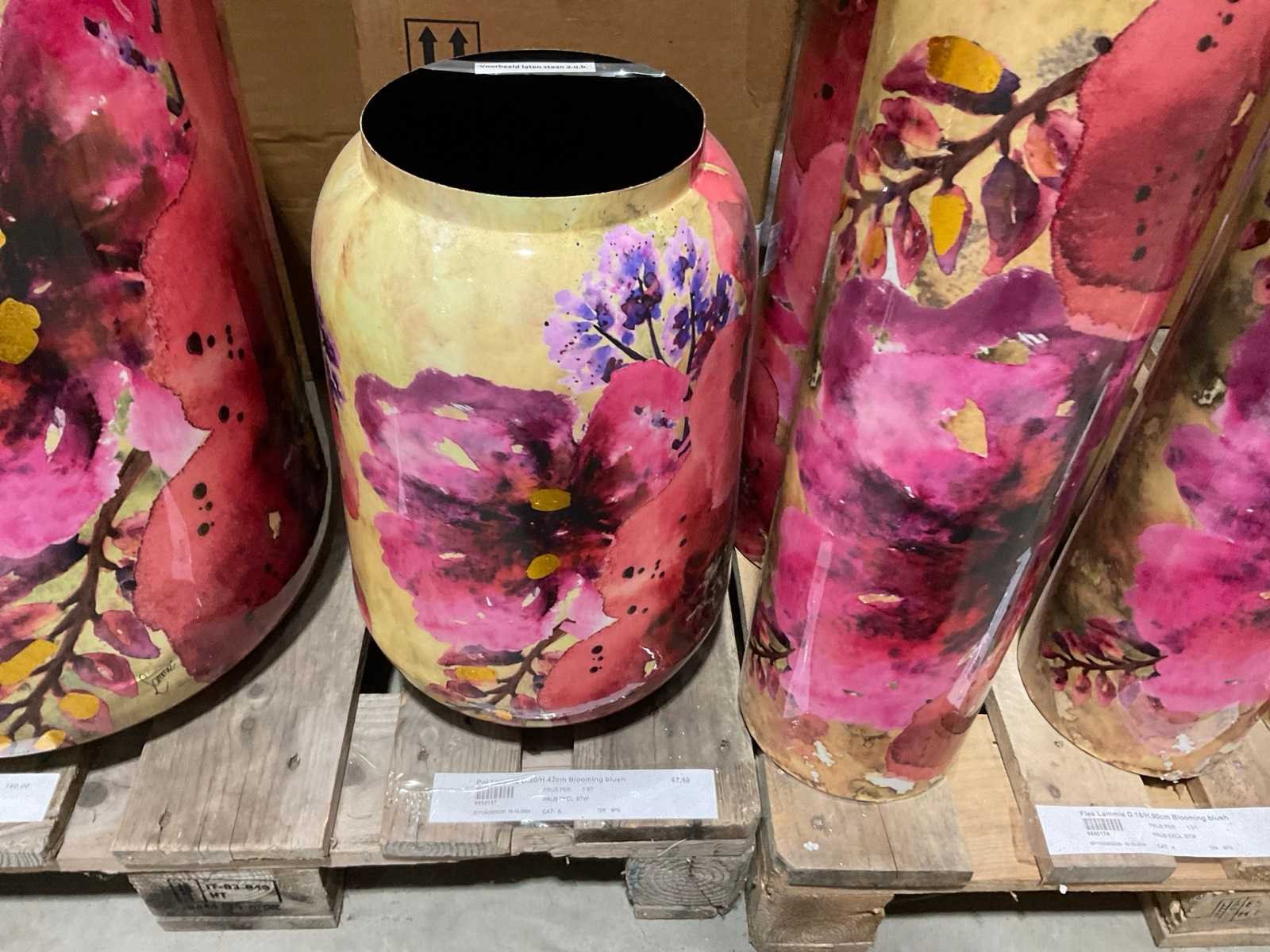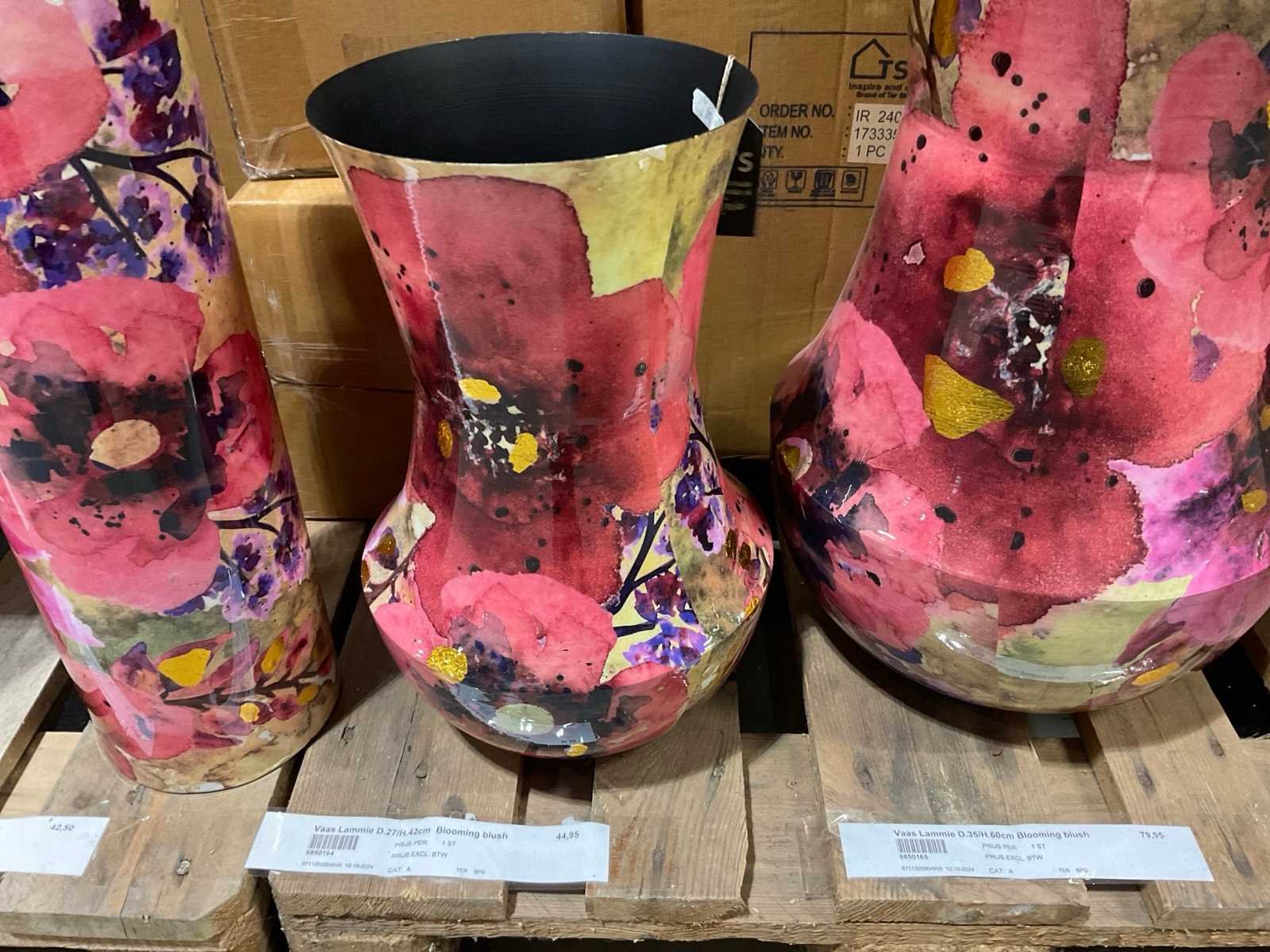 Op 3 pallets, diverse modellen en formaten, in Blooming blush, inclusief pallets.