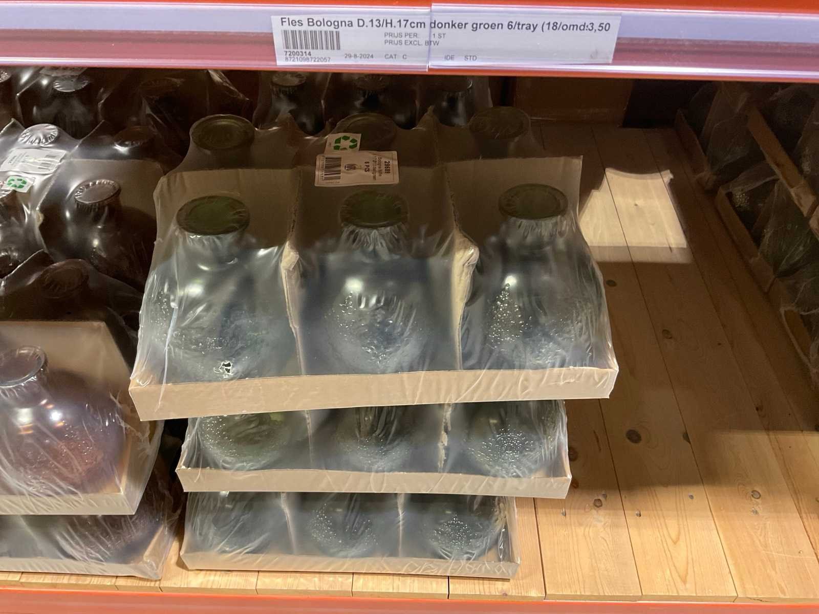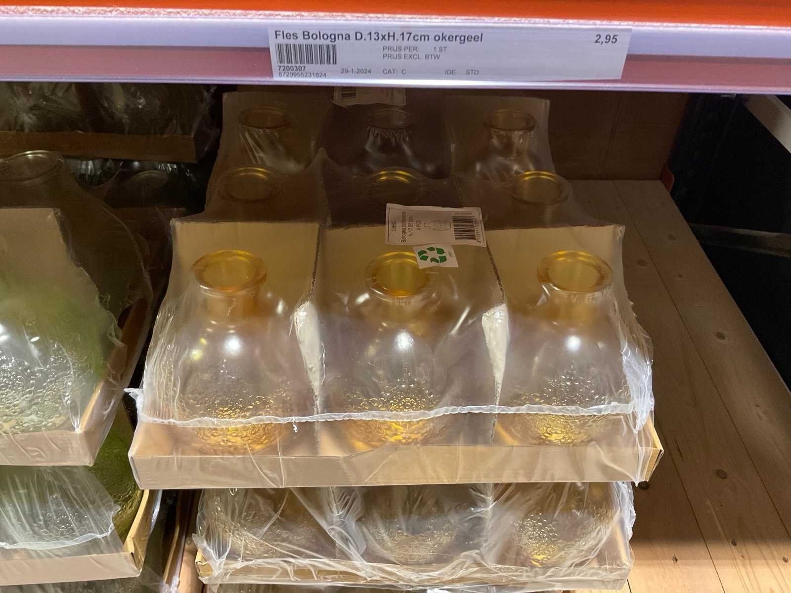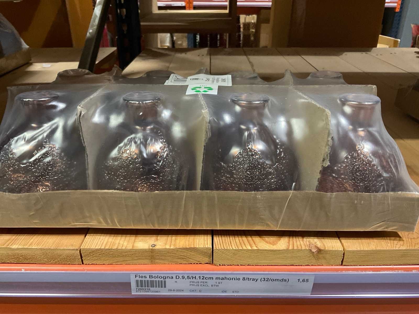 Flessen t.b.v. woondecoratie in diverse formaten en kleuren, model: Bologna, alles in 1 sectie van de stelling, stelling niet inbegrepen.