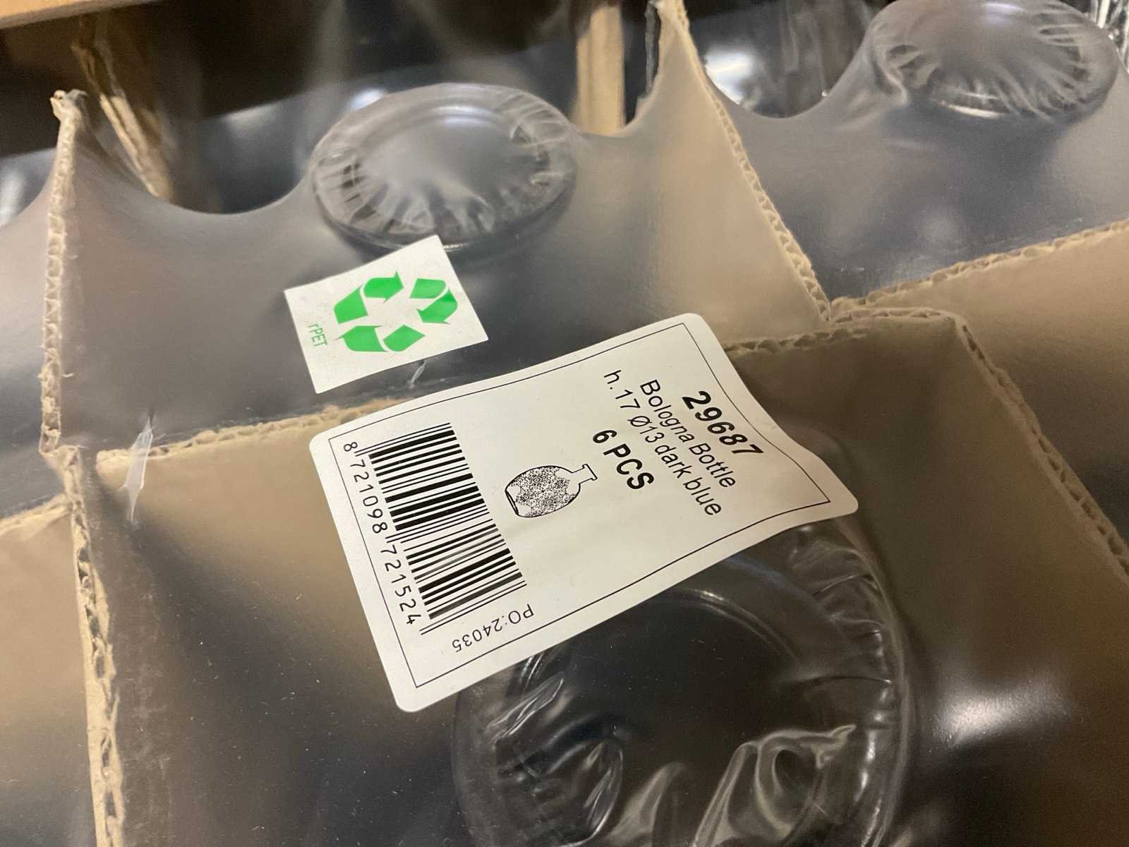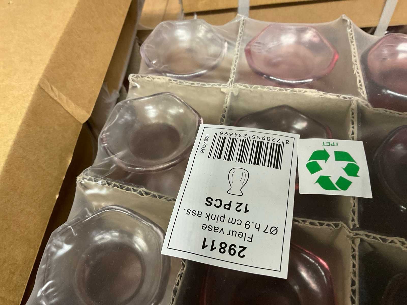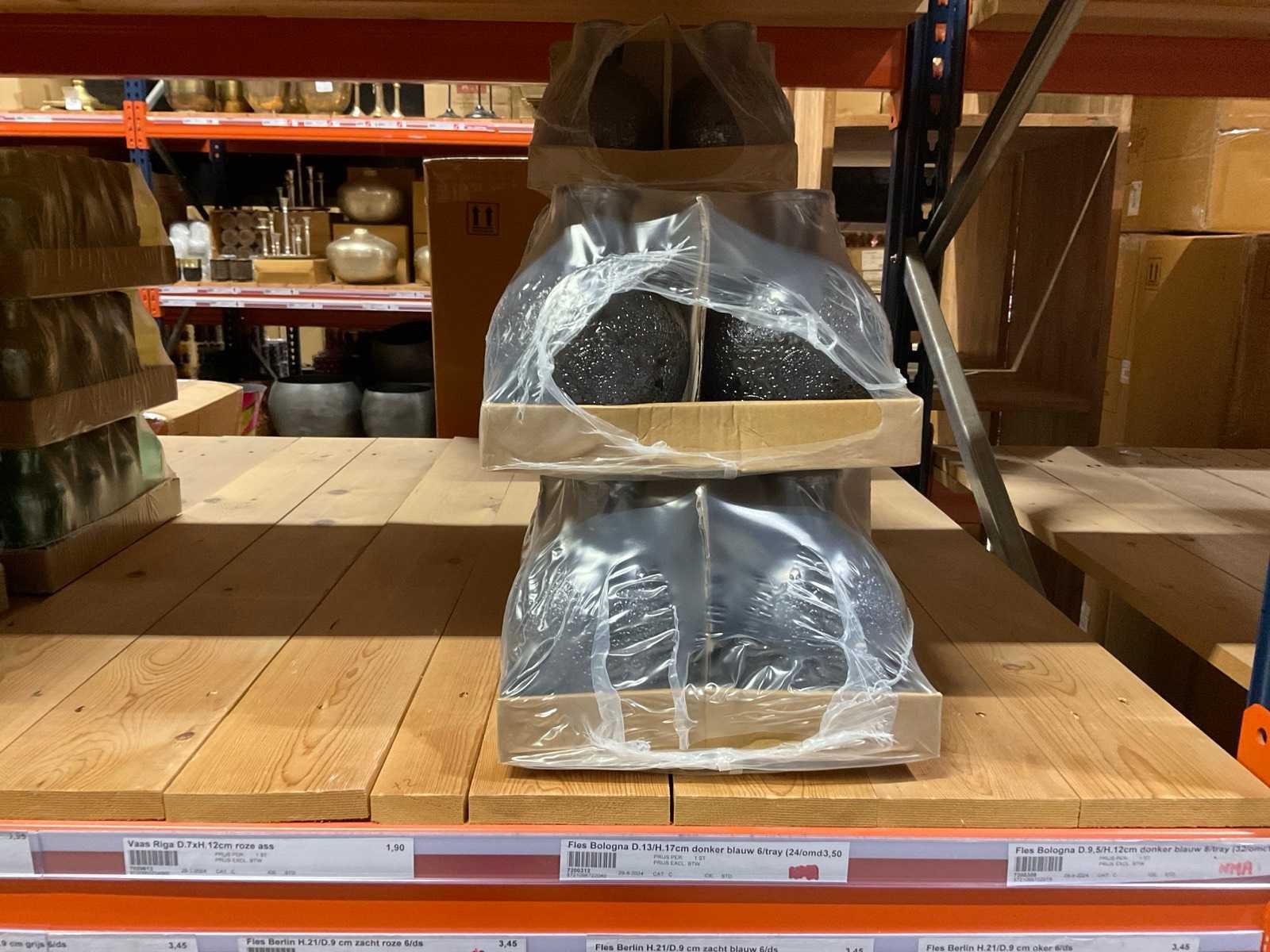 Flessen en vazen t.b.v. woondecoratie in diverse formaten en kleuren, model: Bologna, Riga, Fleur, Venice, alles in 1 sectie van de stelling, stelling niet inbegrepen.