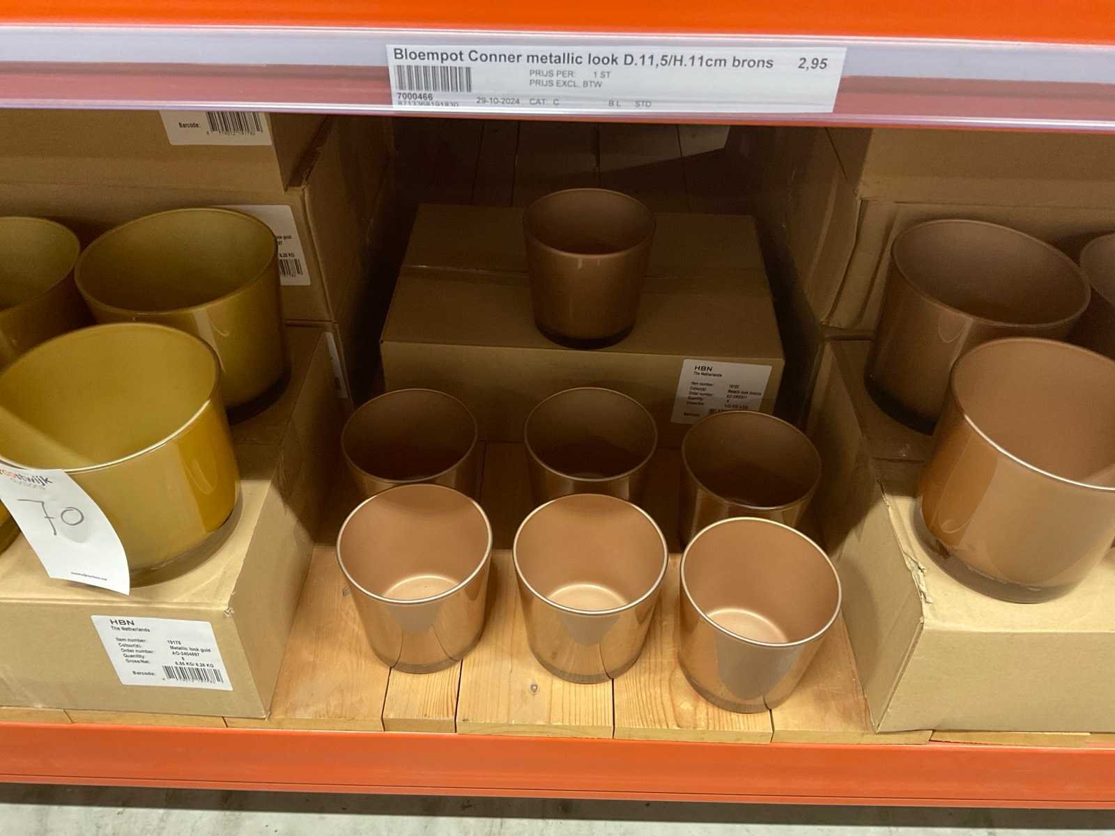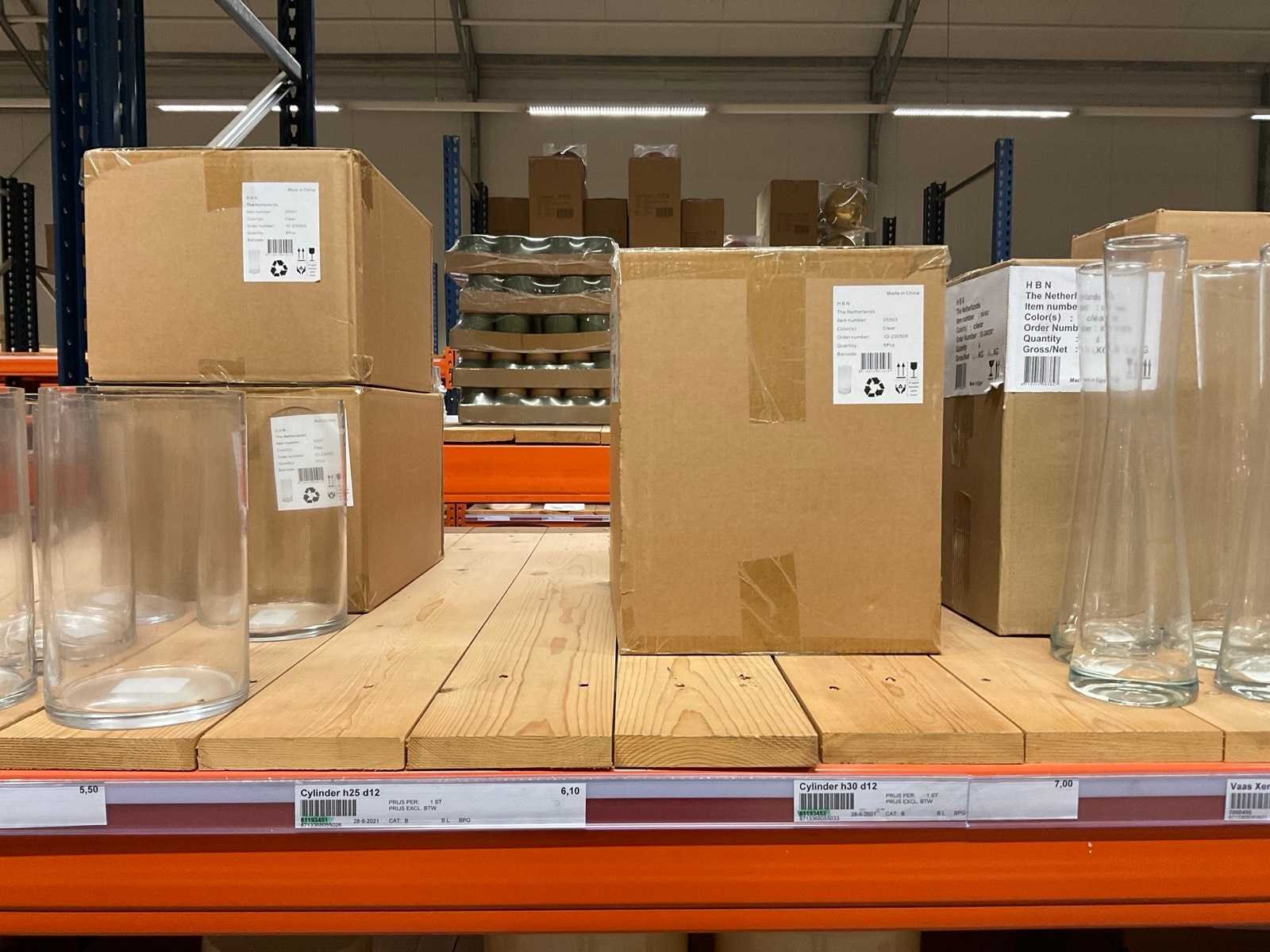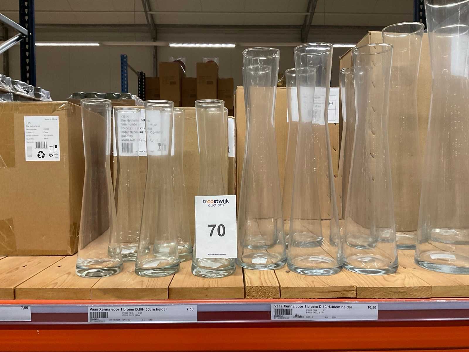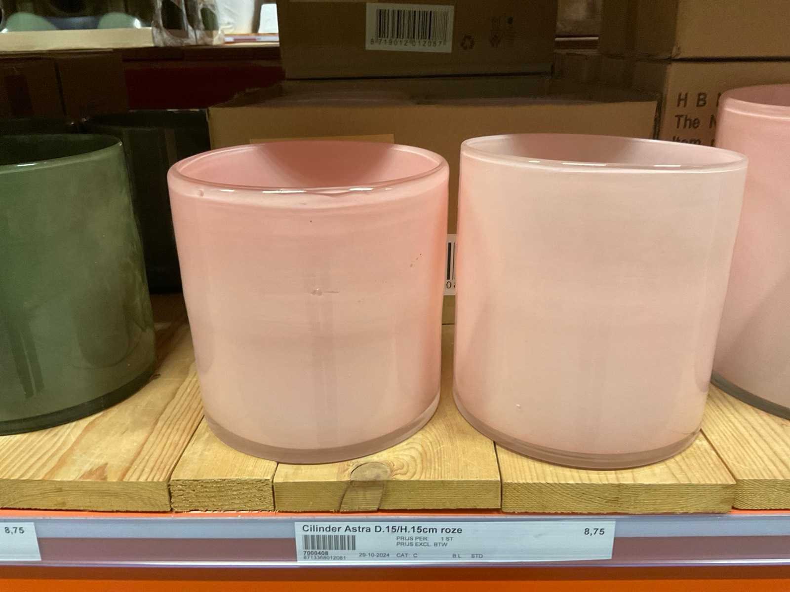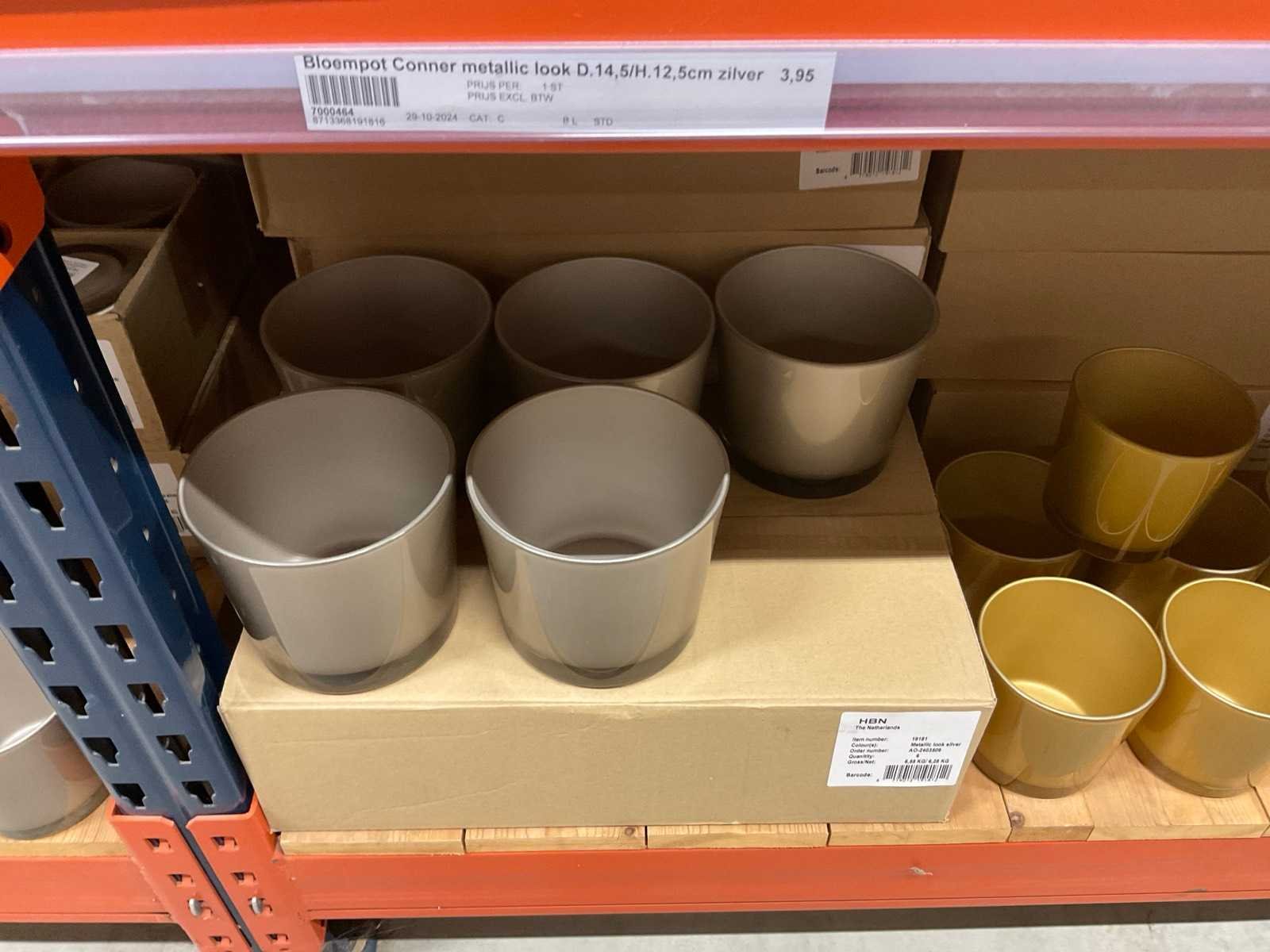 Vazen, bloempotten en cilinders in diverse modellen, kleuren en formaten, alles in sectie van stelling, stelling niet inbegrepen.