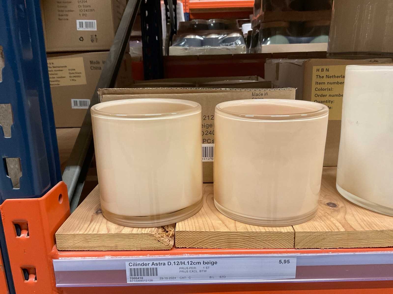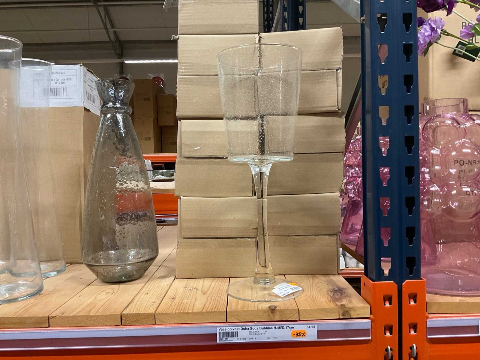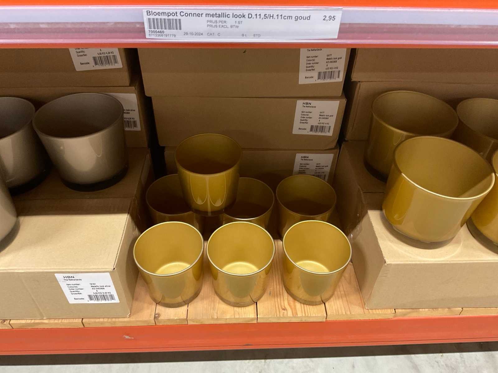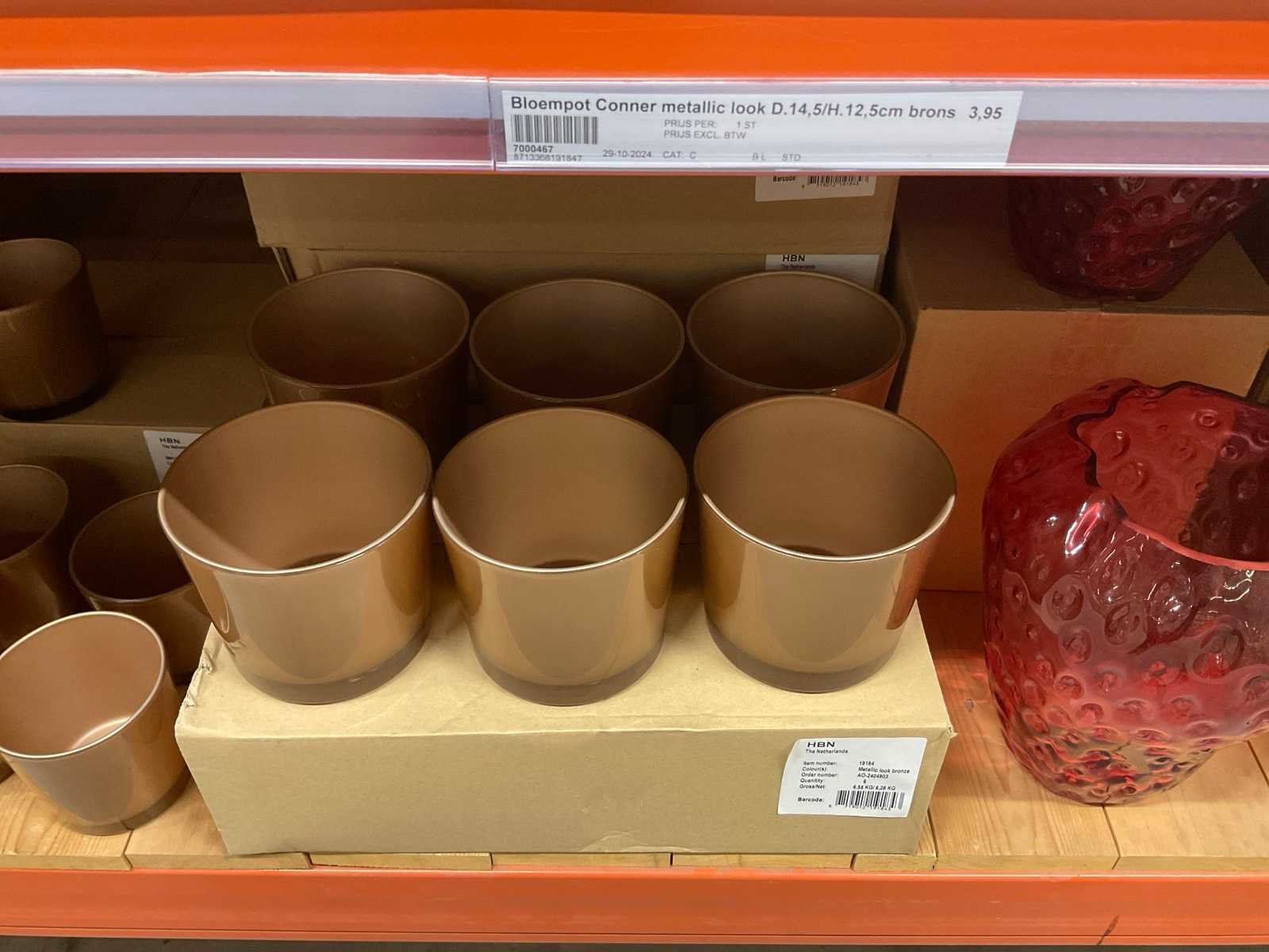 Vazen, bloempotten en cilinders in diverse modellen, kleuren en formaten, alles in sectie van stelling, stelling niet inbegrepen.