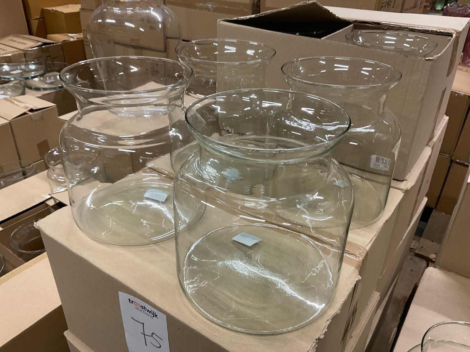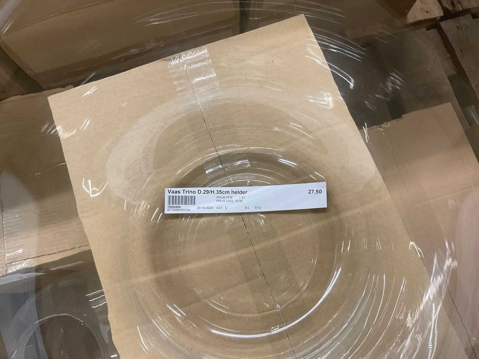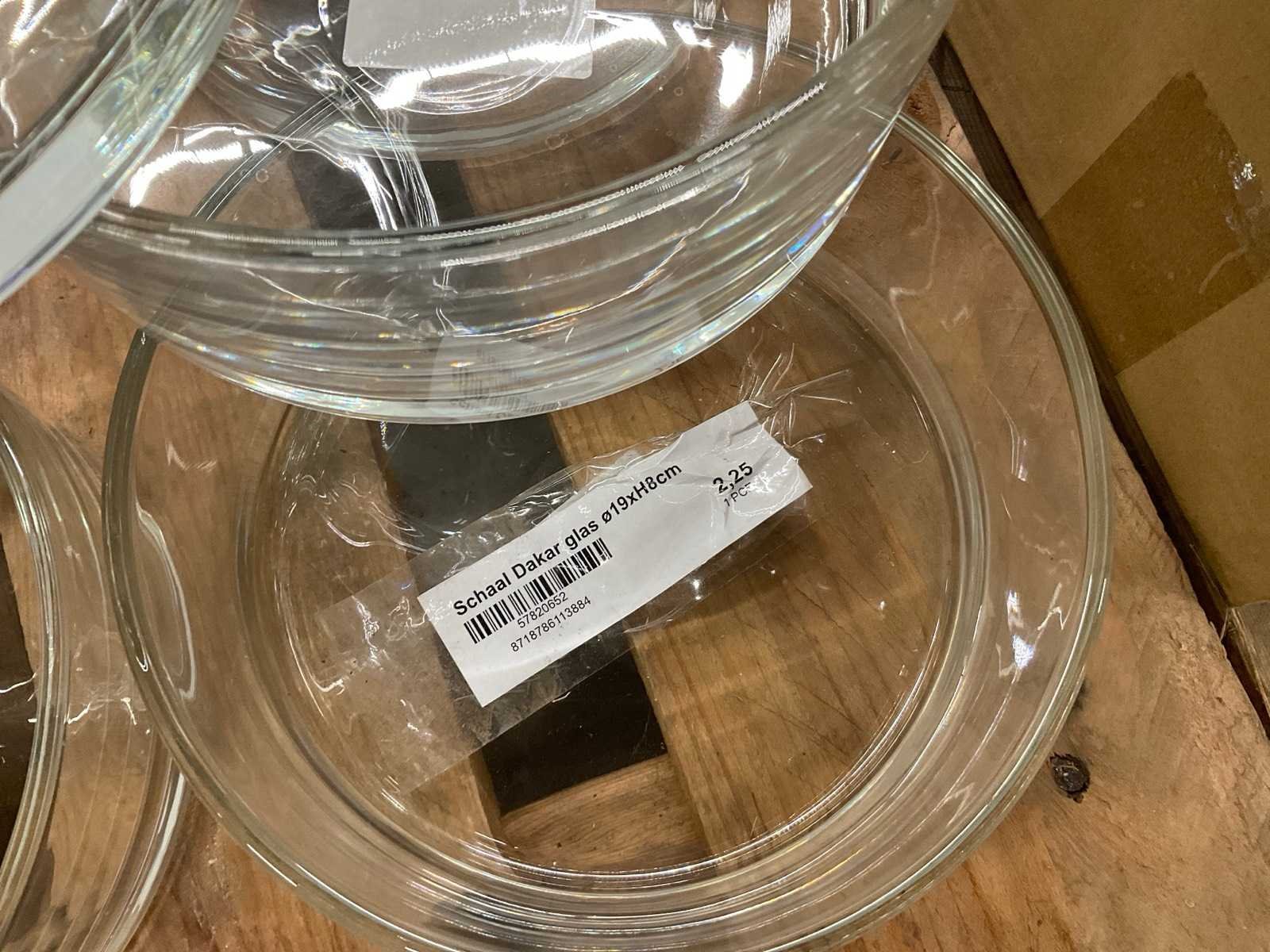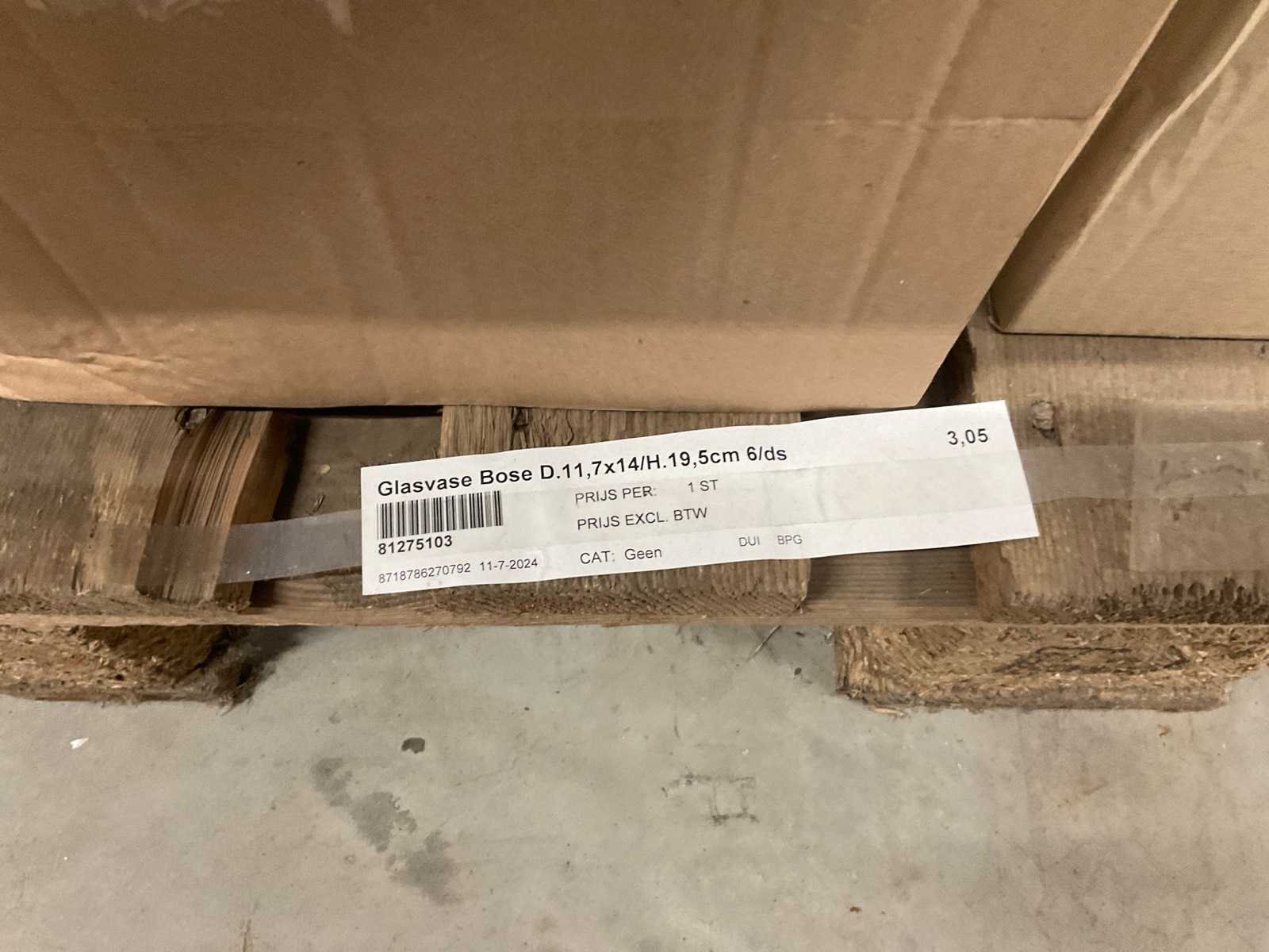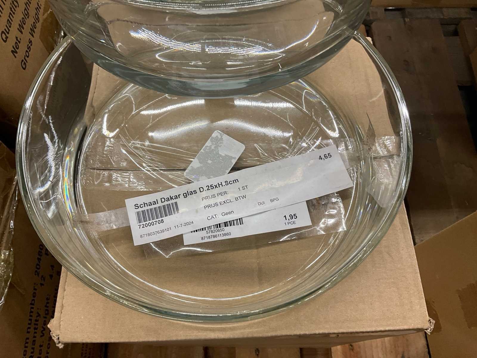 Glazen vazen en schalen op 5 pallets, in diverse vormen en formaten, inclusief pallets. Merk: Glazen