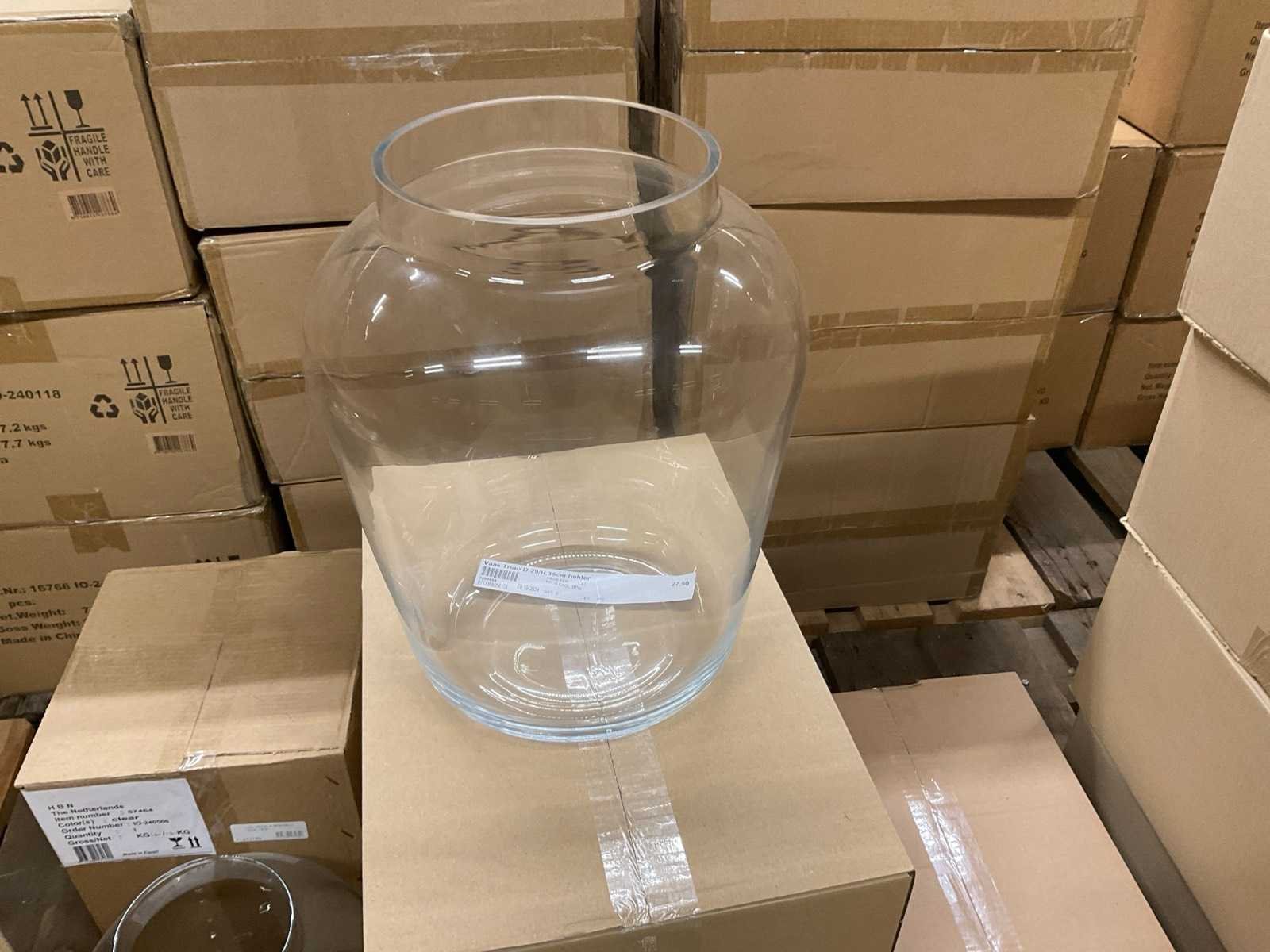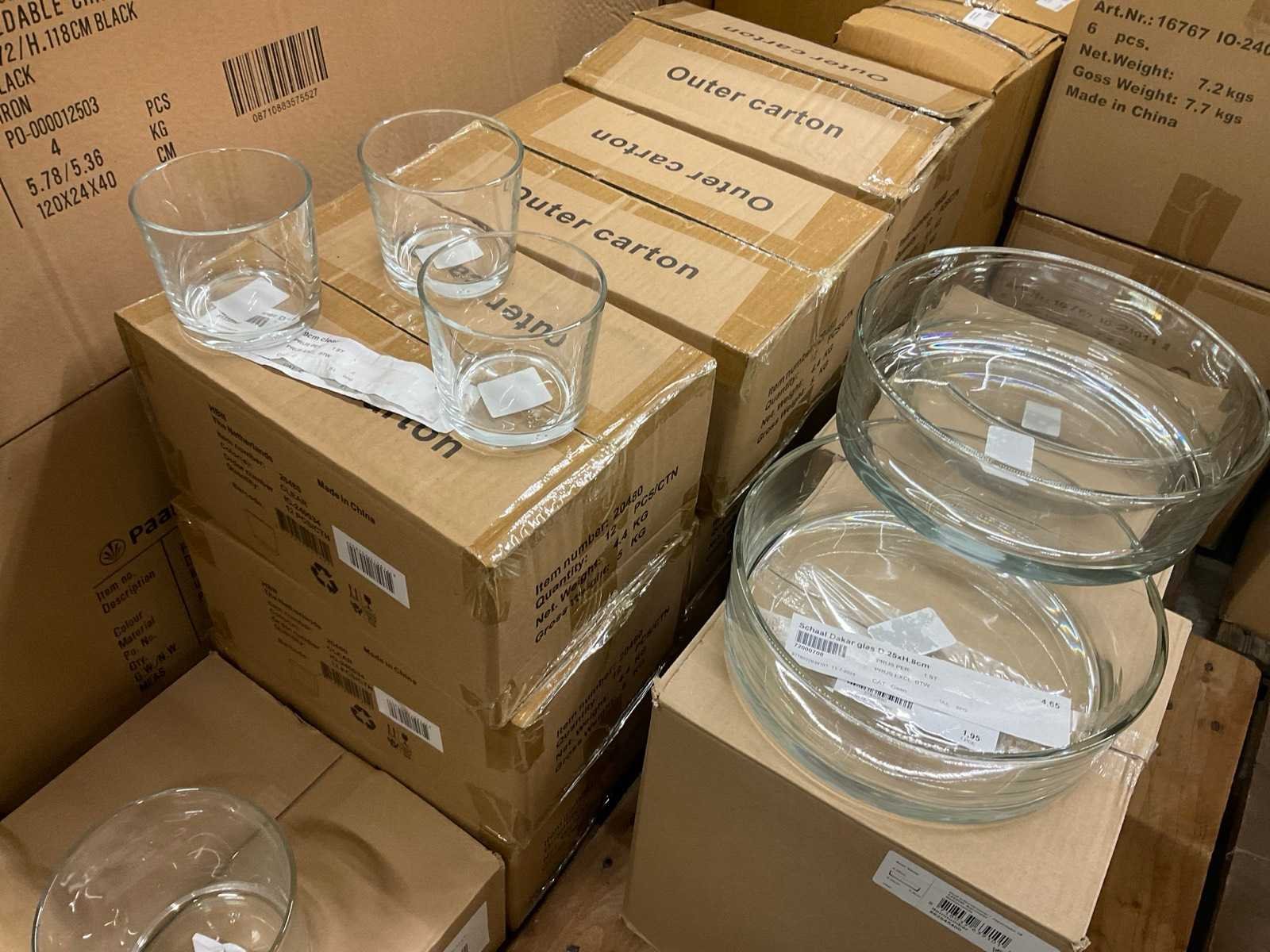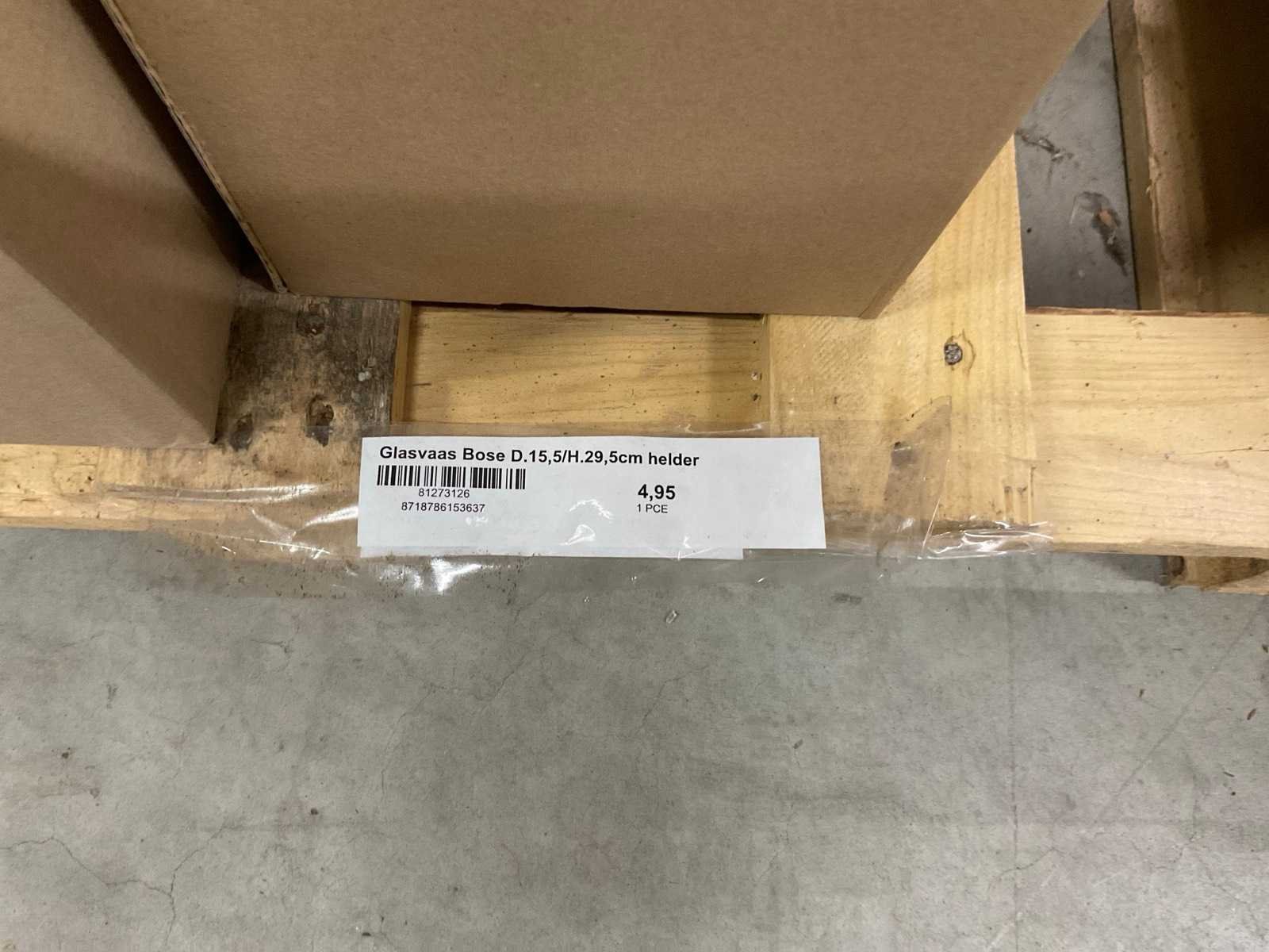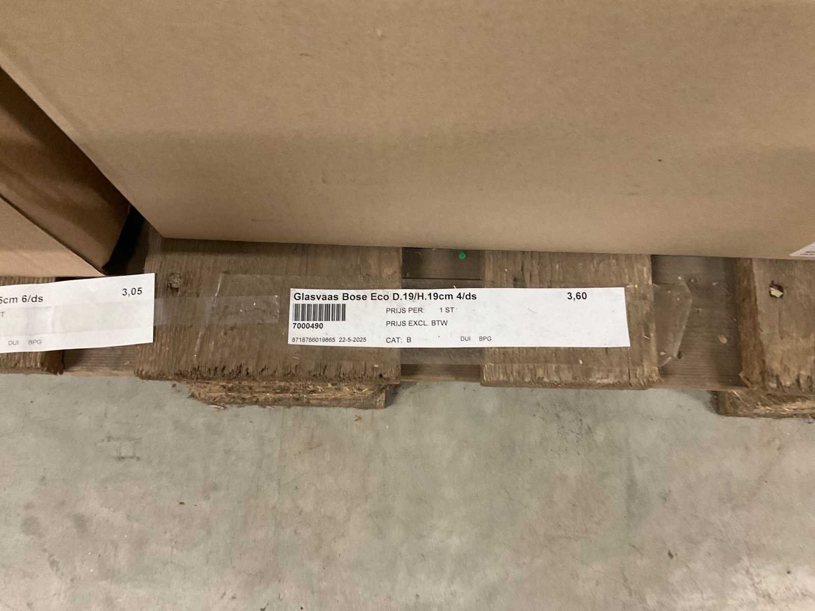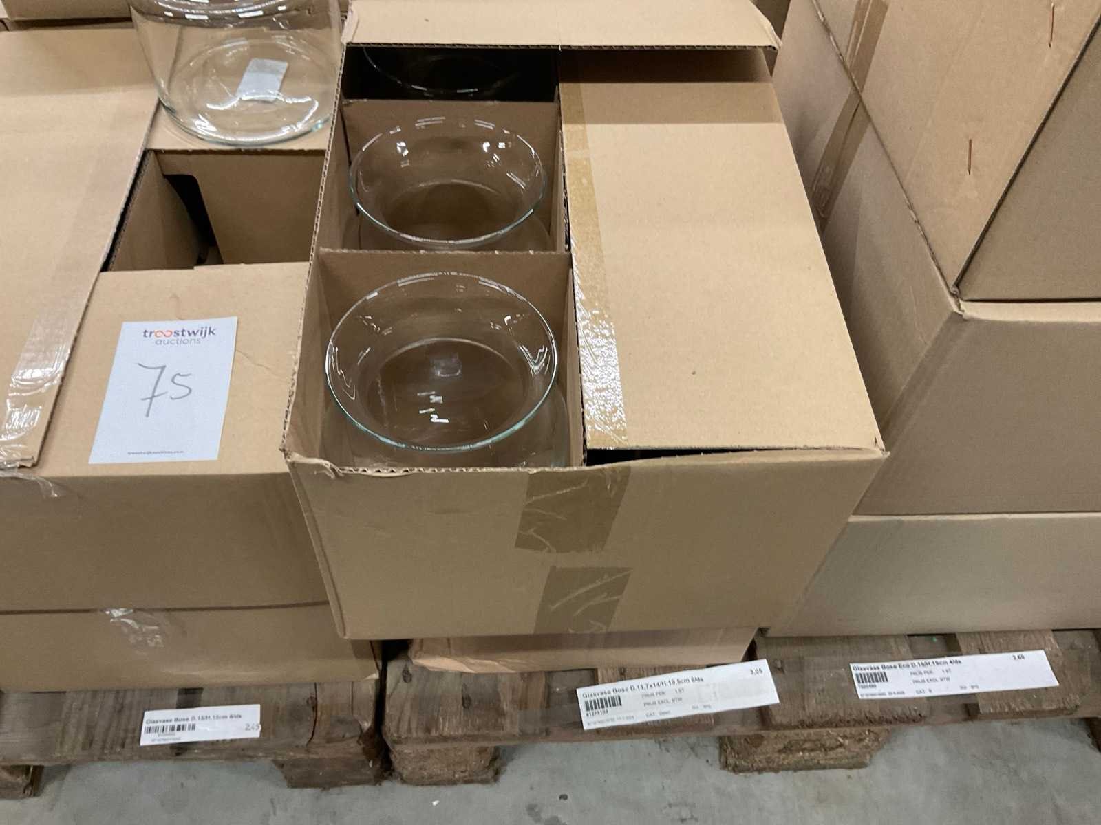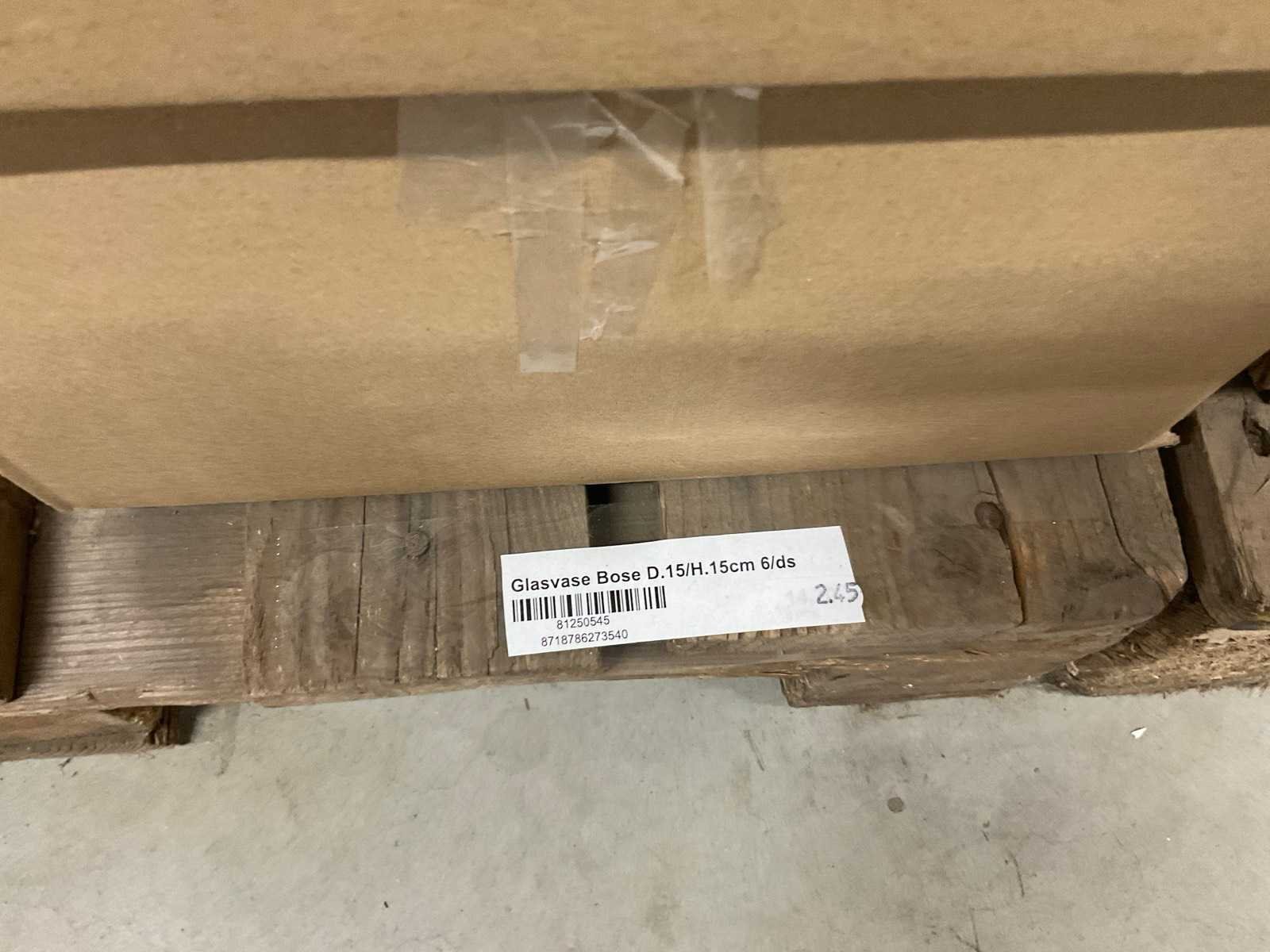 Glazen vazen en schalen op 5 pallets, in diverse vormen en formaten, inclusief pallets. Merk: Glazen